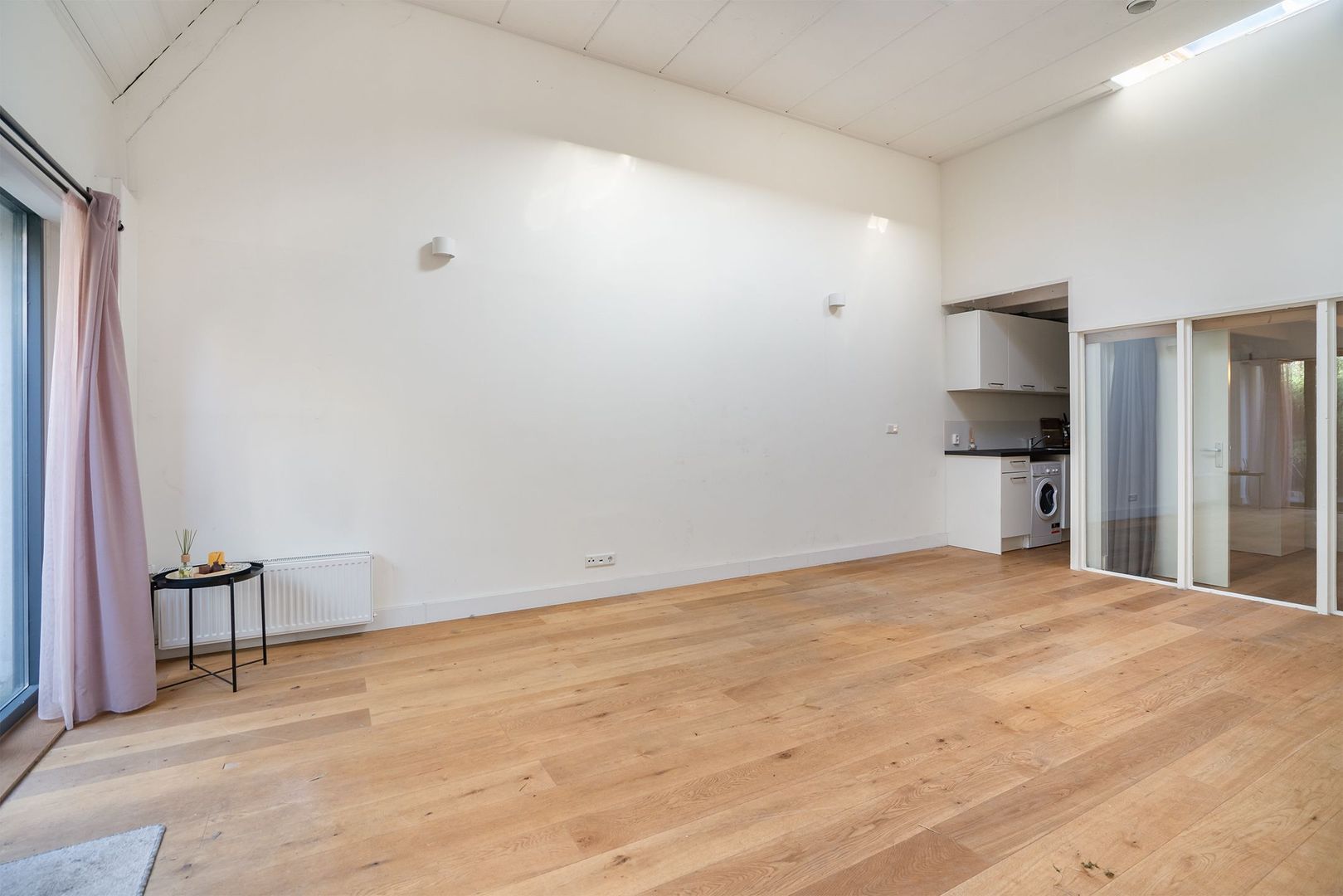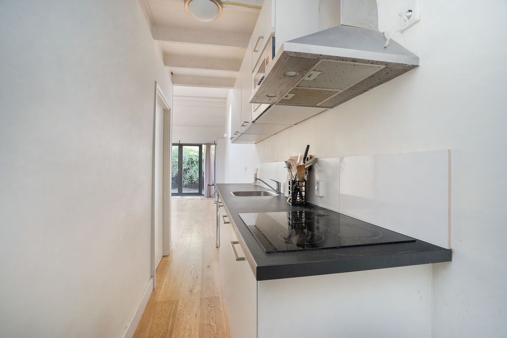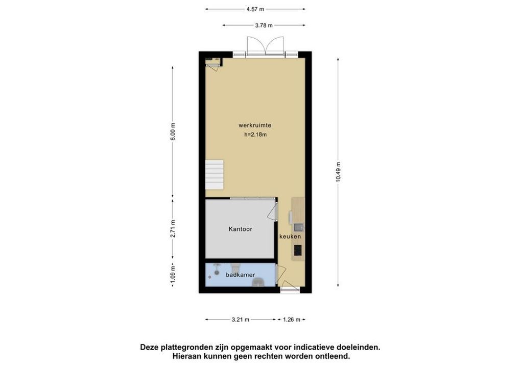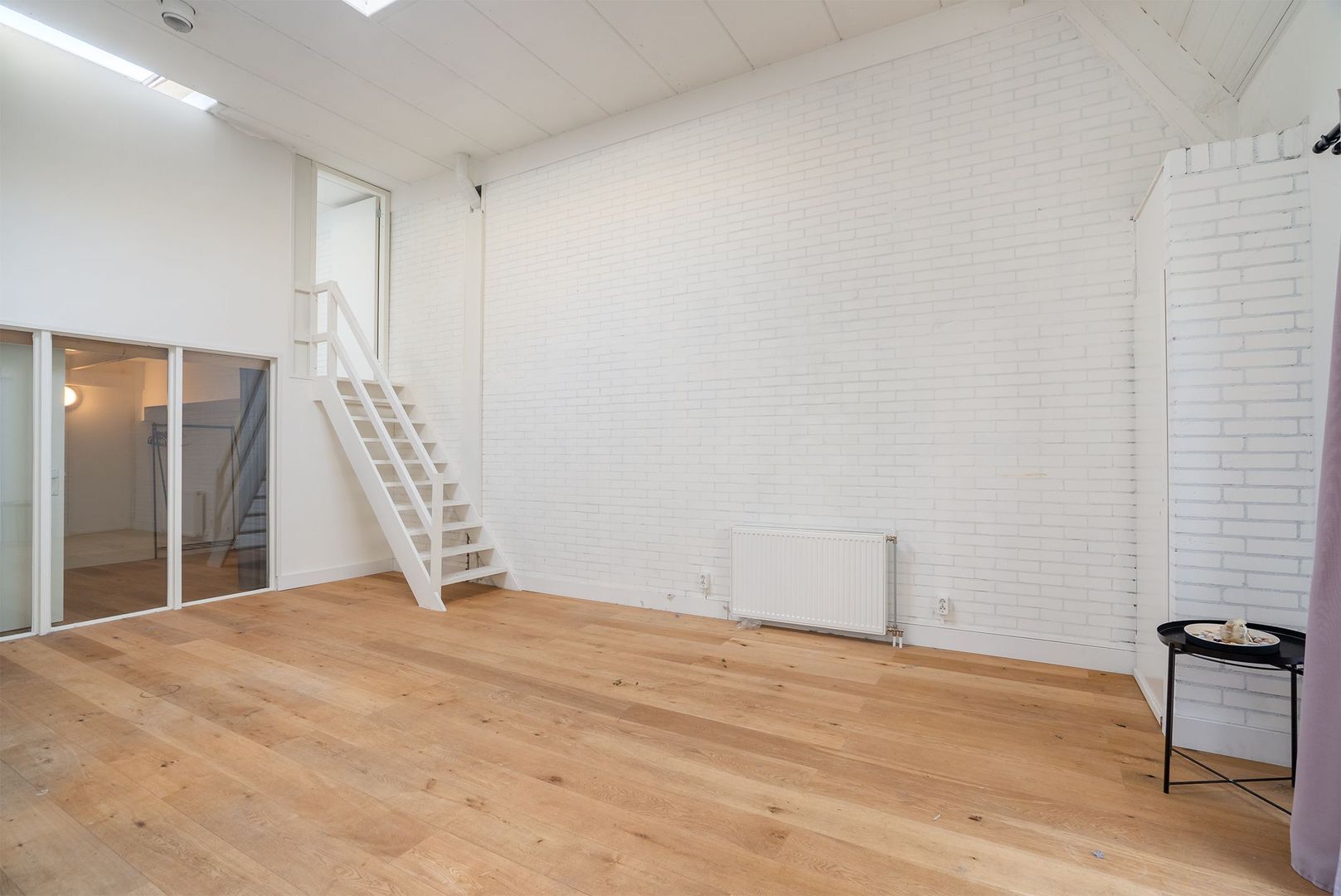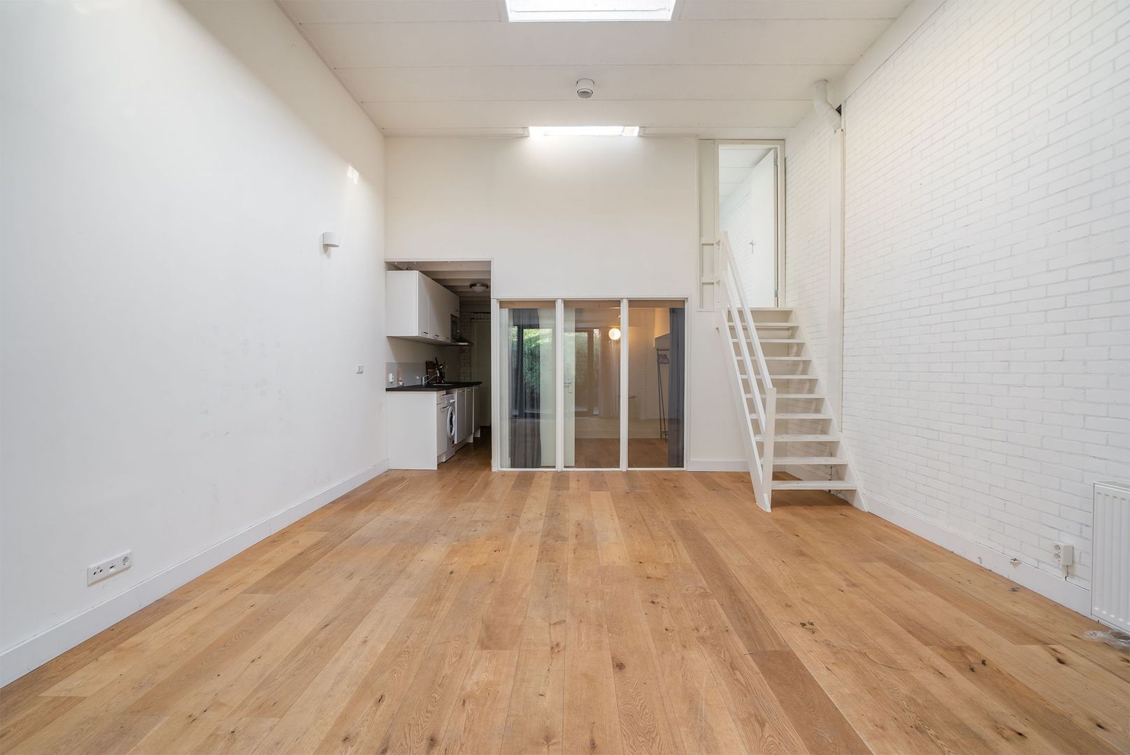 Via poort aan de straat toegang tot een binnenplaats met doorloop naar de achterliggende bedrijfsruimtes. Entree ruimte via pui met openslaande deuren; grote voorruimte ca. 6.00x4.57 (hoogte 3.84) met lamelparket vloer; achterkamer/eetruimte/vergaderruimte ca. 3.21x2.71 met lamelparket en met glazen pui afgescheiden van de voorruimte