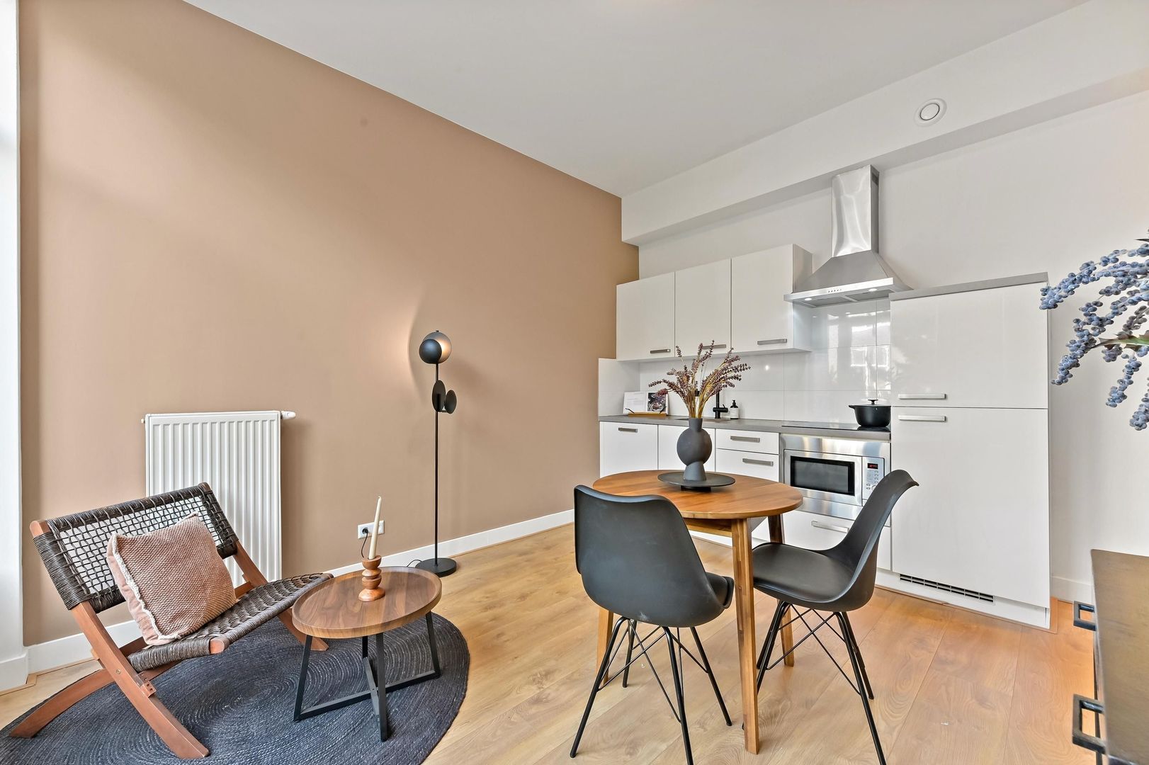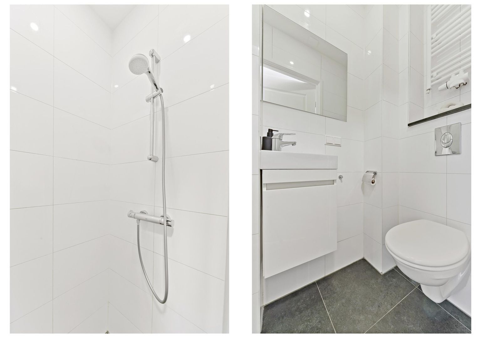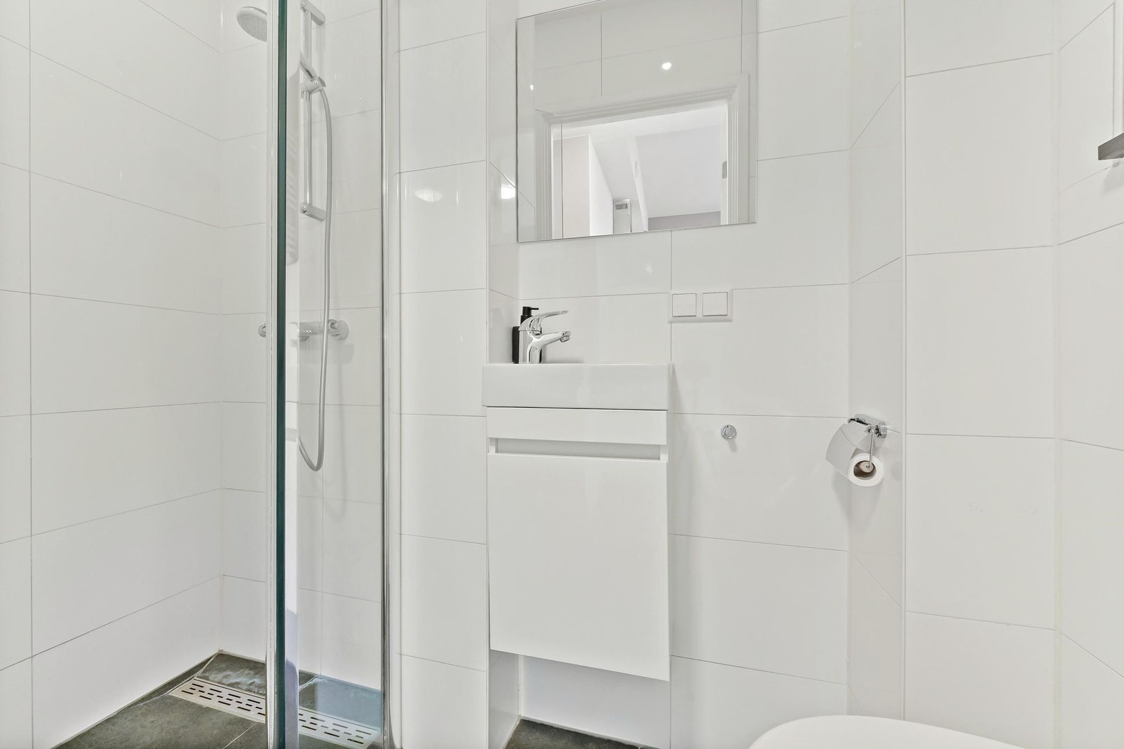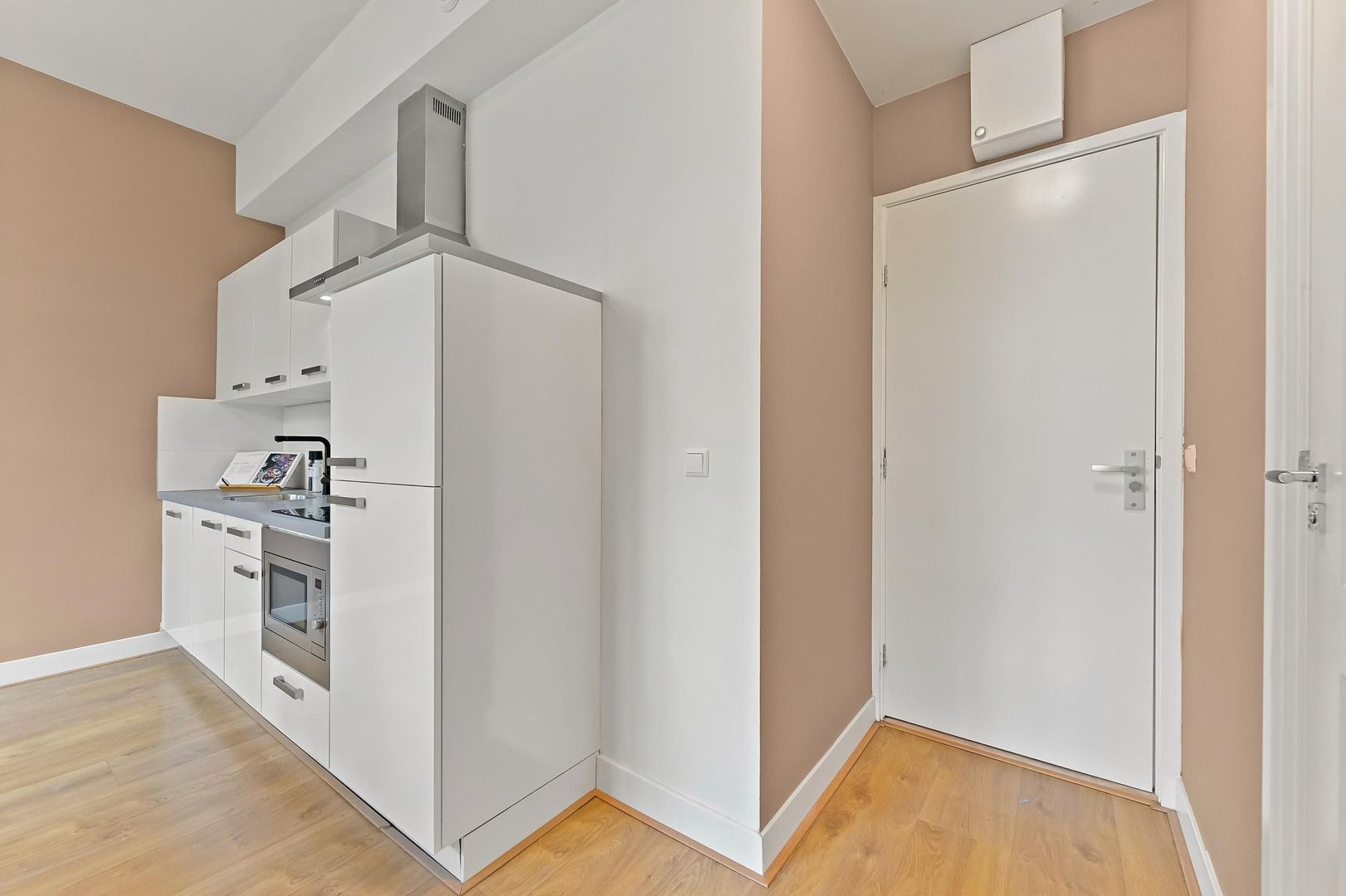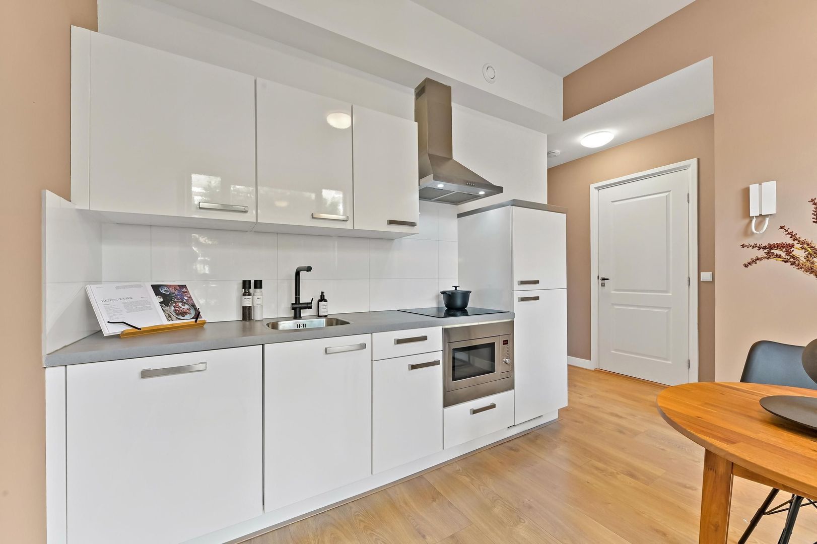Afgesloten centrale entree met binnentrap naar de woningentree op de 1e etage; ruime leefruimte ca. 5.05x3.83; ; moderne keuken voorzien van een inductiekookplaat, afzuigkap, combimagnetron/-oven, vaatwasser en koelkast; moderne badkamer ca. 2.57x0.92 met luxe inloopdouche, wastafelmeubel, handkoekradiator en toilet (wandcloset);Slaapkamer