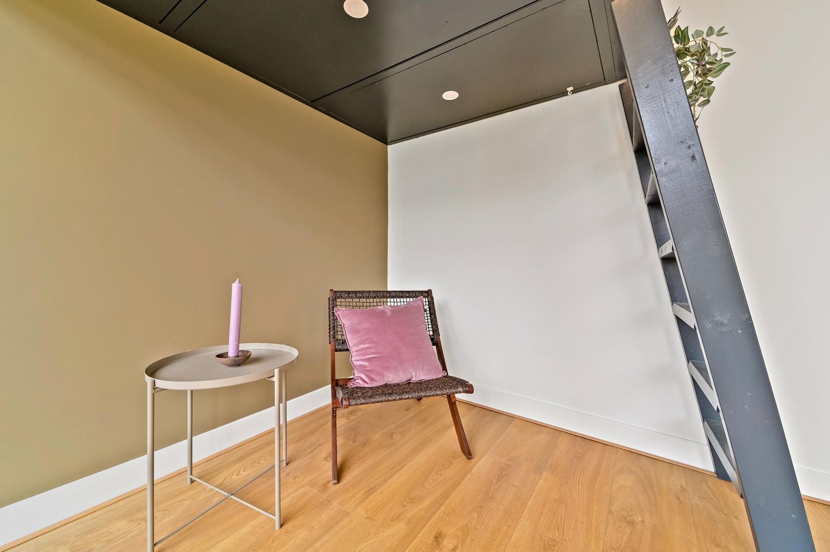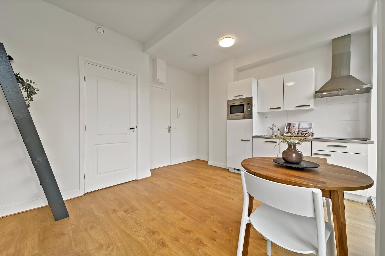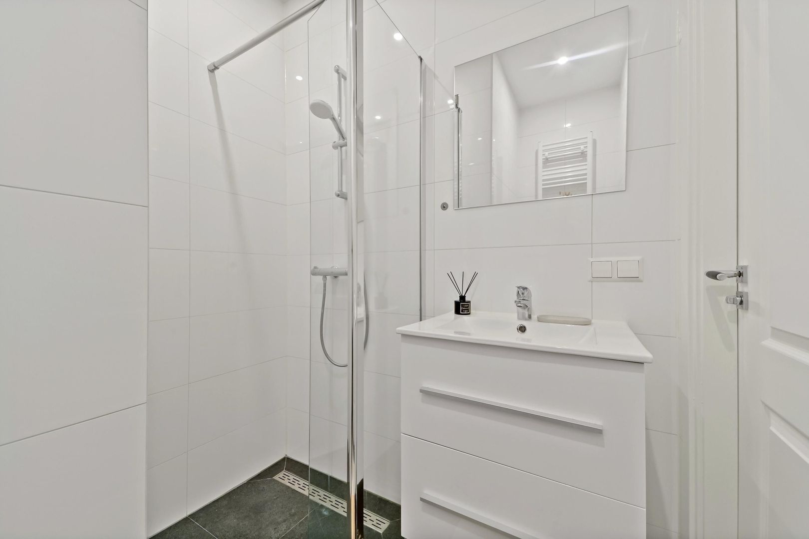 Afgesloten centrale entree met binnentrap naar de woningentree op de 1e etage; ruime leefruimte ca. 5.05x3.83; ; moderne keuken voorzien van een inductiekookplaat, afzuigkap, combimagnetron/-oven, vaatwasser en koelkast; moderne badkamer ca. 2.57x0.92 met luxe inloopdouche, wastafelmeubel, handkoekradiator en toilet (wandcloset);Slaapkamer