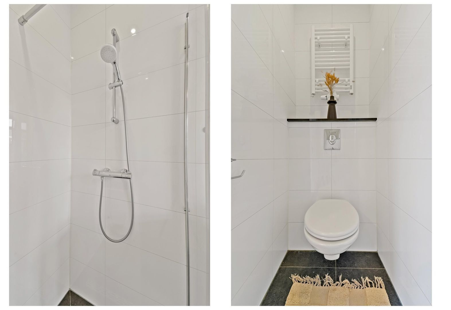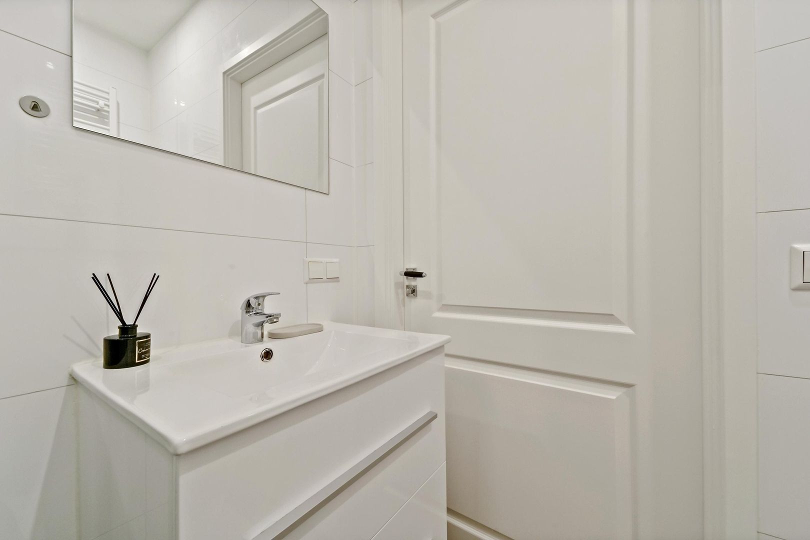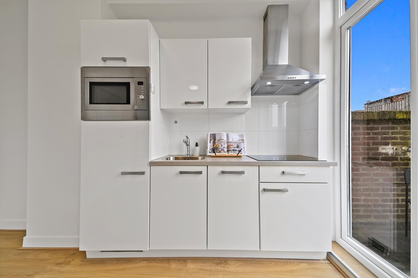 Afgesloten centrale entree met binnentrap naar de woningentree op de 1e etage; ruime leefruimte ca. 5.05x3.83; ; moderne keuken voorzien van een inductiekookplaat, afzuigkap, combimagnetron/-oven, vaatwasser en koelkast; moderne badkamer ca. 2.57x0.92 met luxe inloopdouche, wastafelmeubel, handkoekradiator en toilet (wandcloset);Slaapkamer