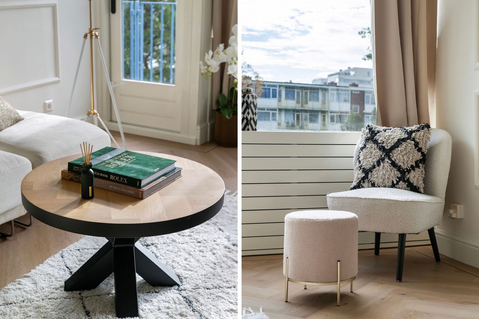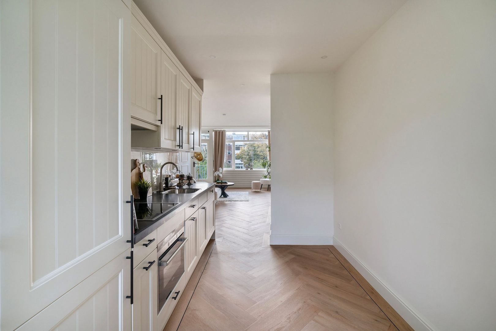 Afgesloten centrale entree met toegang tot de berging en woningentree op de 2e woonlaag; hal met de meterkast; lichte ruime woonkamer met toegang tot het balkon aan de achterzijde; moderne open keuken voorzien van een fraai stenen werkblad, inductiekookplaat, afzuigkap, koel-vriescombinatie, combimagnetron/-oven, vaatwasser, wasmachine aansluiting en toegang tot het balkon aan de voorzijde; 1e royale slaapkamer aan de voorzijde met vaste kast en toegang tot het balkon; 2e slaapkamer aan de achterzijde met toegang tot het balkon; moderne badkamer met een inloopdouche en wastafelmeubel; keurig separaat toilet met fonteintje;