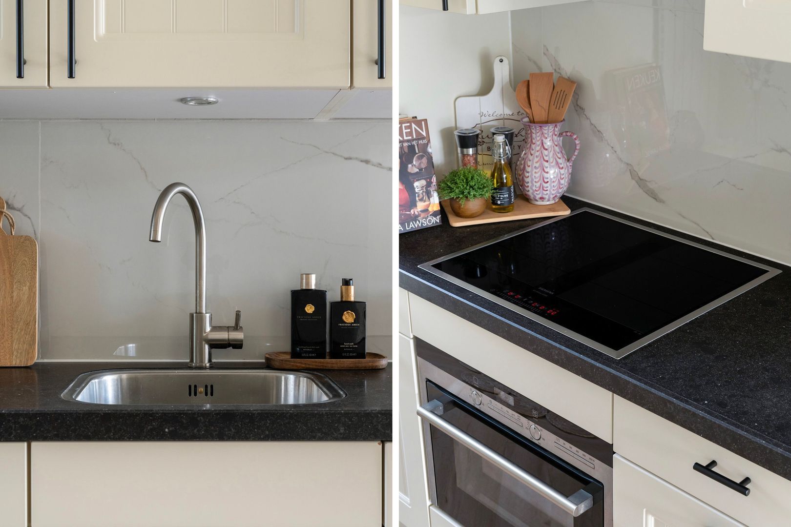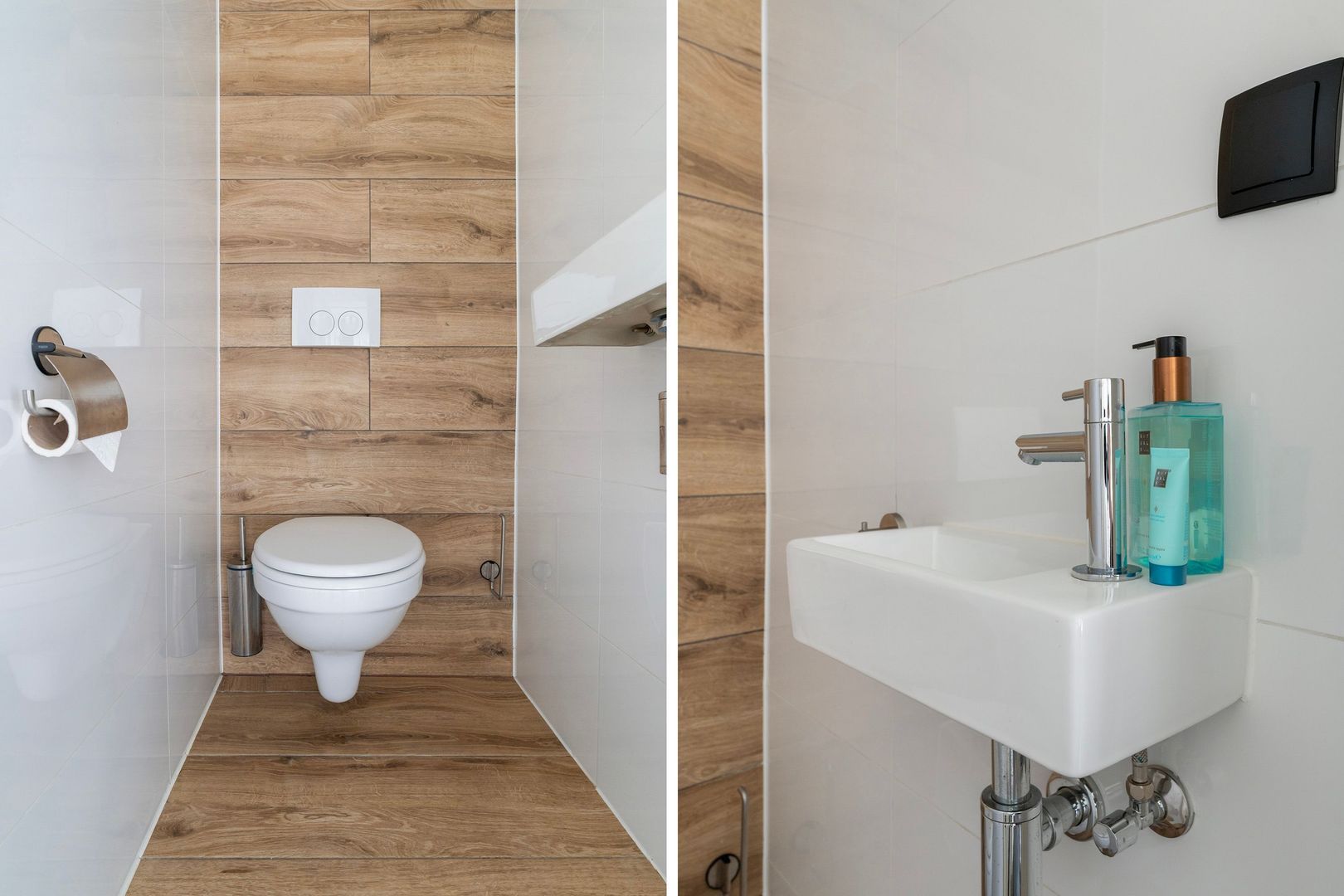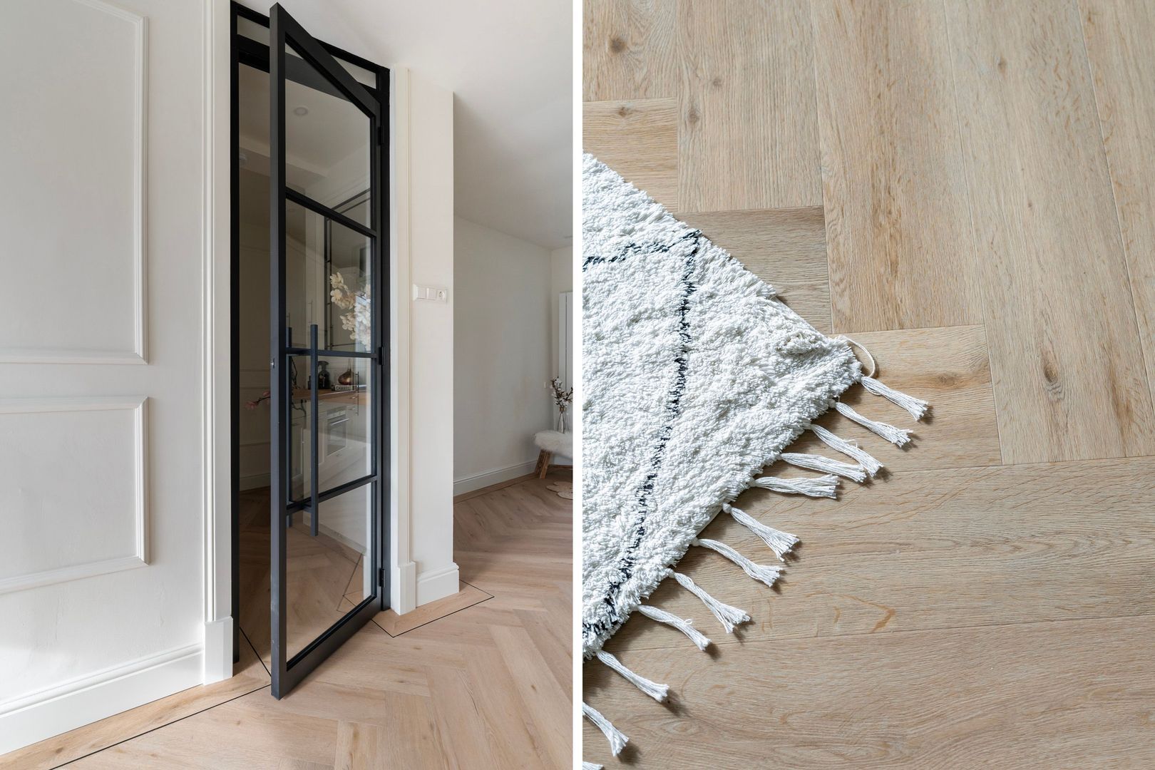 - De gehele woning is voorzien van een visgraat PVC vloer met bies