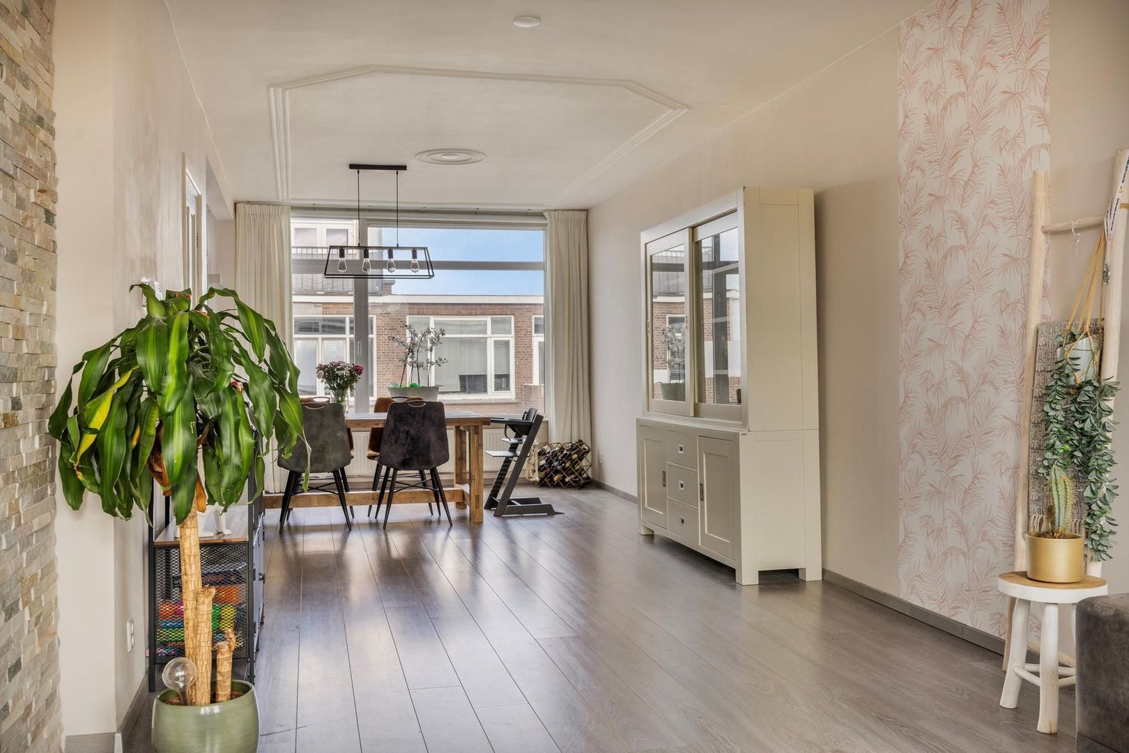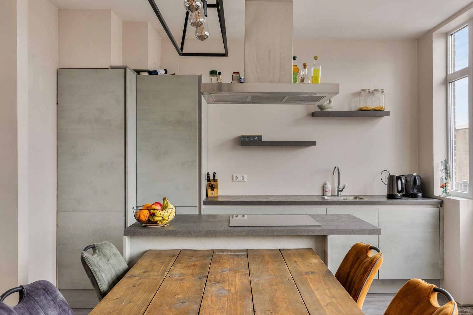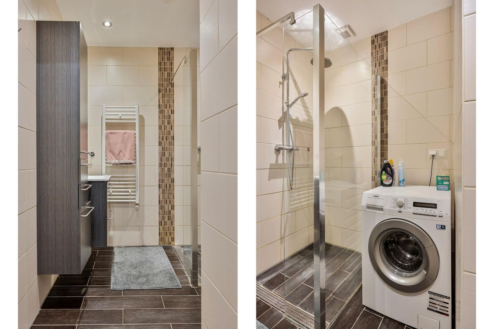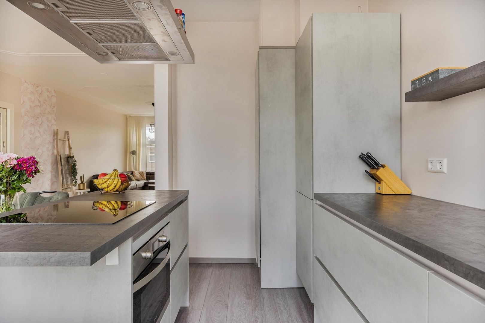 Woningentree via open portiek op 1e etage; hal met meterkast en binnentrap naar de overloop op de 2e etage; riante woonkamer met een moderne open keuken voorzien van een fraai werkblad, kookeiland, inductiekookplaat, afzuigkap, combimagnetron/-oven, vaatwasser en toegang tot het balkon; 1e grote slaapkamer aan de voorzijde; 2e slaapkamer aan de achterzijde; moderne badkamer met inloopdouche, wastafelmeubel en wasmachine aansluiting; modern separaat toilet (wandcloset) met fonteintje;