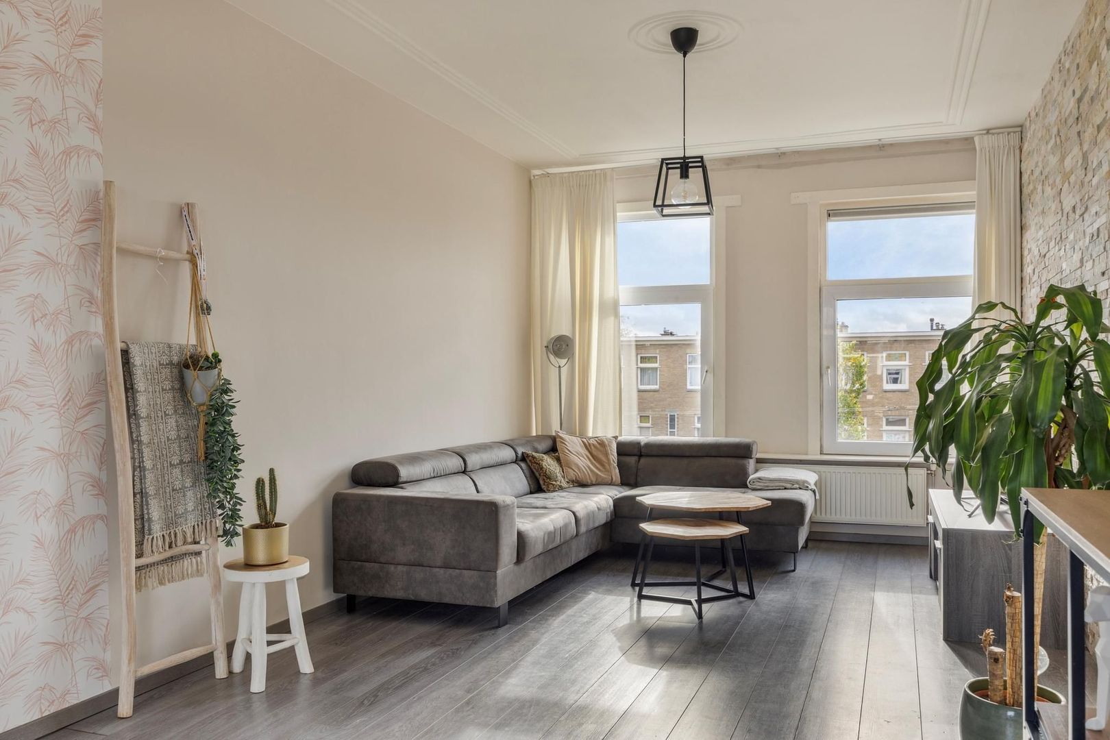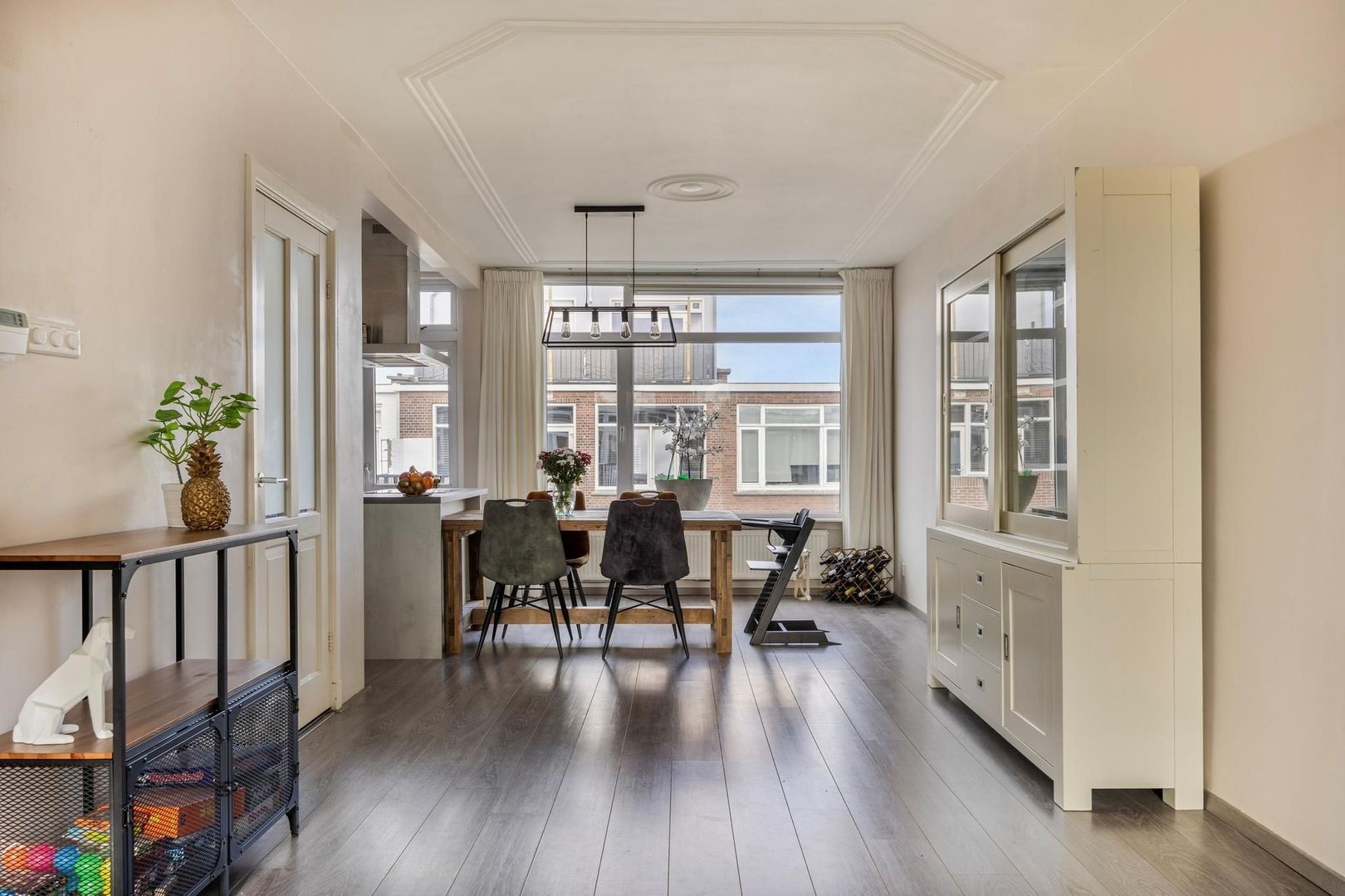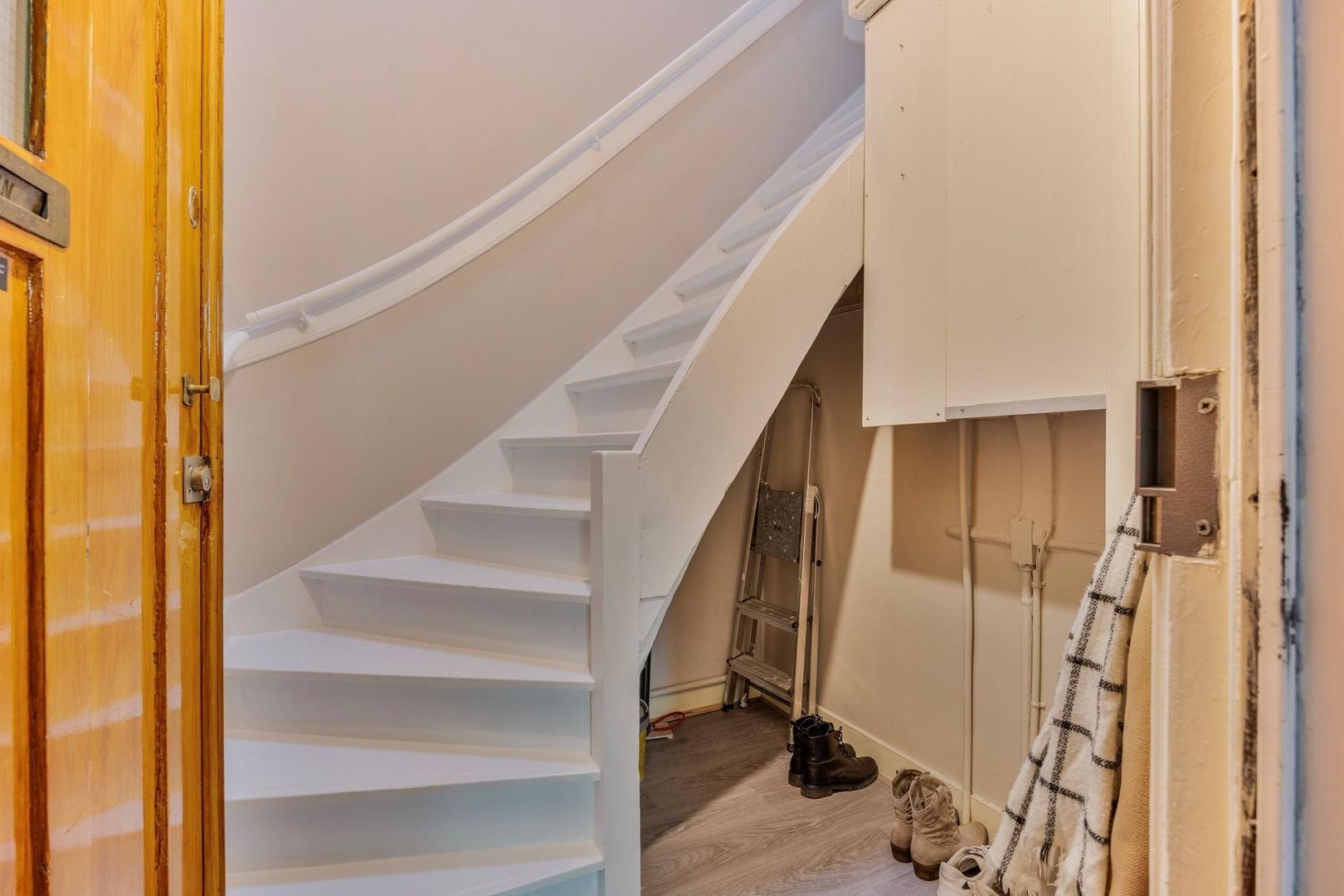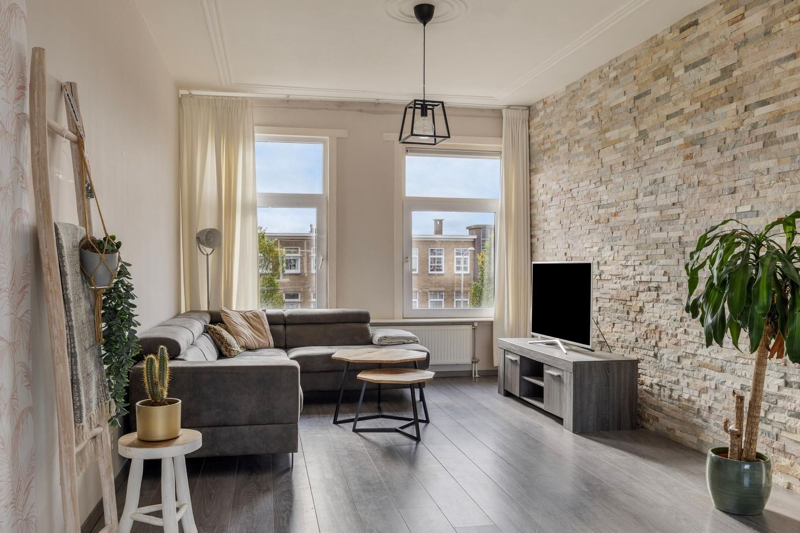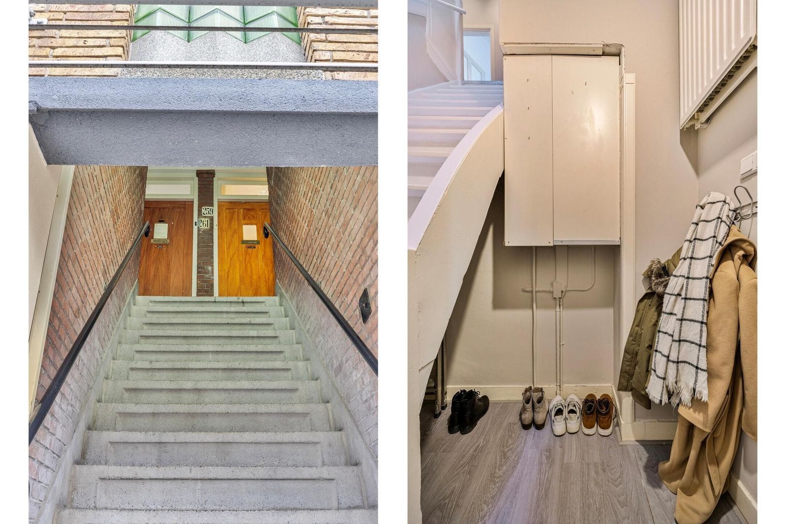 Woningentree via open portiek op 1e etage; hal met meterkast en binnentrap naar de overloop op de 2e etage; riante woonkamer met een moderne open keuken voorzien van een fraai werkblad, kookeiland, inductiekookplaat, afzuigkap, combimagnetron/-oven, vaatwasser en toegang tot het balkon; 1e grote slaapkamer aan de voorzijde; 2e slaapkamer aan de achterzijde; moderne badkamer met inloopdouche, wastafelmeubel en wasmachine aansluiting; modern separaat toilet (wandcloset) met fonteintje;