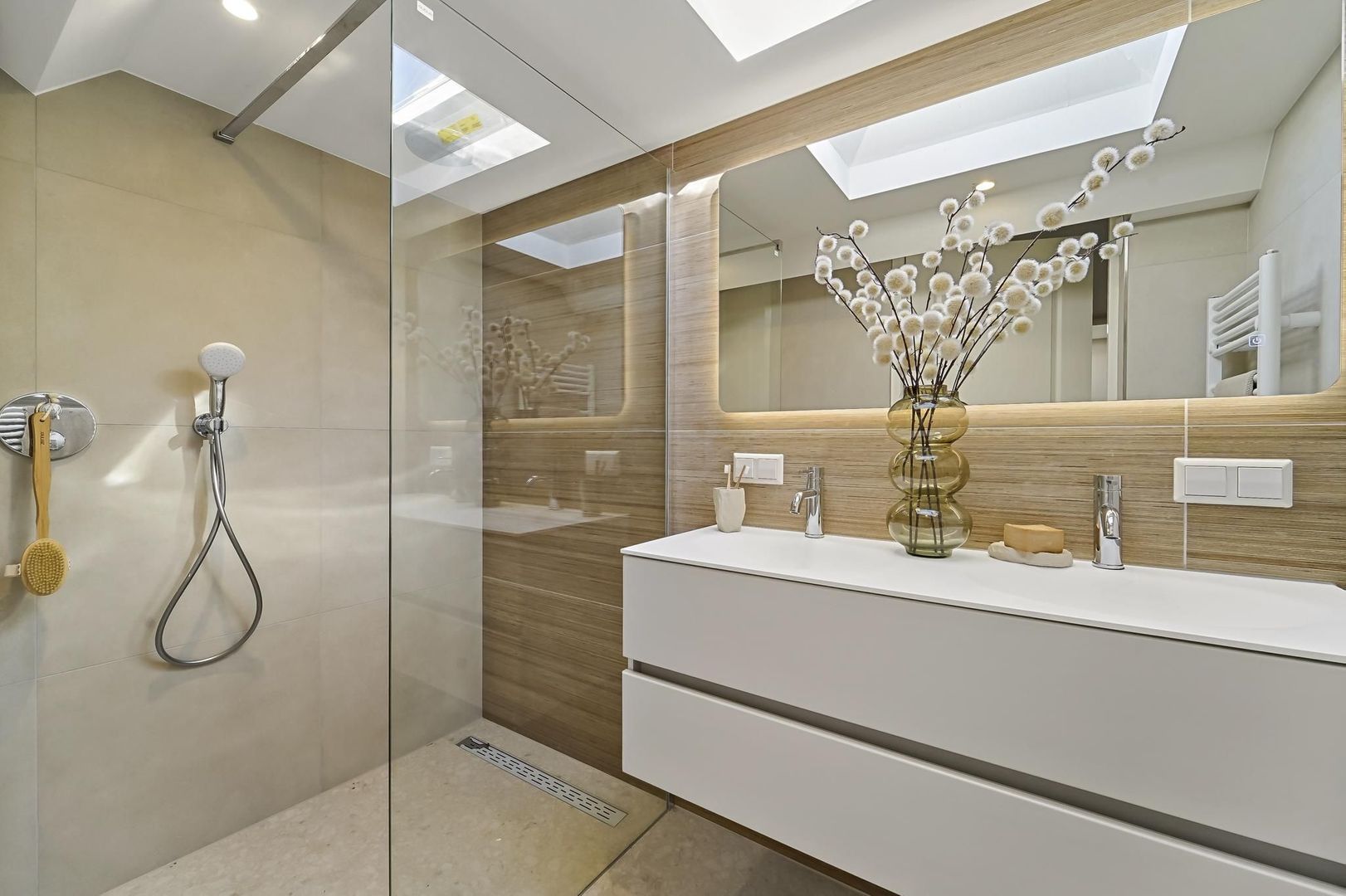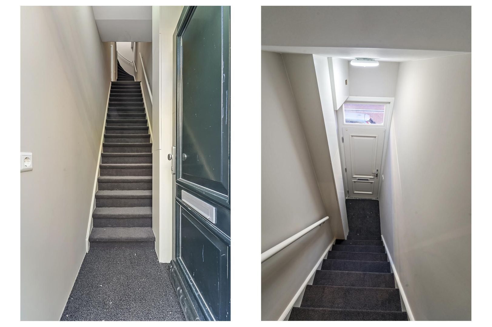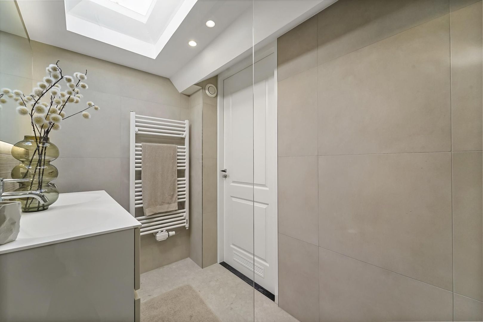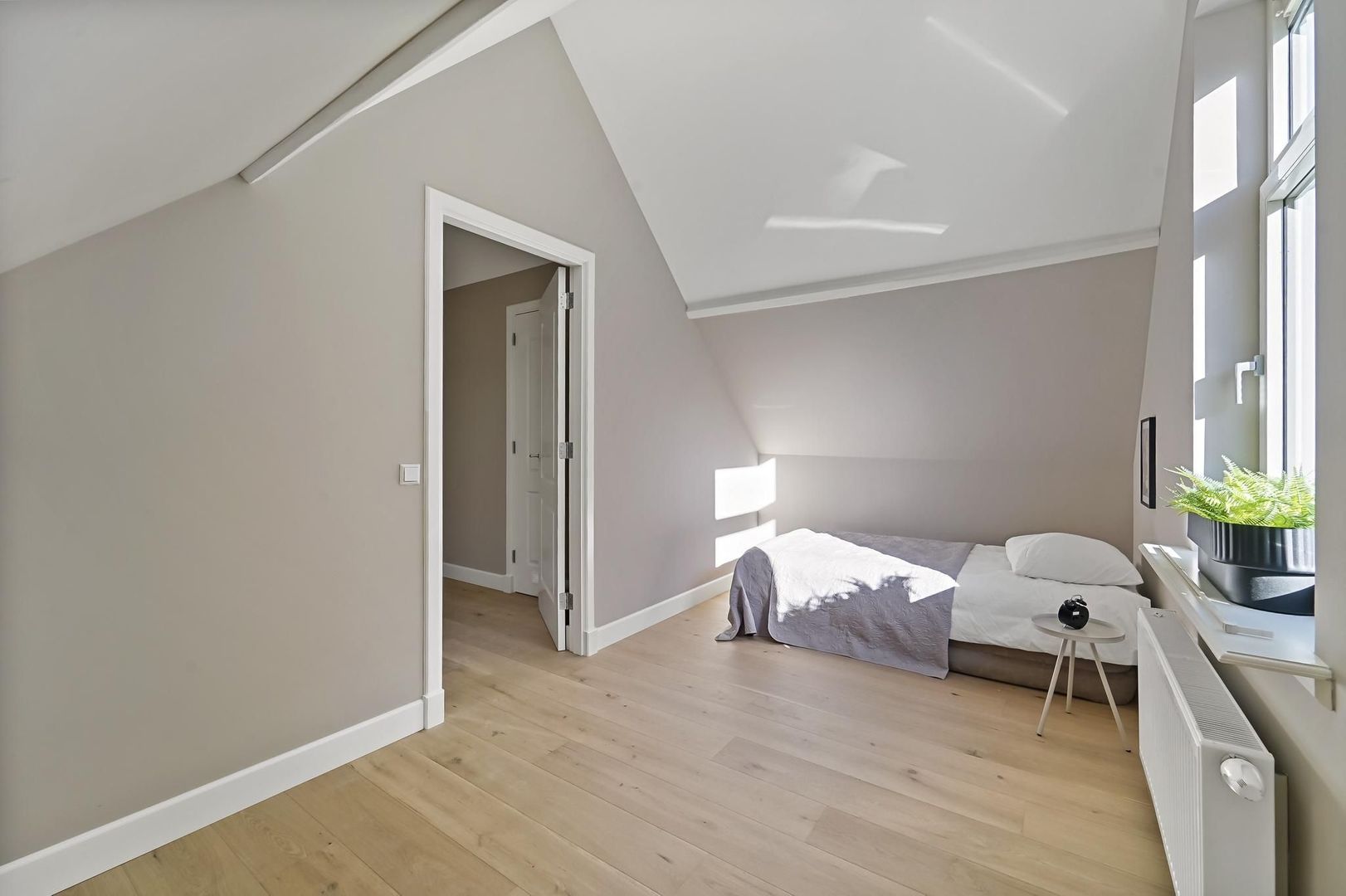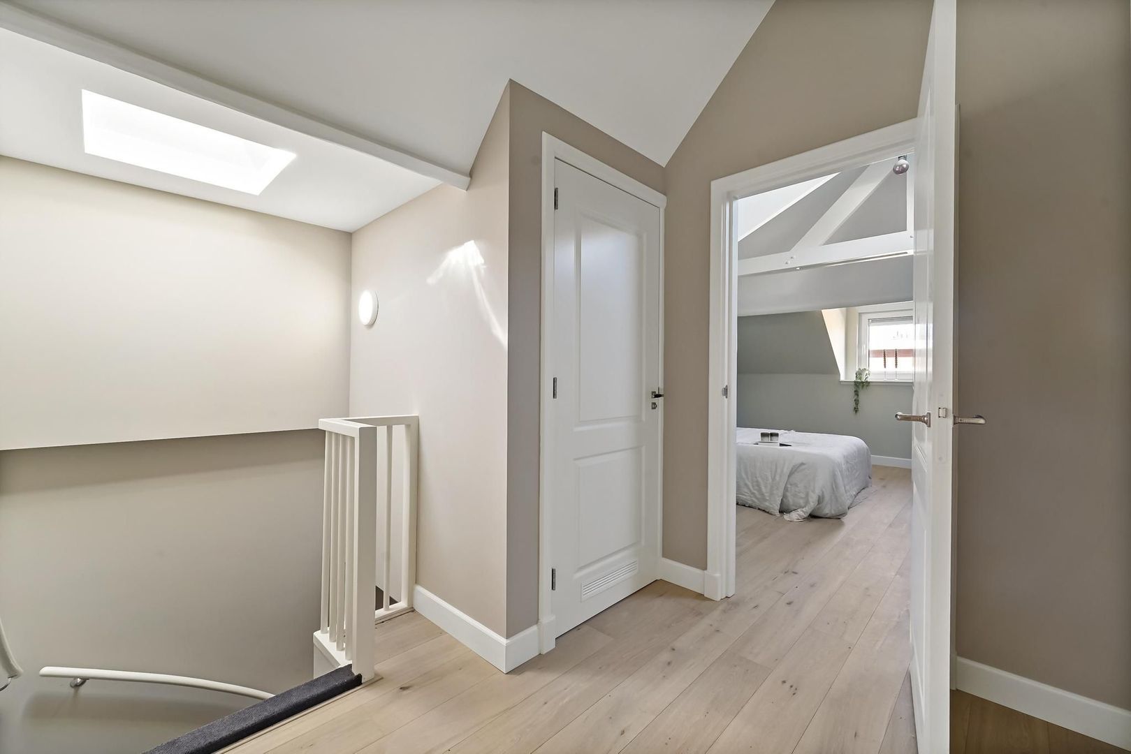 Trap vanaf de overloop naar de overloop op de 2e etage ; slaapkamer aan de voorzijde ca. 4.35x4.65; 3e slaapkamer aan de achterzijde ca.2.45x4.35; Luxe design badkamer ca. 2.53x4.48 v.v. , inloopdouche en dubbele wastafel