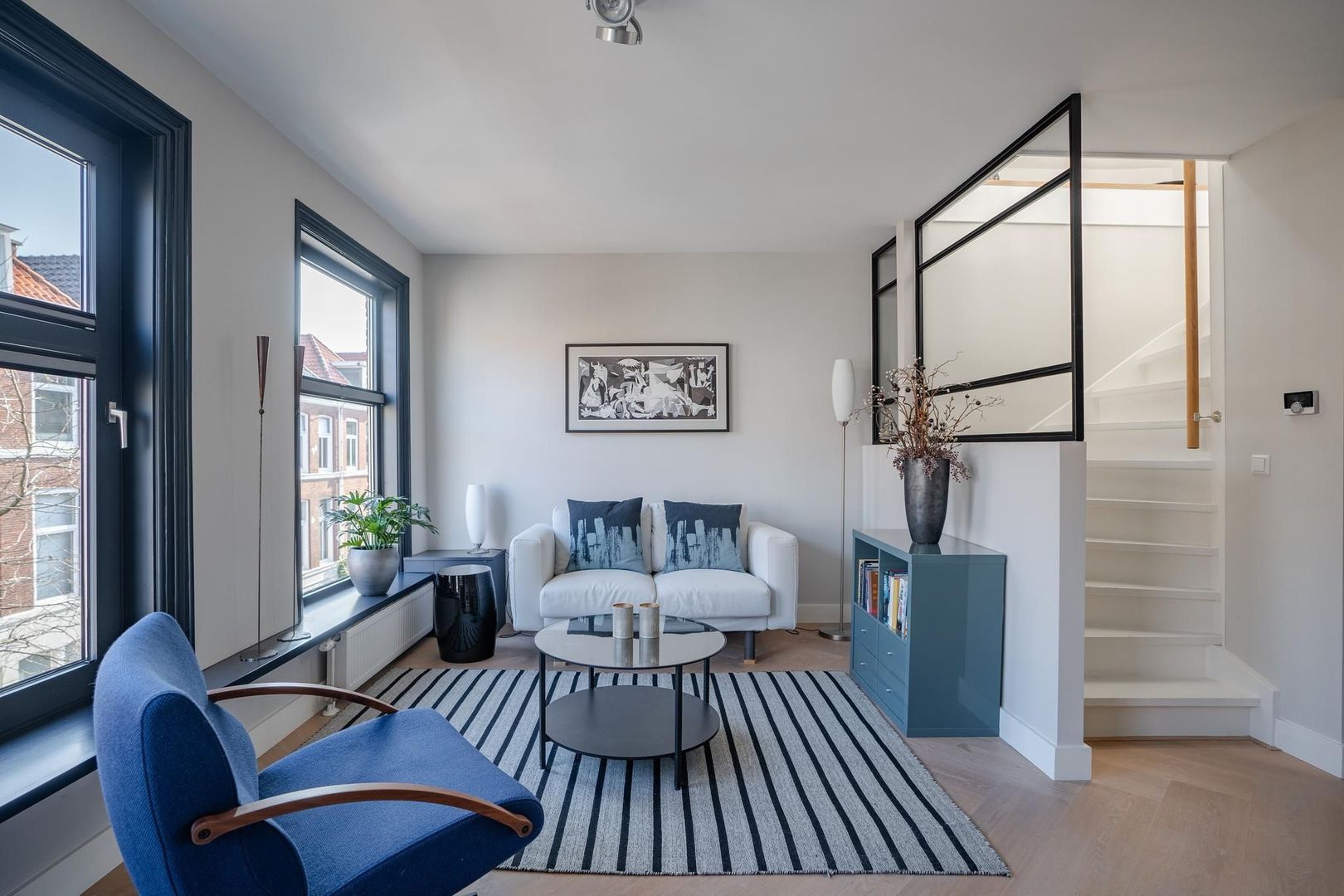 Zeeheldenkwartier. Zeer sfeervol, luxueus en met hoogwaardige materialen in 2017 compleet gerenoveerd 4 kamer 2-laags bovenwoning (102m²) met balkon/terras! De woning beschikt over een royale doorgebroken woonkamer, een luxe open keuken met inbouwapparatuur, 3 slaapkamers, een luxe badkamer. Tijdens de renovatie in 2017 is het stuc- en schilderwerk alsmede het leidingwerk volledig vernieuwd. Geheel voorzien van kozijnen met dubbel glas.
