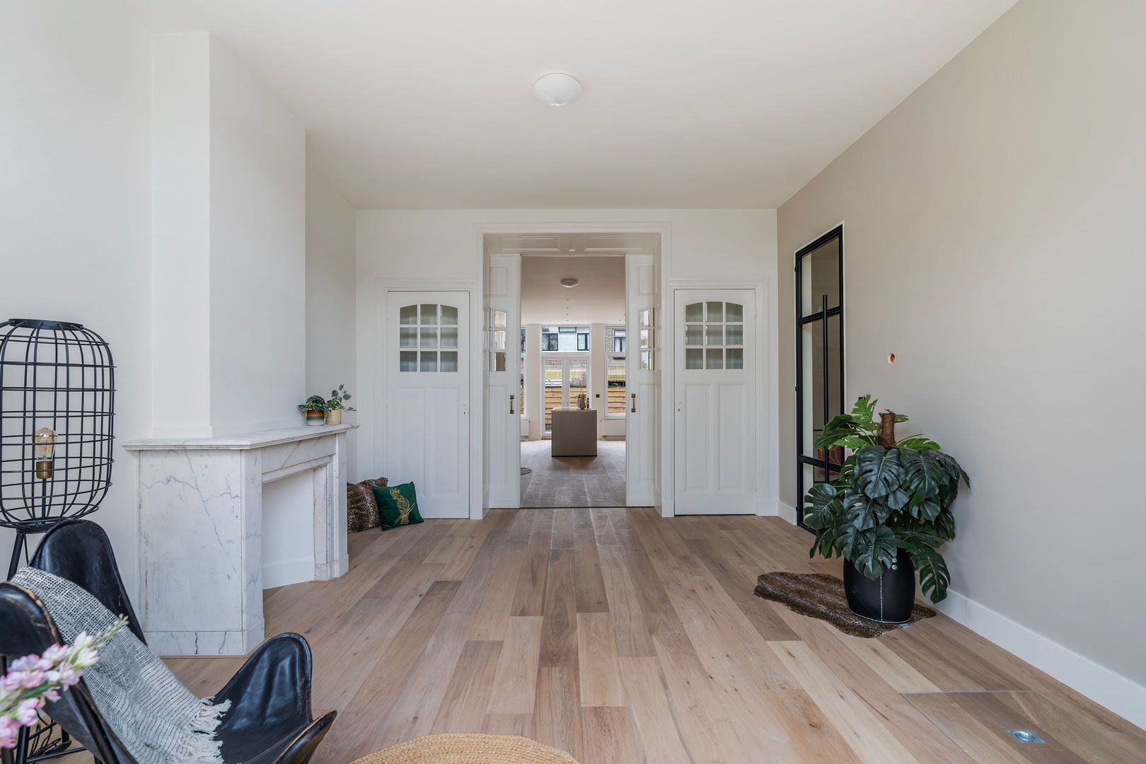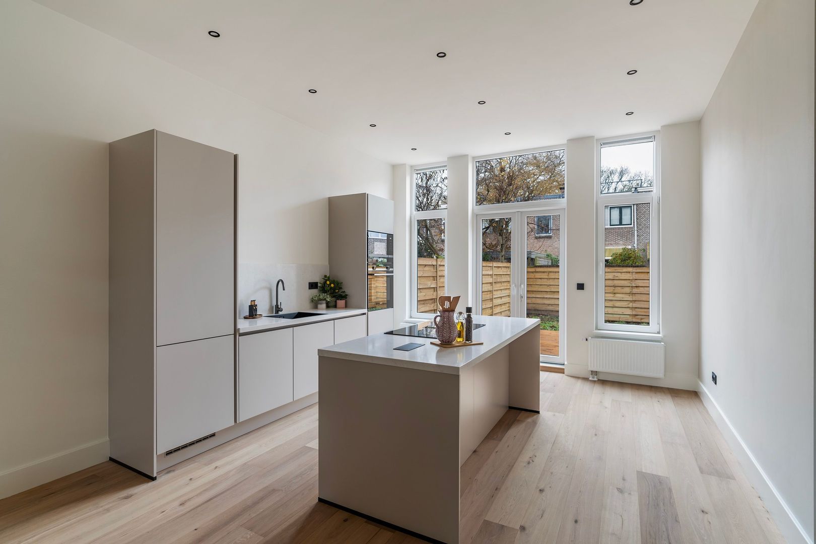 Woningentree via een gemeenschappelijke voortuin; tochtportaal; ruime woonkamer met een sfeervolle erker, schouw, vaste kasten, openslaande deuren naar de voortuin en een fraaie schuifseparatie naar de riante woonkeuken aan de achterzijde; luxe woonkeuken met een groot kookeiland voorzien van een stenen aanrechtblad, inductiekookplaat met geïntegreerde afzuiging, oven, magnetron, koelkast, vriezer, vaatwasser en openslaande deuren naar de royale achtertuin; grote slaapkamer aan de achterzijde met openslaande deuren naar de achtertuin; luxe ruime badkamer met een inloopdouche, vrijstaand ligbad en een wastafelmeubel; modern toilet (wandcloset) met fonteintje; ruime kelder welke bereikbaar is middels een vaste trap vanuit de hal;