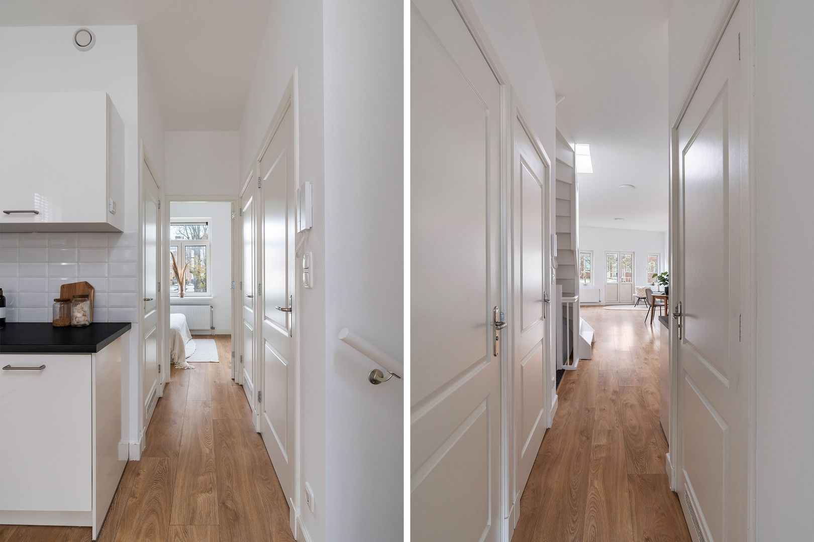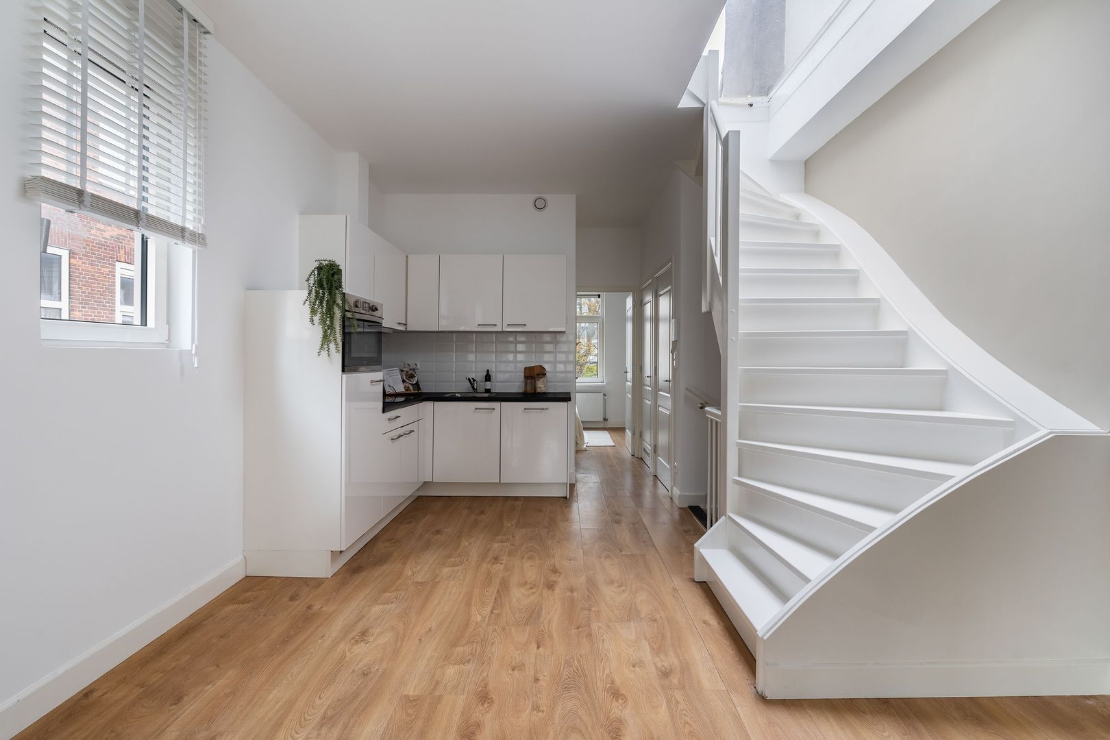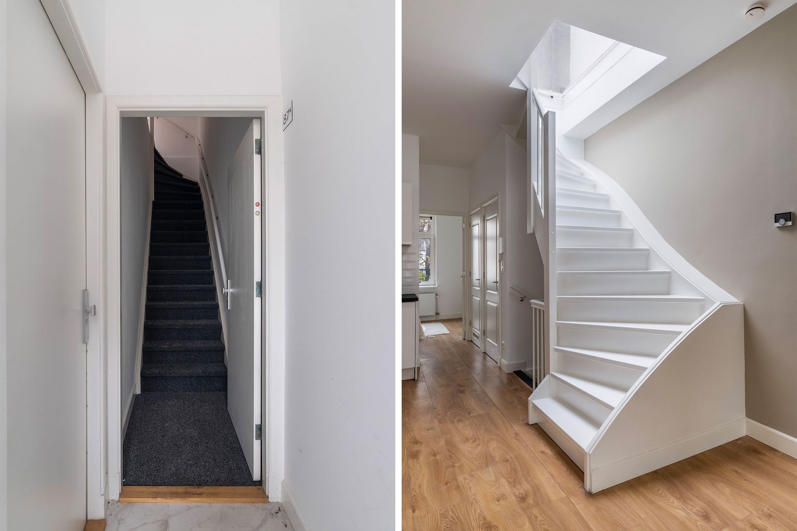 Gemeenschappelijke entree op straatniveau, hal met meterkast, trap naar 1e verdieping.