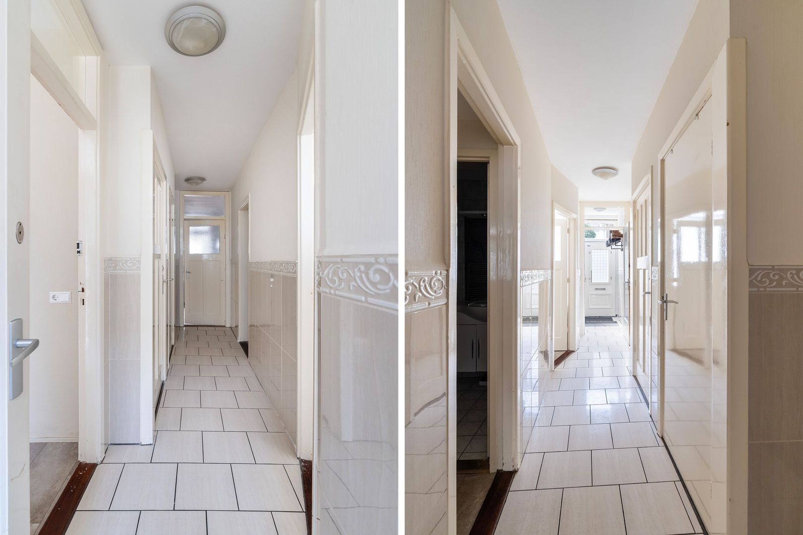 Woningentree via de voortuin; tochtportaal; gang met toilet en fonteintje; ruime woonkamer aan de voorzijde; badkamer met ligbad, douche en wastafelmeubel; hoofdslaapkamer aan de achterzijde; 2e slaapkamer aan de achterzijde; 3e slaapkamer aan de voorzijkamer; inpandige bijkeuken/bergruimte; nette keuken met diverse ingebouwde apparatuur; via de keuken toegang tot de uitbouw alwaar een extra tuingerichte zitkamer/ruimte is die en vanuit waar een extra slaap/bergkamer bereikbaar is. Achtertuin met schuur.