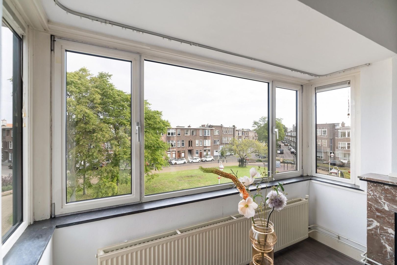 Rustenburg / Oostbroek. Met vrij uitzicht over het plantsoen van het Blaricumseplein gelegen royaal 4 kamer appartement (88m²) met balkon op het zuid-westen. Deze sfeervolle woning is o.a. voorzien van een riante woonkamer en suite met een glas in lood schuifseparatie, nette keuken met inbouwapparatuur, degelijke badkamer, 2 slaapkamer met de mogelijkheid tot het realiseren van een 3e slaapkamer achterin de woonkamer. Daarnaast is de woning geheel voorzien van dubbel glas en is de Vereniging van Eigenaren actief met een meerjarenonderhoudsplan!