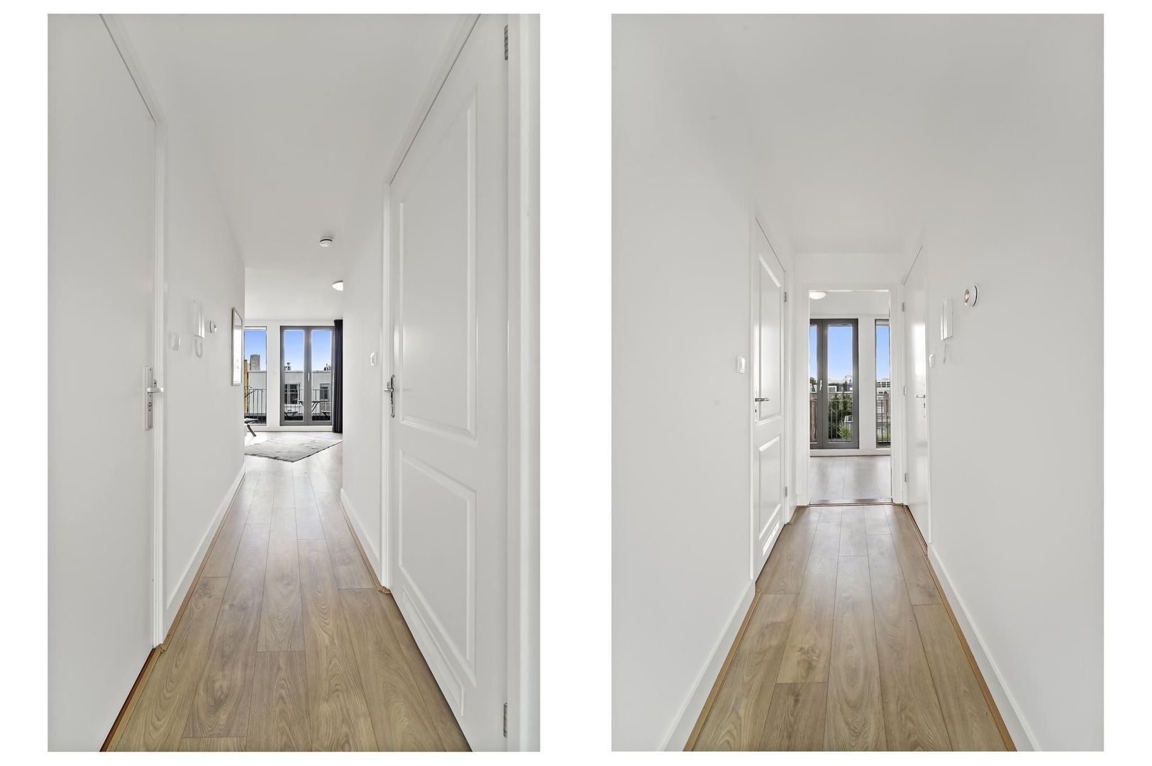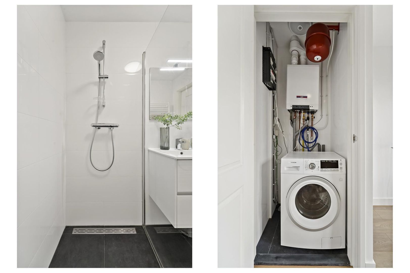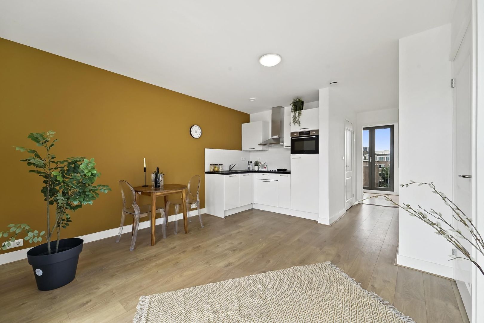 Entree appartement; hal; berging met opstelplaats wasmachine/droger en cv-ketel; woon-/eetkamer ca. 6.05x4.23 met luxe open keuken voorzien van een inductiekookplaat, afzuigkap, combi-oven, koelkast, vriezer en vaatwasser ; slaapkamer ca.2.95x4.40 met toegang tot het dakterrasbalkon, luxe badkamer ca. 2.60x1.77 voorzien van inloopdouche, toilet en wastafelmeubel.