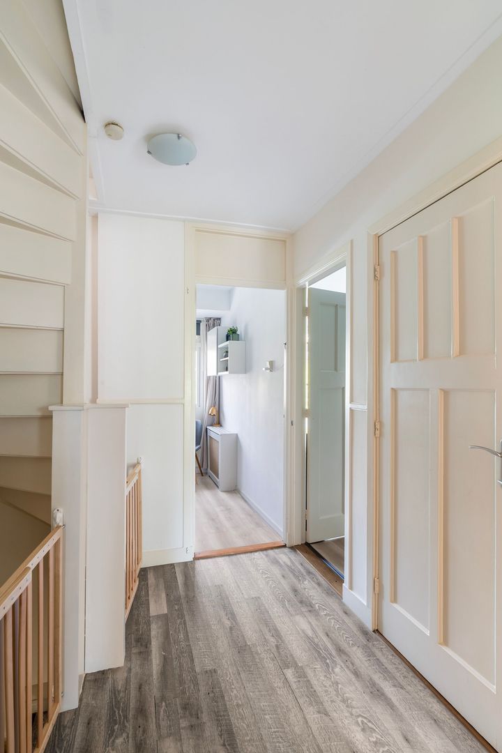 Overloop met toegang tot drie slaapkamers en de badkamer. Slaapkamer 1 (voorzijde): ca. 3.29m x 4.26m, met veel lichtinval. Slaapkamer 2 (achterzijde): voorzien van veel opbergruimte en openslaande deuren naar het balkon; Slaapkamer 3: ideaal als werkkamer of kinderkamer. Badkamer: modern afgewerkt met ruime inloopdouche voorzien van regendouche, wastafel en nette betegeling.