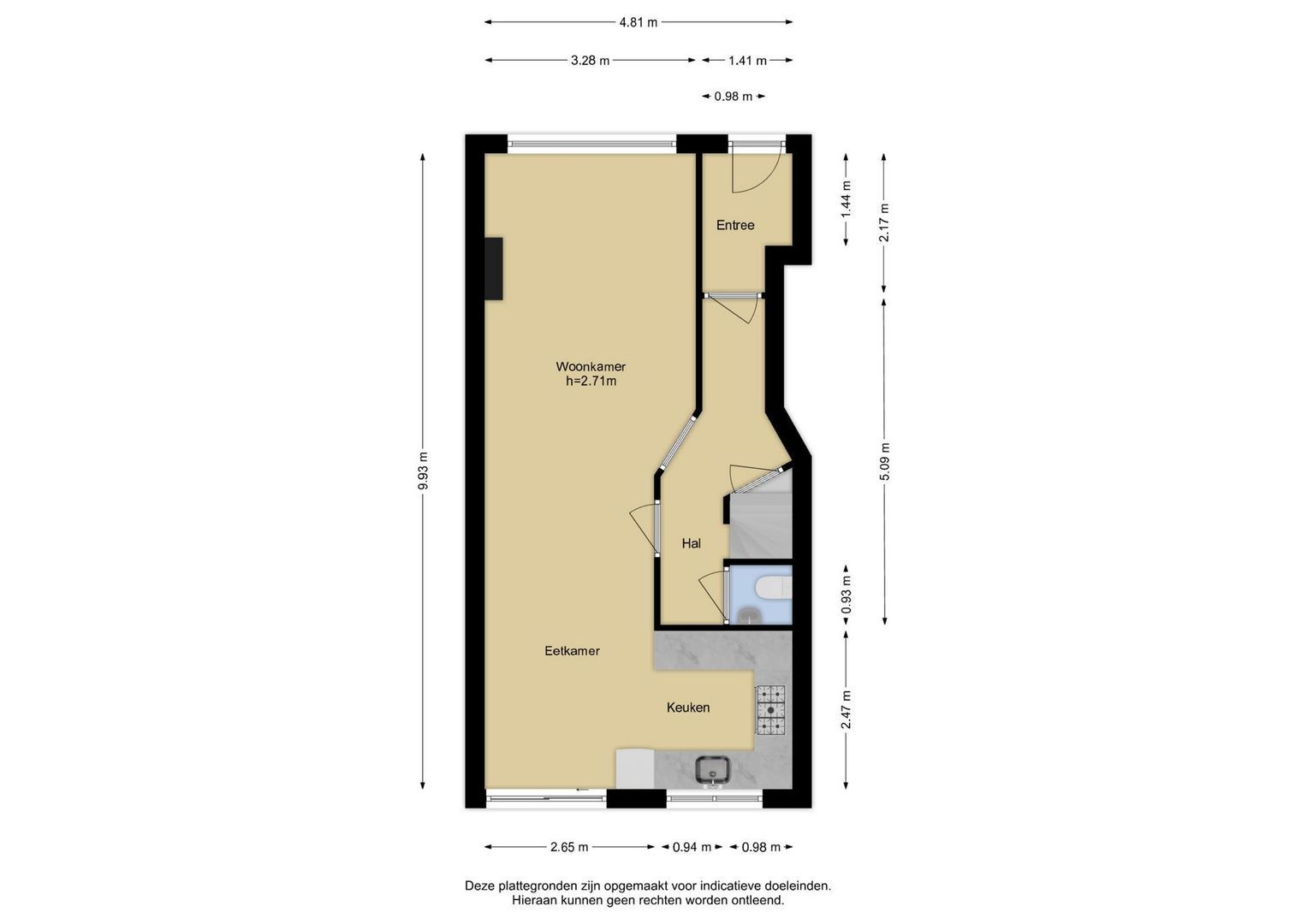 Deze informatie is door ons met de nodige zorgvuldigheid samengesteld. Onzerzijds wordt echter geen enkele aansprakelijkheid aanvaard voor enige onvolledigheid, onjuistheid of anderszins, dan wel de gevolgen daarvan. Alle opgegeven maten en oppervlakten zijn indicatief.