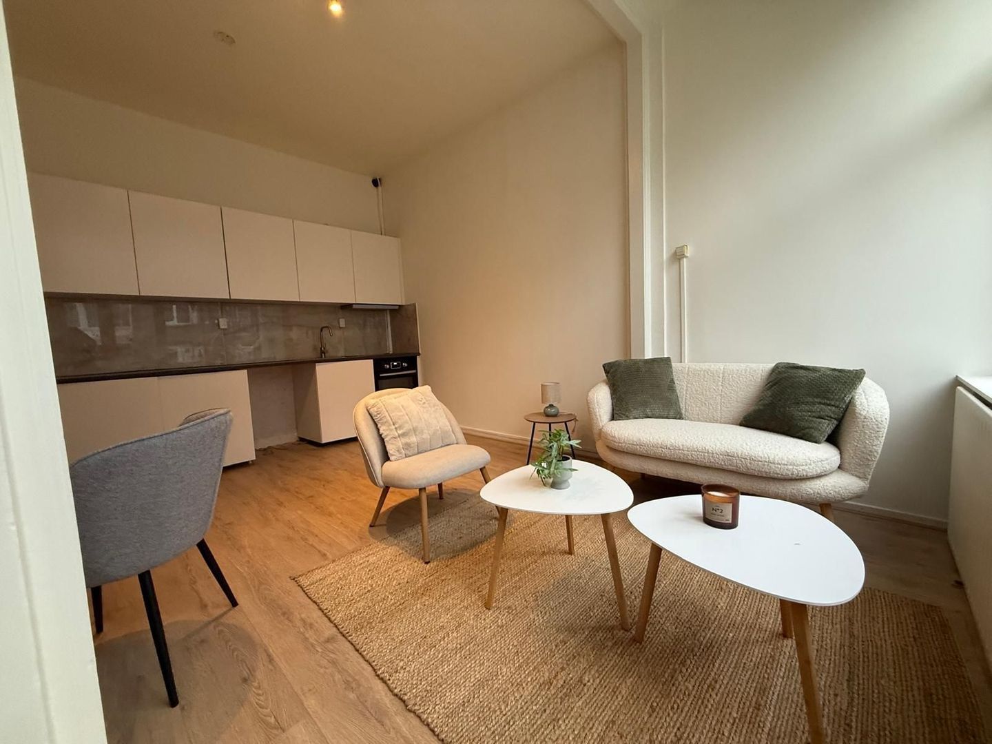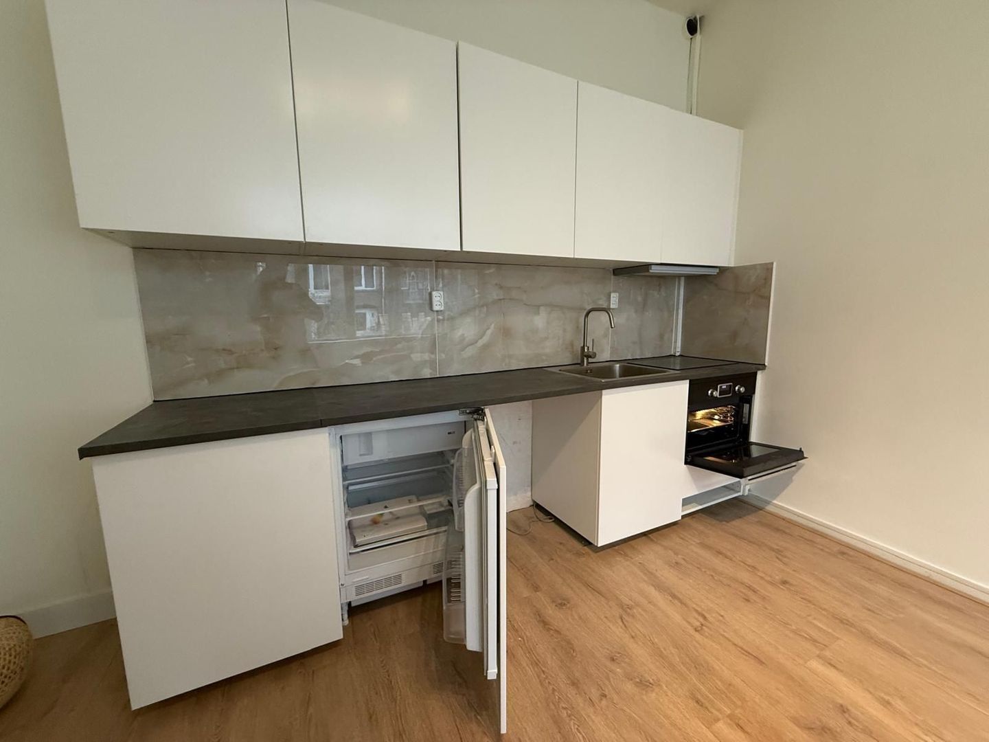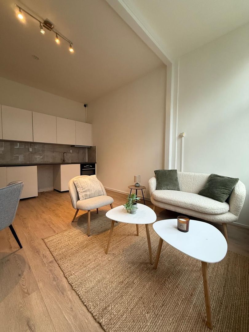 Centrale entree op de begane grond; gang naar het achter appartement; woonkamer met open keuken en diverse ingebouwde apparatuur zoals inductie kookplaat, oven, afzuigkap en koelkast en ruimte voor wasmachine/vaatwasser; slaapkamer met toegang naar de badkamer met douche, toilet en wastafel; Het complex beschikt over een centrale wasruimte.