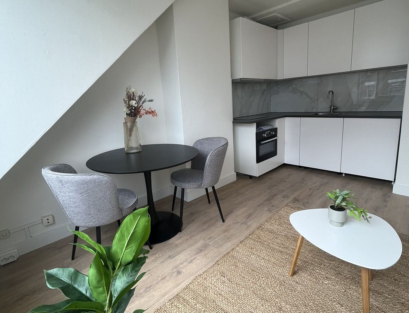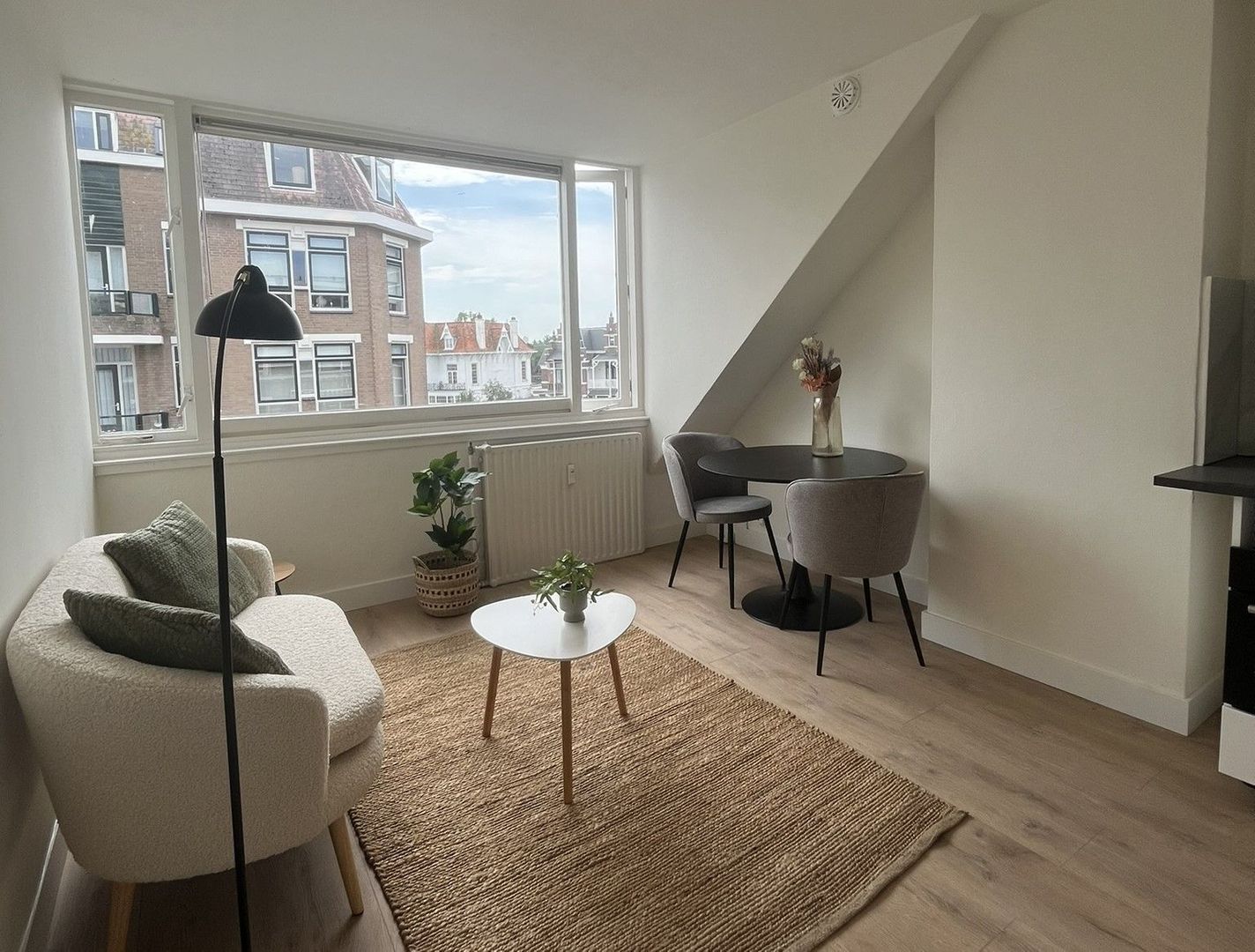 Belgisch park. Zowat op de hoek met de Badhuisweg en dus op loopafstand van de Boulevard ligt dit 2 kamer micro appartement (ca 21m2) op de 2e (zolder) etage aan de voorzijde. Het complex waar dit appartement deel van uitmaakt bevat 7 appartementen. Een souterrain woning en verder 2 appartementen per etage.