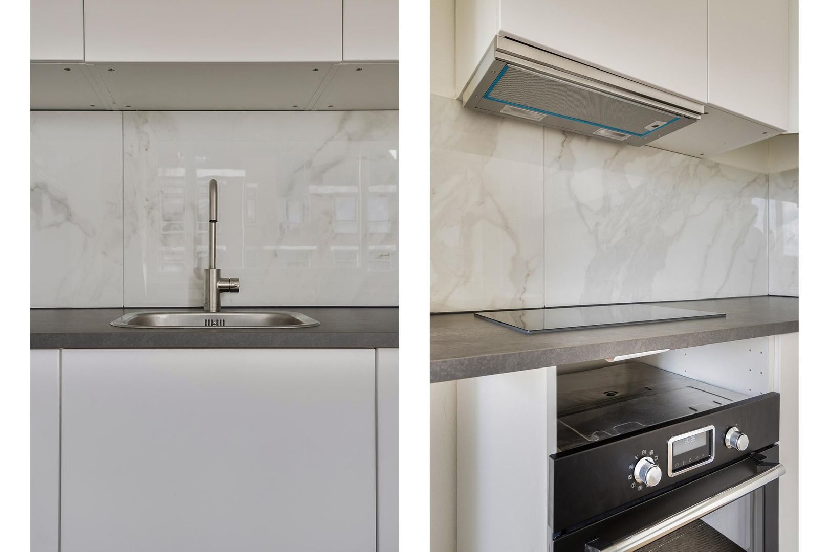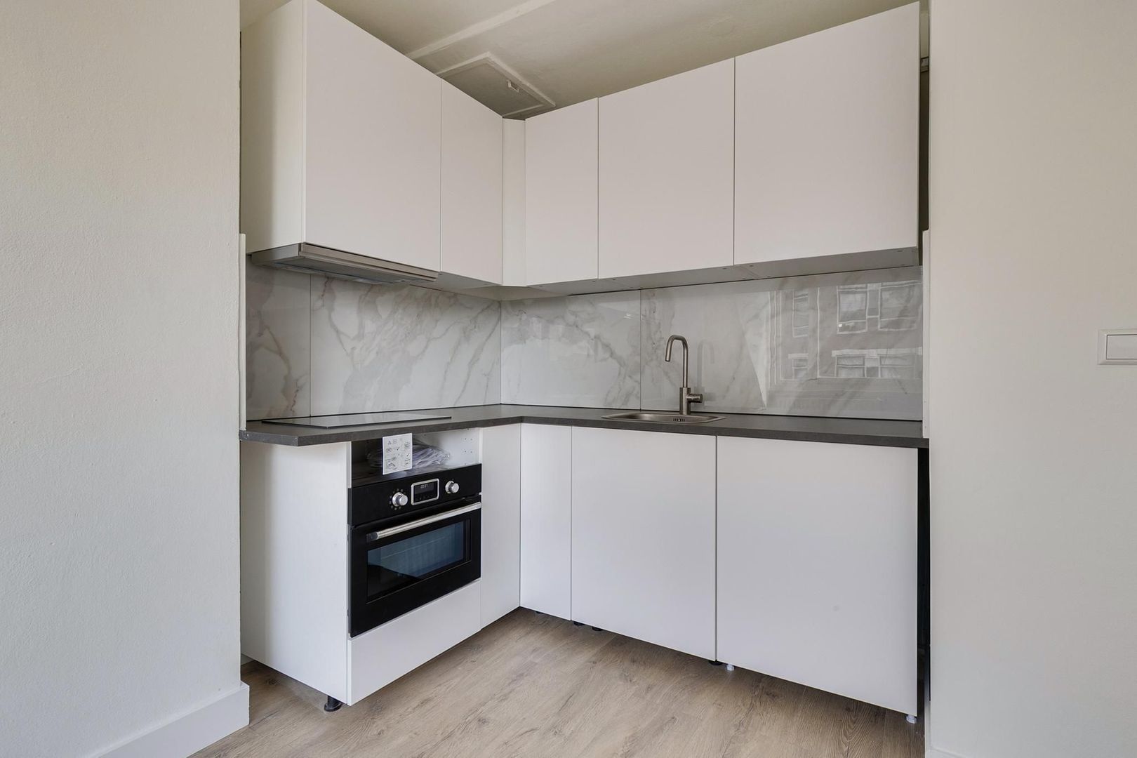 Centrale entree op de begane grond met trappenhuis. 2e Etage. Entree appartement; woonkamer met open keuken en diverse ingebouwde apparatuur zoals inductie kookplaat, oven, afzuigkap en koelkast; slaapkamer met toegang naar de badkamer met douche, toilet en wastafel; Het complex beschikt over een centrale wasruimte.