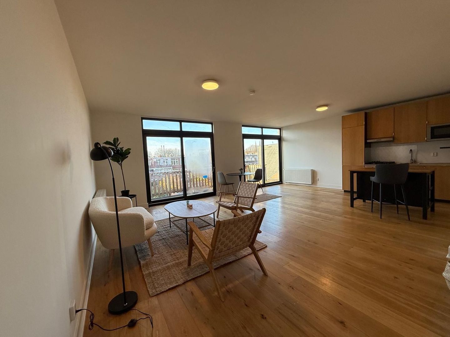 Centrum. Royaal, speels en ligt 3 kamer appartement op de 2e (bovenste) etage met een 5 meter breed balkon op het zuid westen. Dit appartement heeft een riant grote woonkamer aan de achterzijde met 2 schuifpuien en een open keuken; 2 slaapkamers aan der voorzijde en een badkamer. Het appartement heeft vanaf de woonkamer uitzicht op een rustig en wijds met daar de Bethaniekerk.