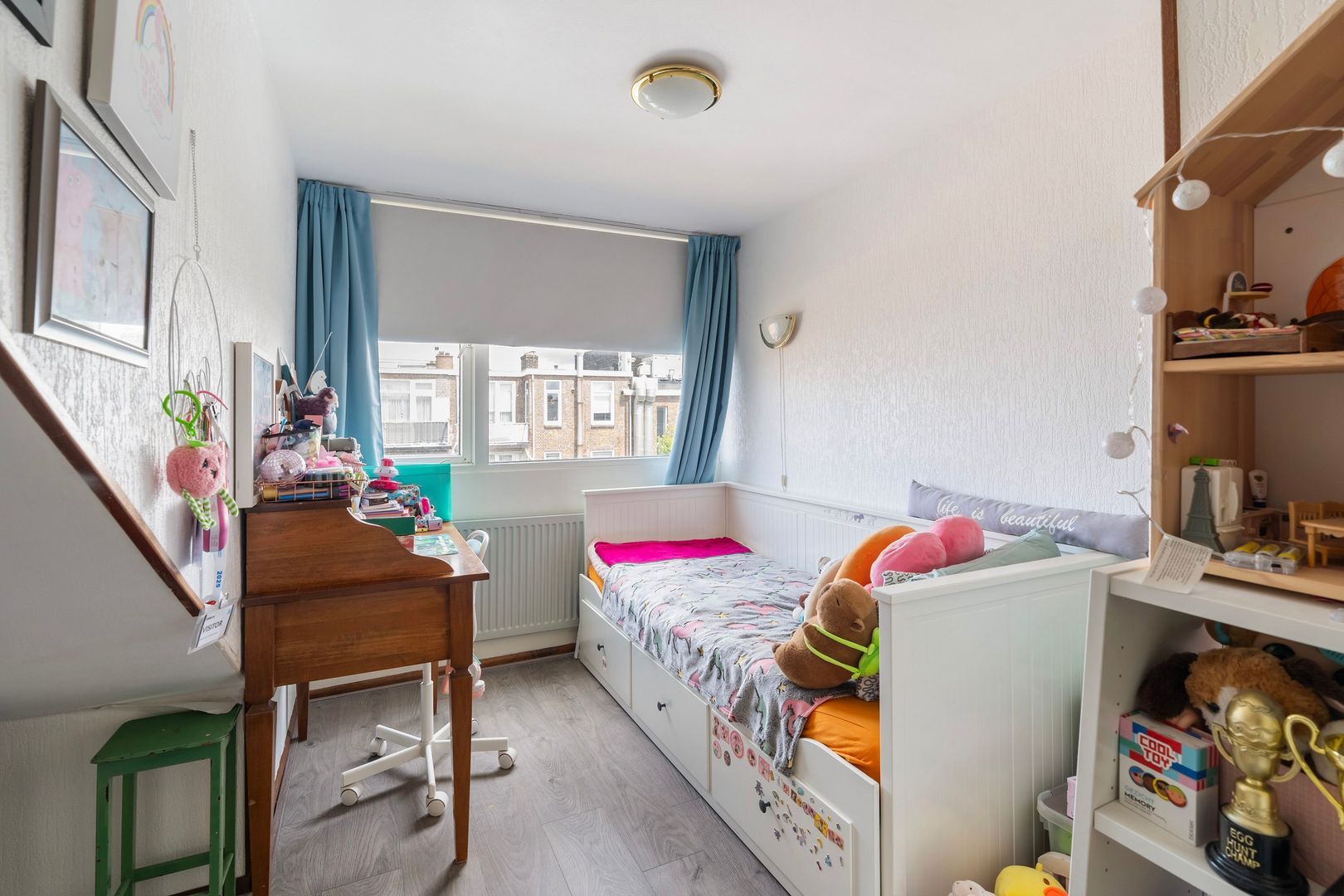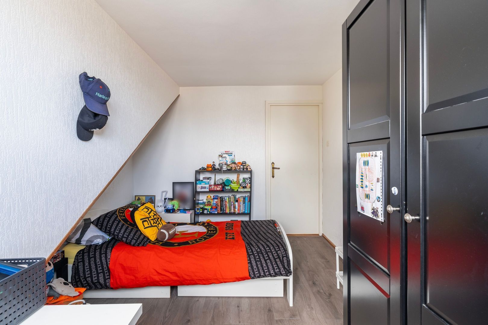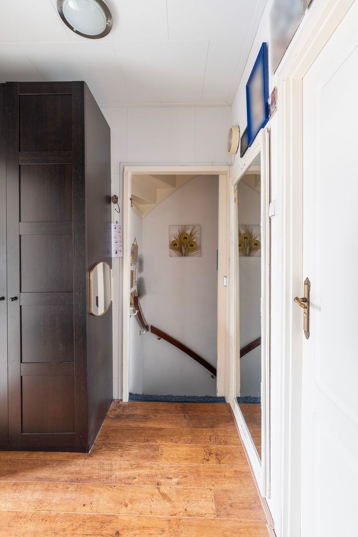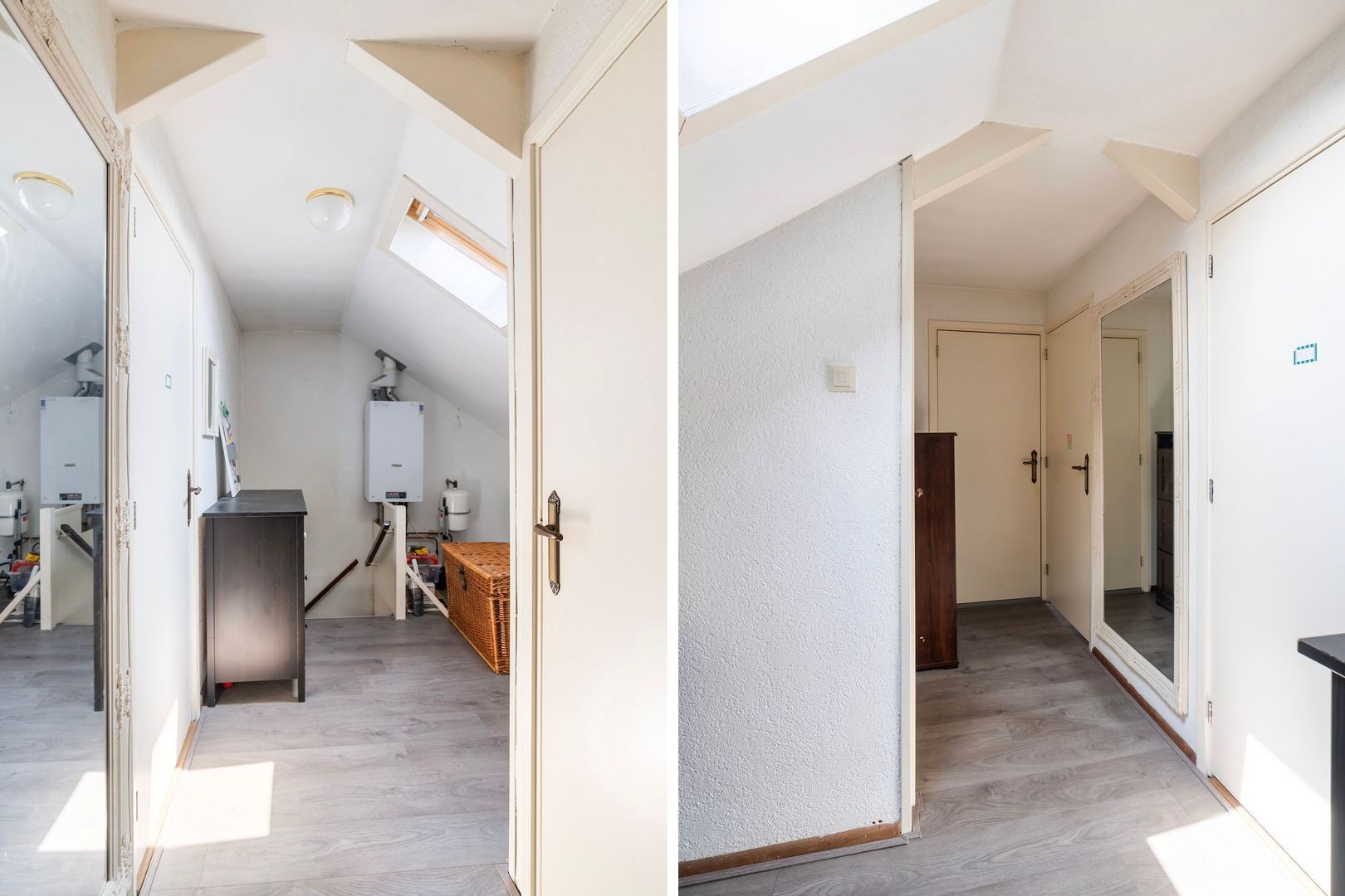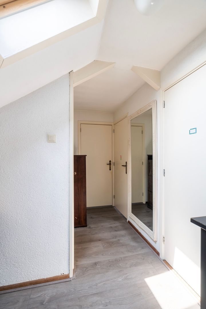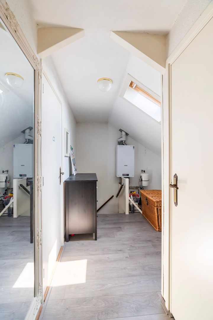 Tweede verdieping: Overloop. Aan de achterzijde bevinden zich twee royale slaapkamers met allebei een dakkapel. Aan de voorzijde ligt een derde kamer, geschikt als berging of extra slaapkamer, voorzien van een dakraam. Daarnaast is er een tweede toilet op deze verdieping.