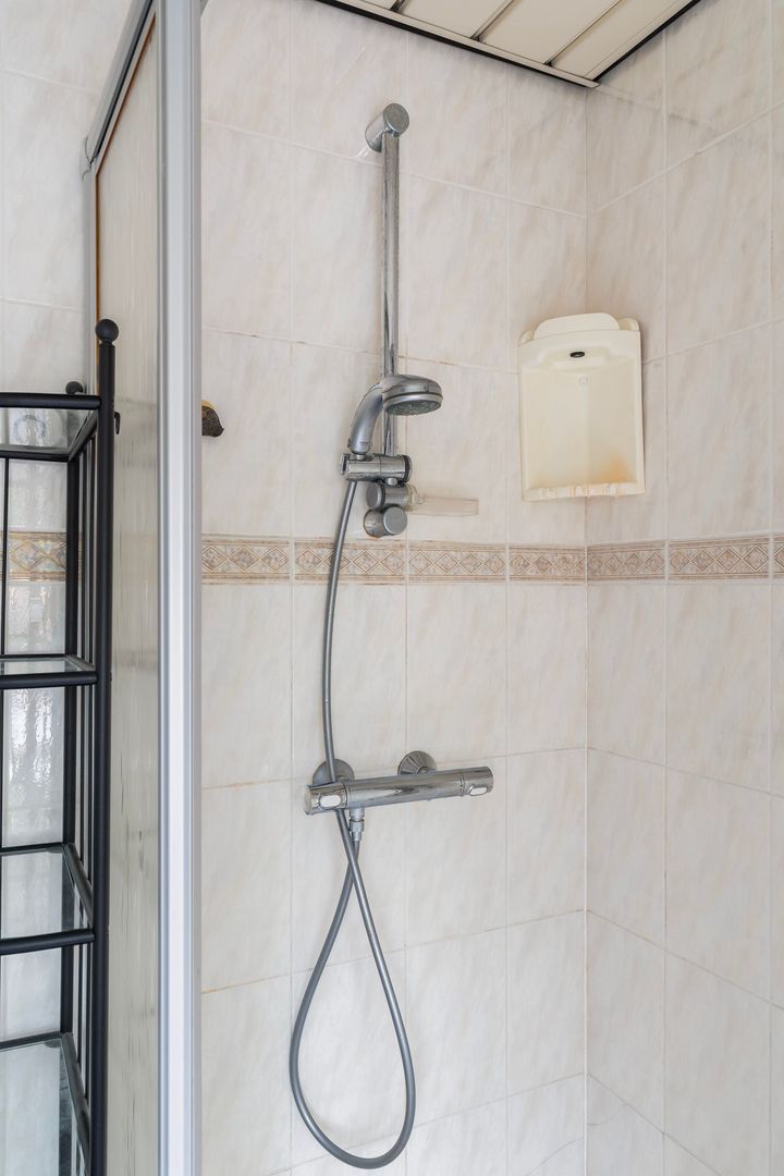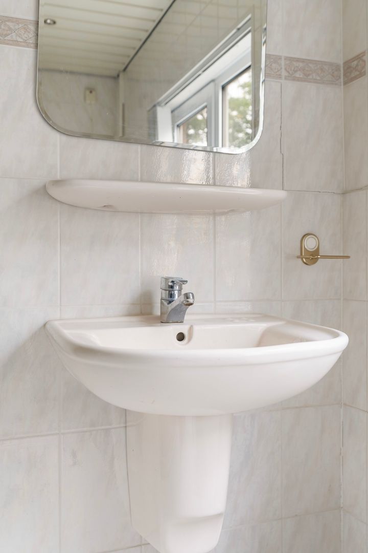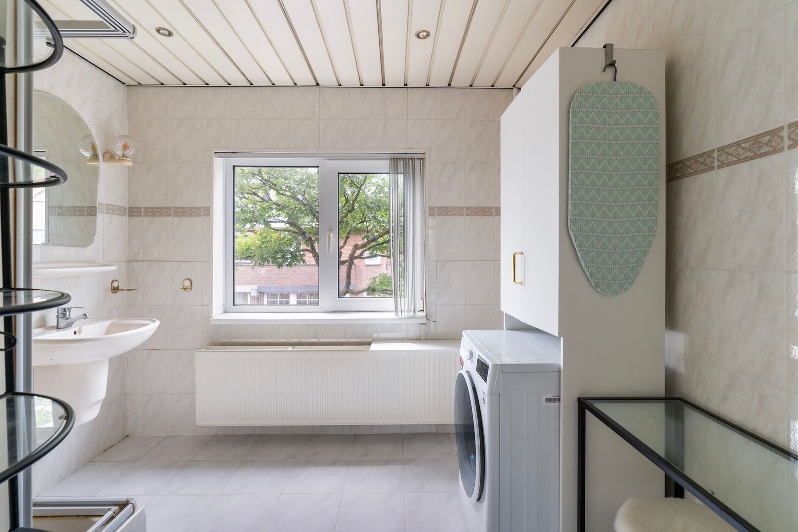 Eerste verdieping: Overloop met toegang tot de lichte woonkamer. Vanuit de woonkamer is er toegang tot een achterkamer, die eenvoudig bij de woonkamer getrokken kan worden voor extra leefruimte. De ruime eetkeuken is aan de achterzijde gesitueerd en biedt toegang tot het balkon. De badkamer aan de voorzijde is voorzien van een douche, toilet, wastafelmeubel en aansluiting voor de wasmachine.