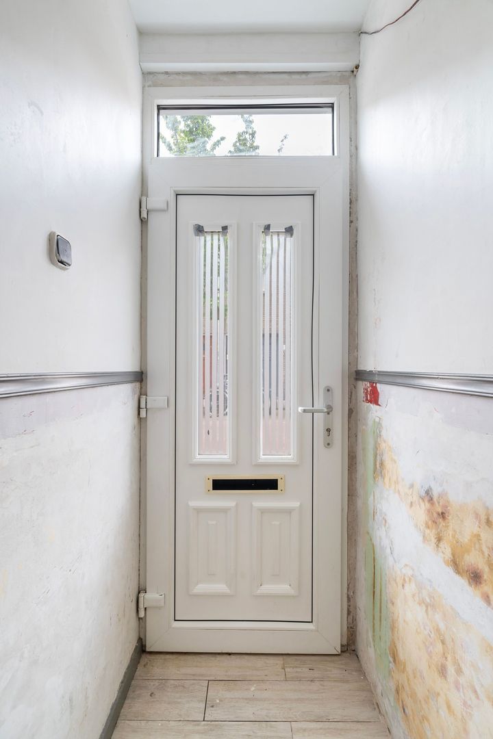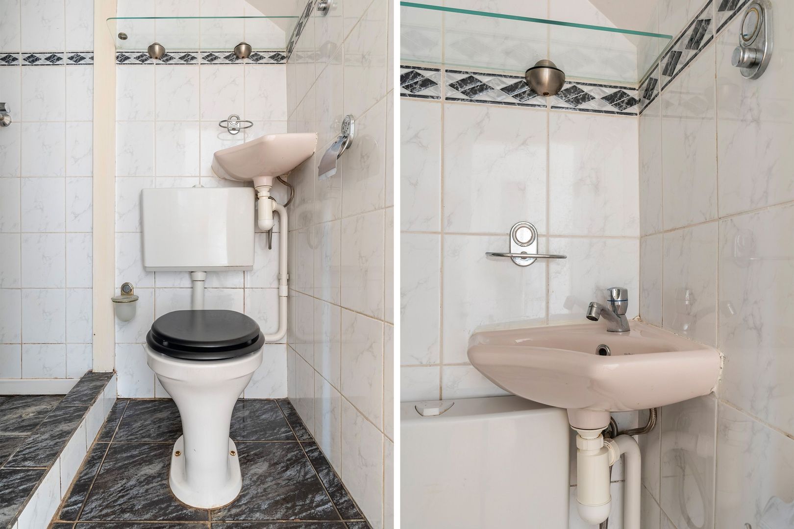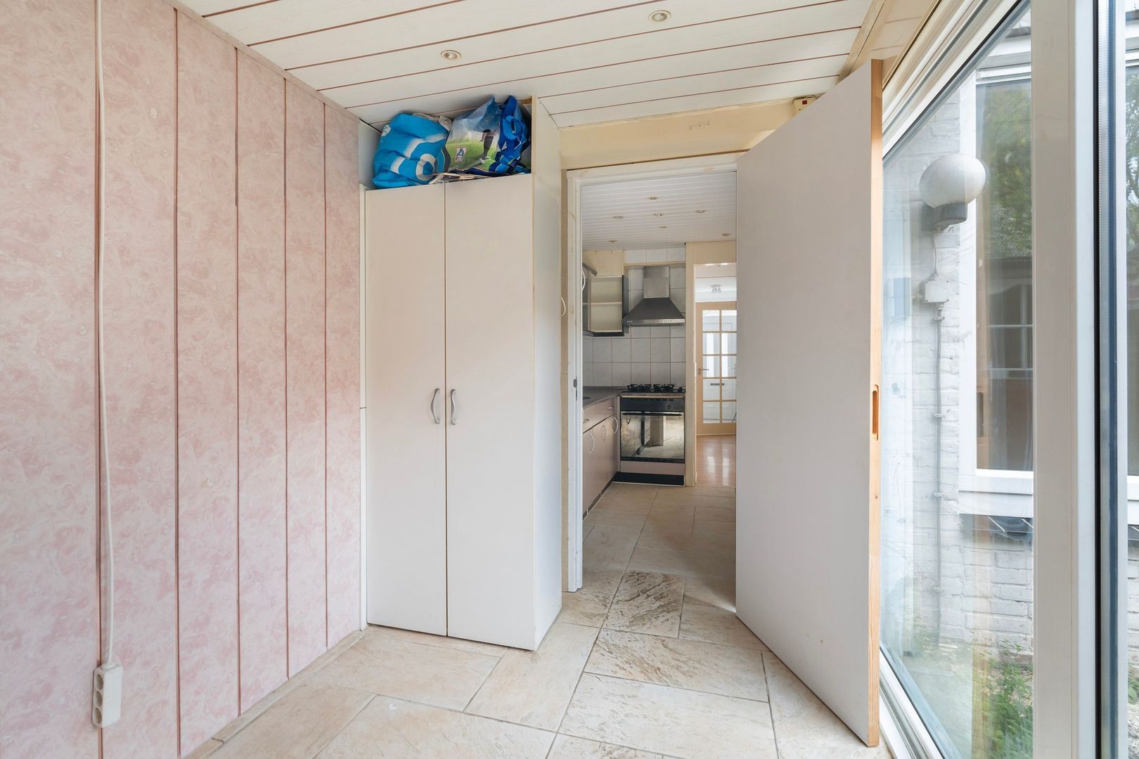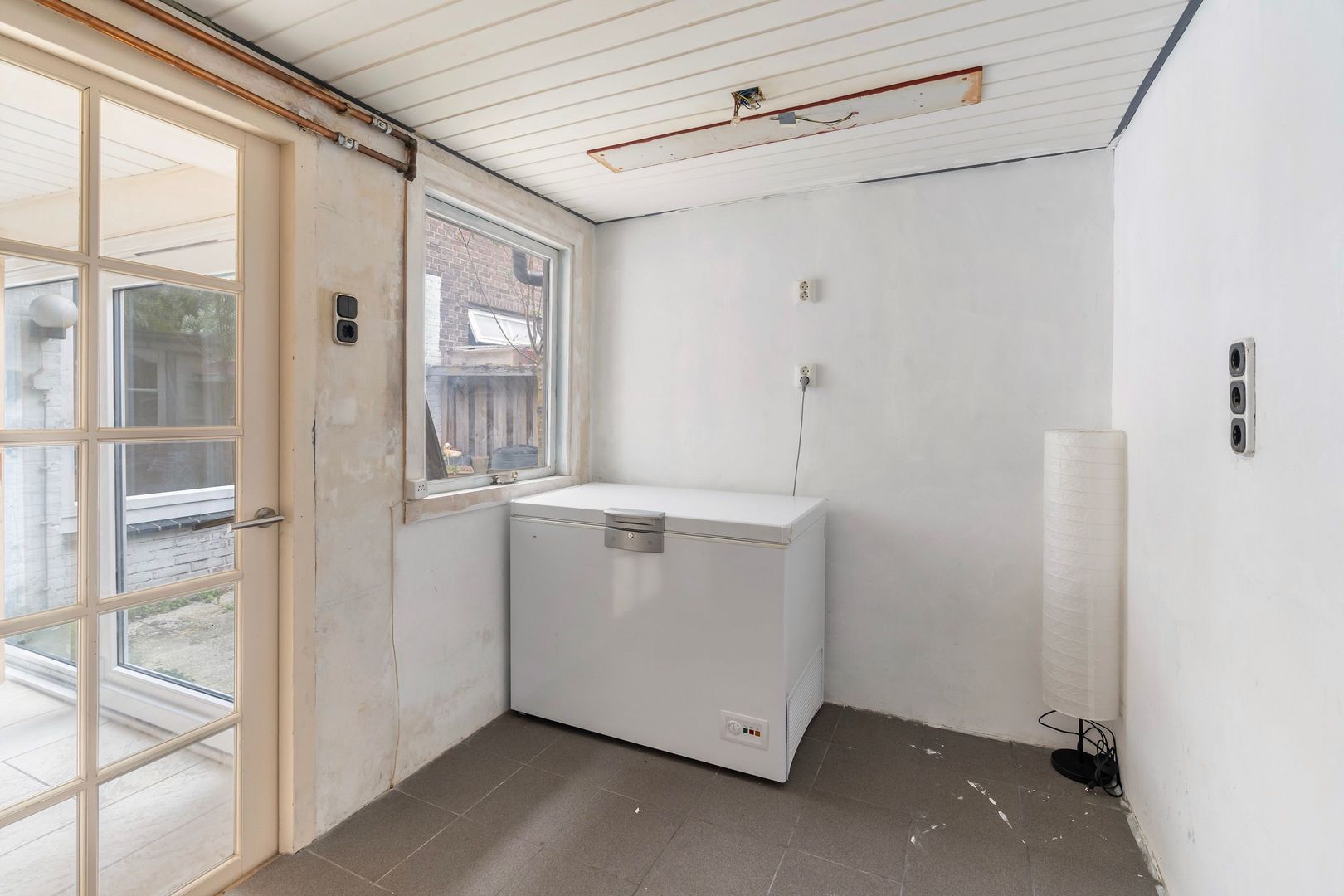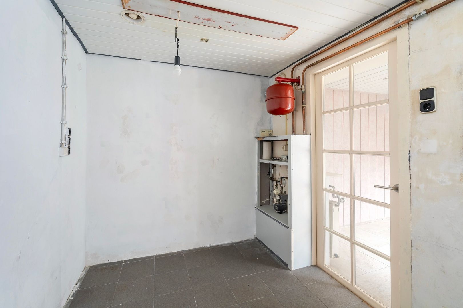 Woningentree aan straatzijde; tochtportaal; gang met toegang tot de badkamer met douche, toilet en wastafel; aan de voorzijde gesitueerde woonkamer; achtergelegen slaapkamer met wastafelmeubel; keuken met diverse apparatuur en met doorloop naar de bijkeuken. Vanuit hier heb je de toegang tot de achtertuin. Eveneens via de bijkeuken toegang tot grote bergkamer met de opstelplaats van de cv ketel. In de tuin staat nog een kleine bergruimte.