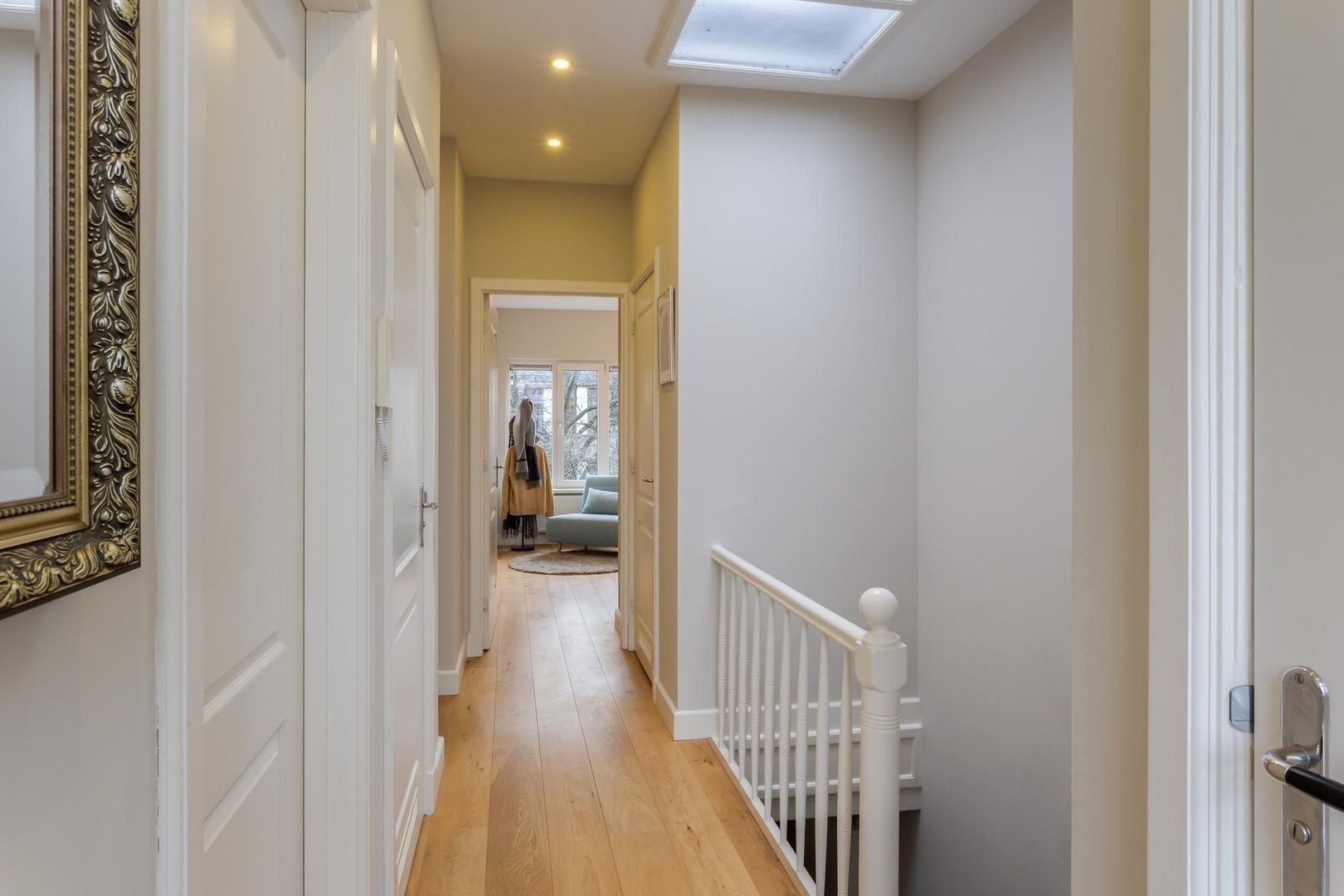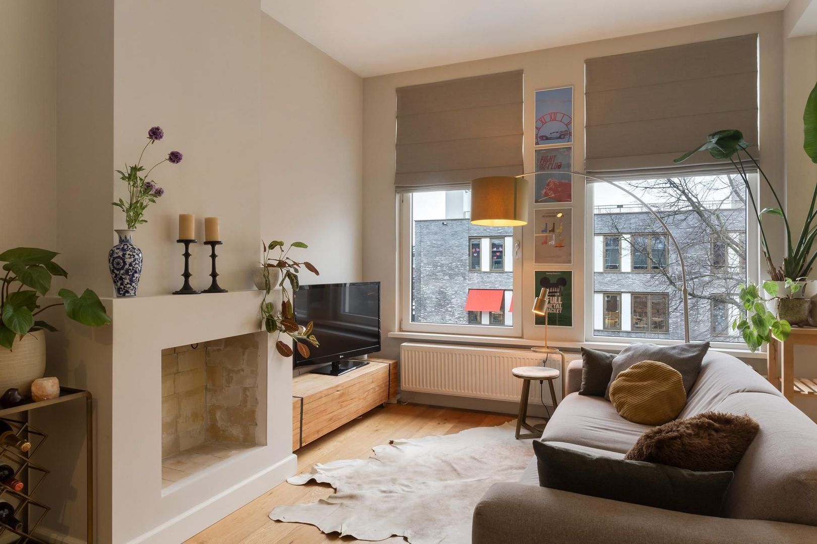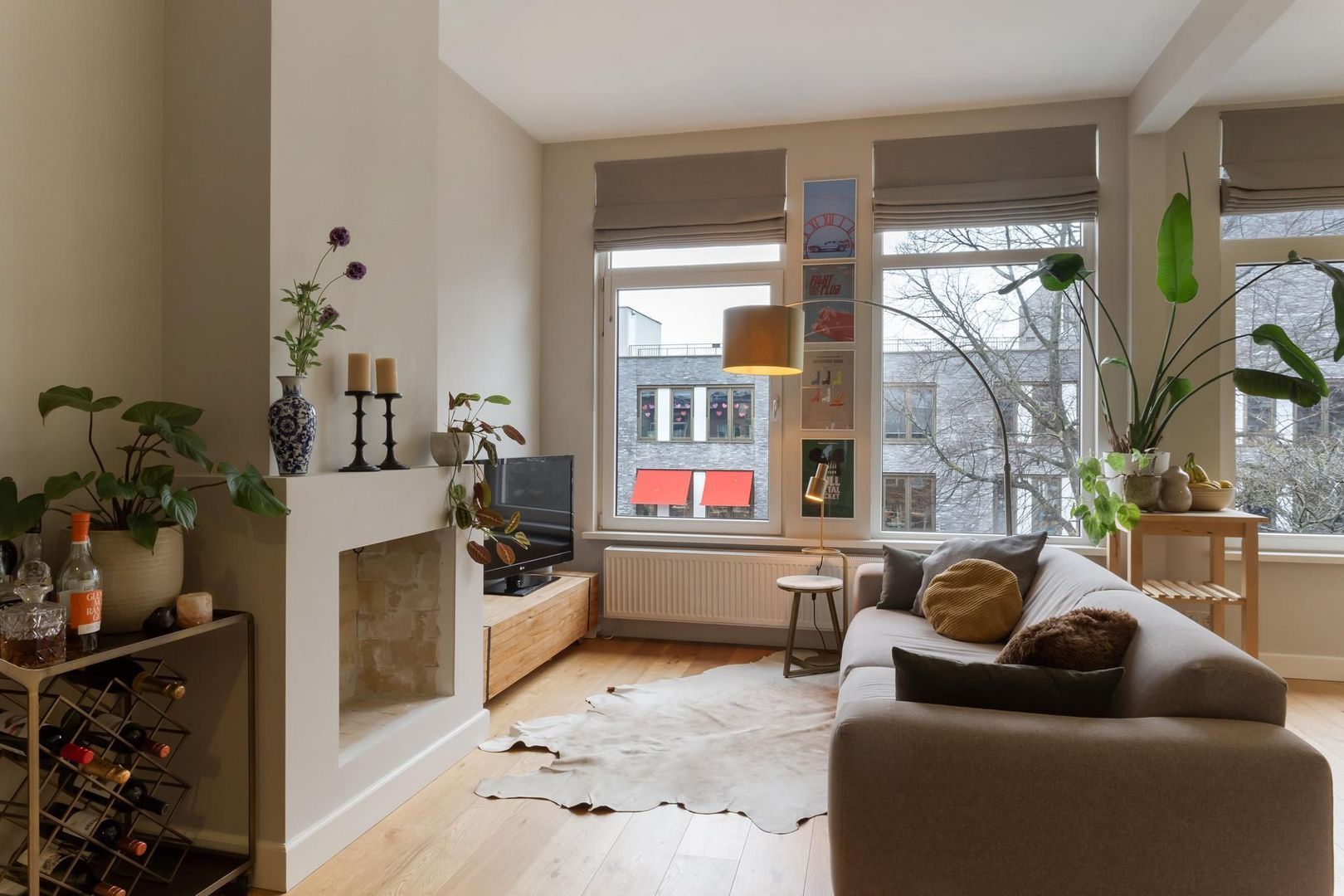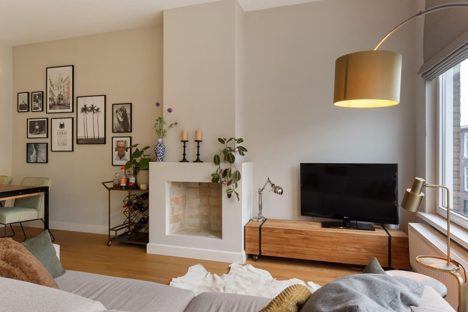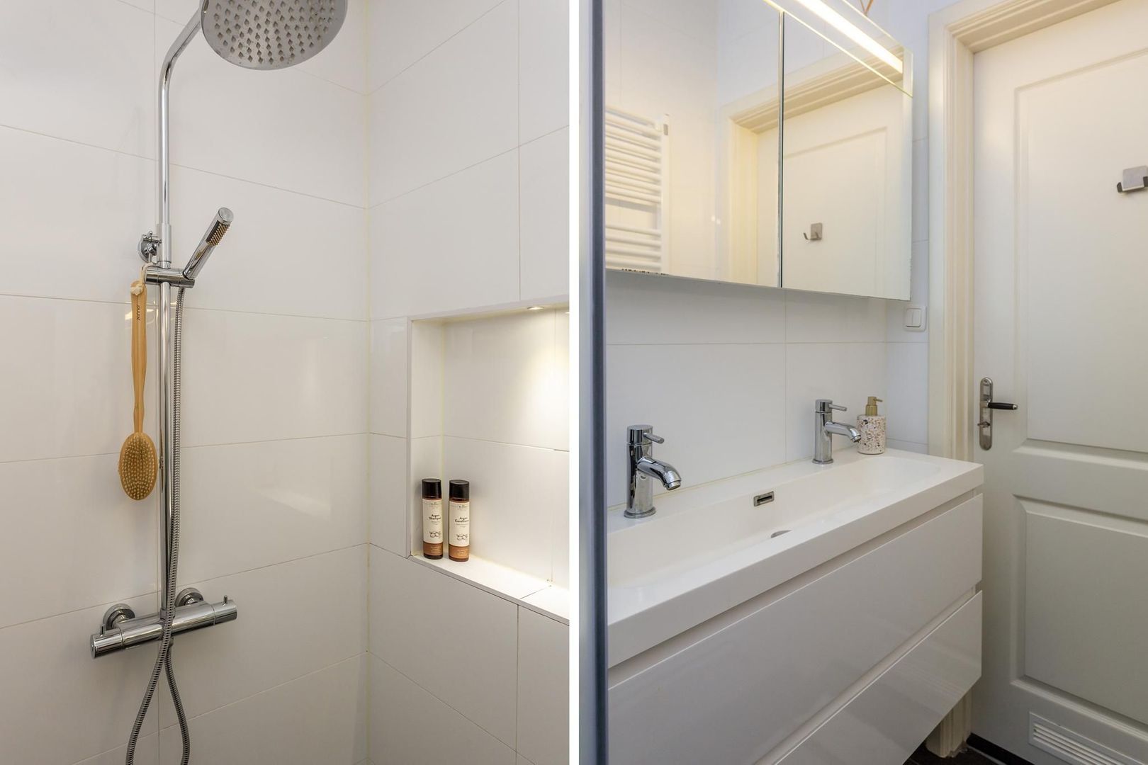 Woningentree via open portiek op de 1e etage; hal met meterkast en binnentrap naar de overloop op de 2e etage; overloop met vaste kast; separaat toilet (wandcloset) en fontein; aparte kast ca. 1.73x0.9 met wasmachine aansluiting en cv-opstelling en opbergruimte; fraaie openslaande deuren naar de riante woonkamer ca. 5.86x5.53 met een sfeervolle schouw en een moderne open keuken welke o.a. is voorzien van met gaskookplaat, afzuigkap, oven, koelkast, vriezer en vaatwasser; 1e slaapkamer aan de voorzijde ca. 2.00x4.41 2e slaapkamer aan de achterzijde ca. 2.06x2.90, 3e slaapkamer aan de achterzijde ca. 4.35x3.30; moderne badkamer ca. 1.19x2.03 met inloopdouche en dubbele wastafelmeubel; vanuit de overloop toegang tot het ruime terras ca.3.00x2.25.