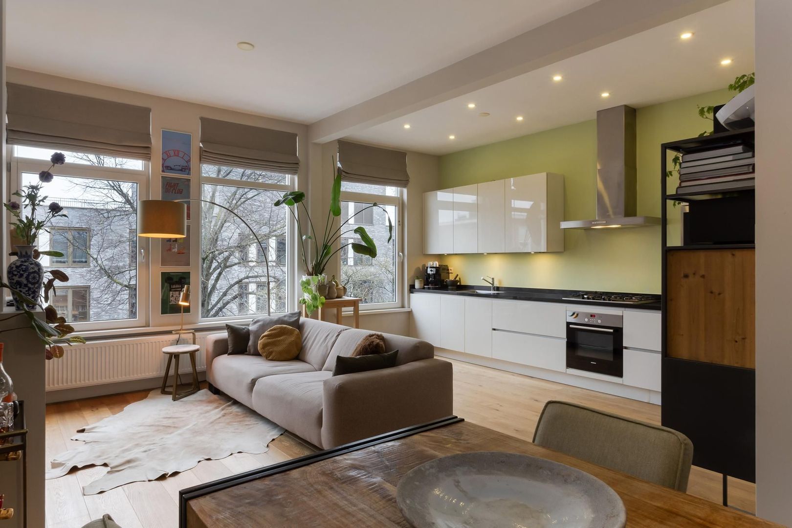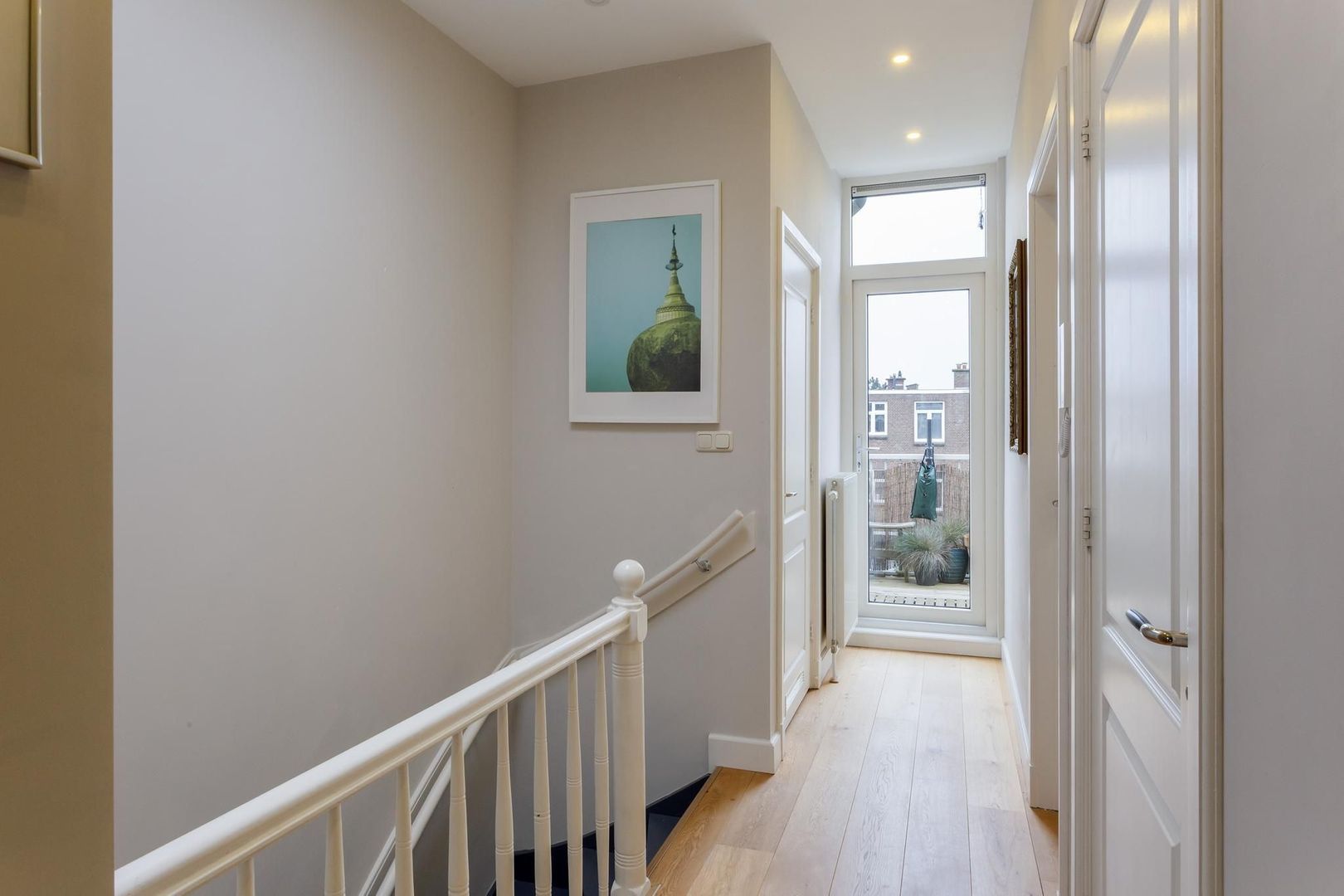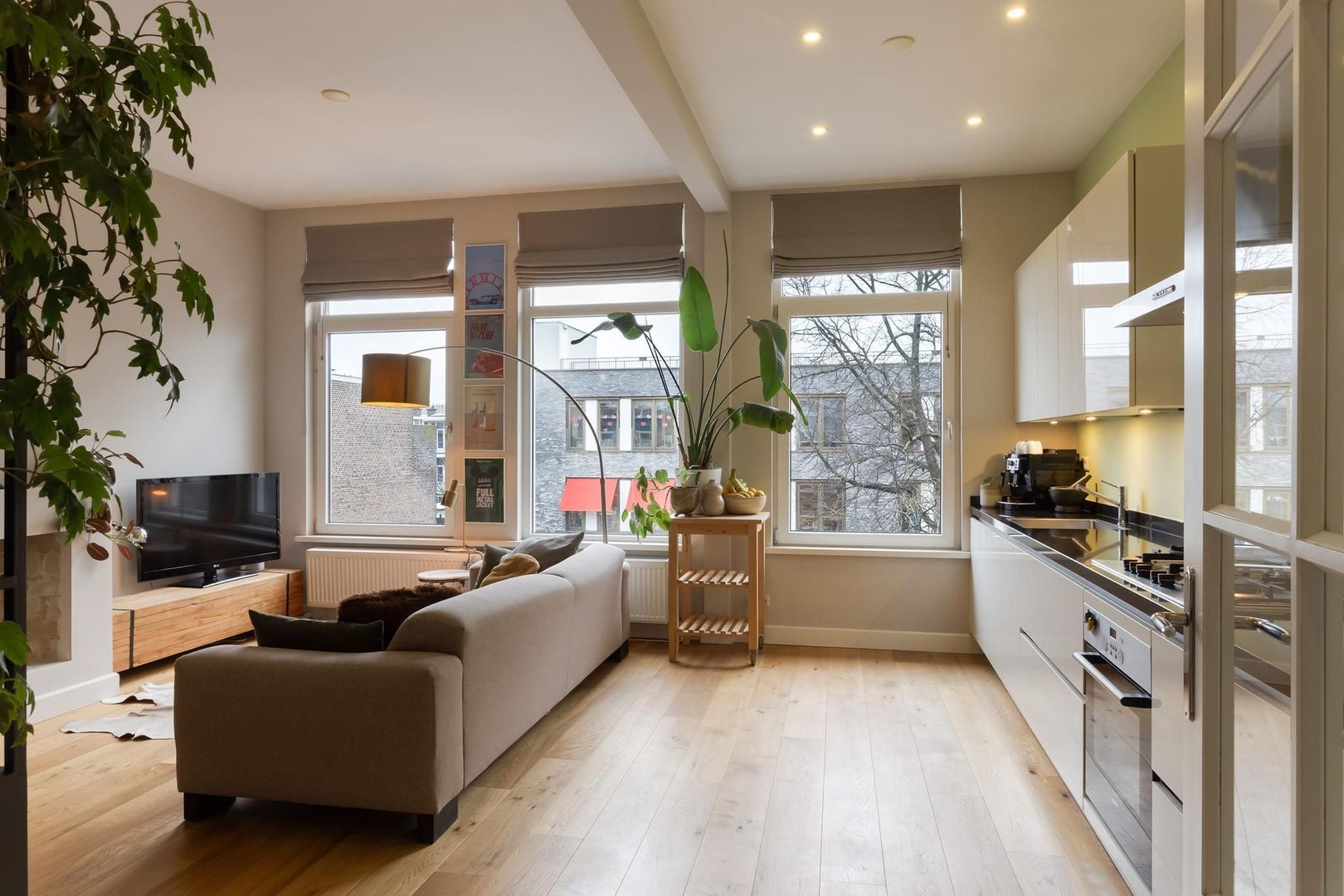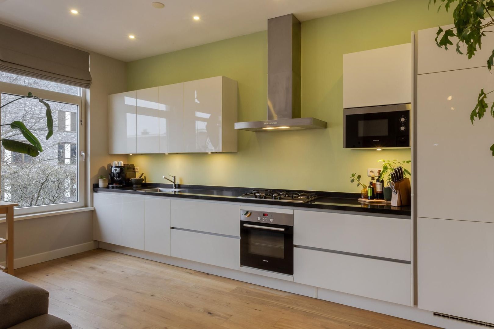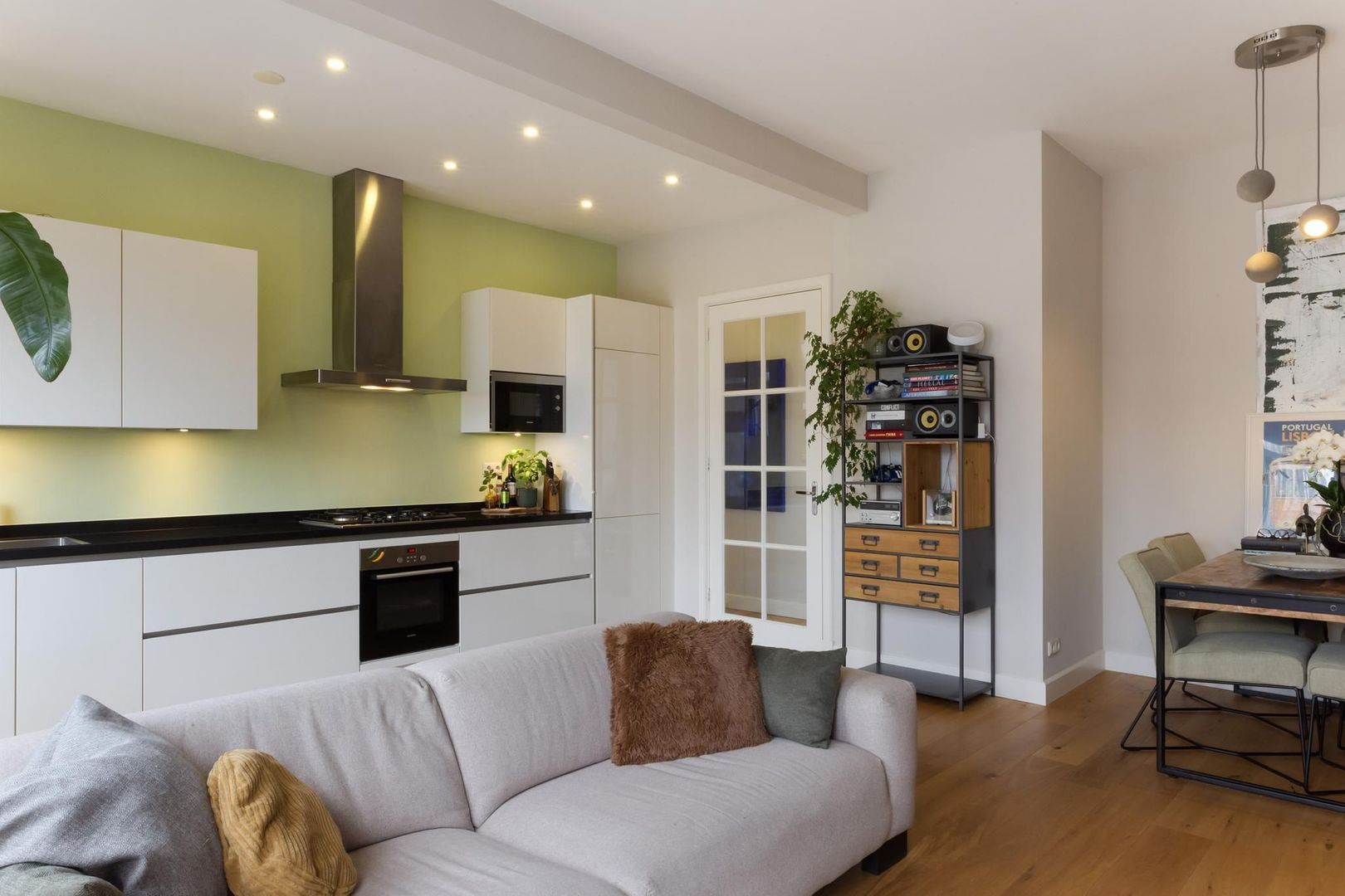 Woningentree via open portiek op de 1e etage; hal met meterkast en binnentrap naar de overloop op de 2e etage; overloop met vaste kast; separaat toilet (wandcloset) en fontein; aparte kast ca. 1.73x0.9 met wasmachine aansluiting en cv-opstelling en opbergruimte; fraaie openslaande deuren naar de riante woonkamer ca. 5.86x5.53 met een sfeervolle schouw en een moderne open keuken welke o.a. is voorzien van met gaskookplaat, afzuigkap, oven, koelkast, vriezer en vaatwasser; 1e slaapkamer aan de voorzijde ca. 2.00x4.41 2e slaapkamer aan de achterzijde ca. 2.06x2.90, 3e slaapkamer aan de achterzijde ca. 4.35x3.30; moderne badkamer ca. 1.19x2.03 met inloopdouche en dubbele wastafelmeubel; vanuit de overloop toegang tot het ruime terras ca.3.00x2.25.