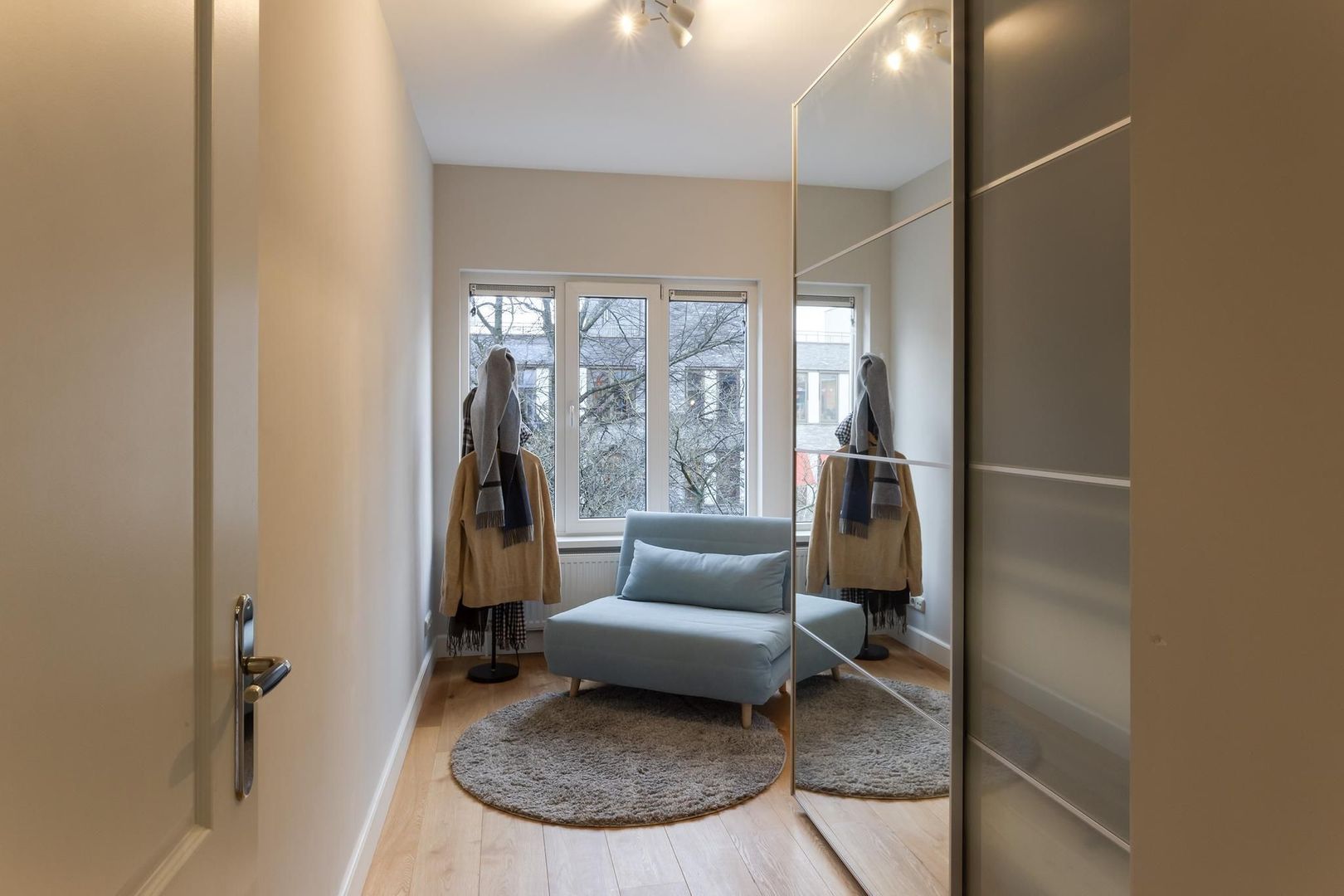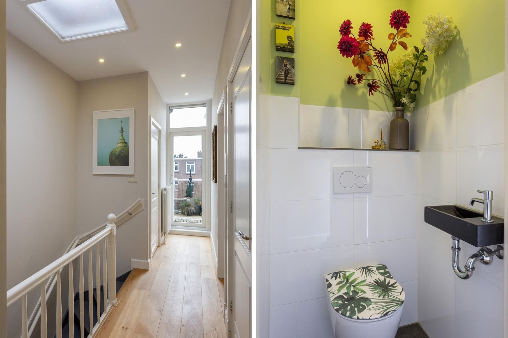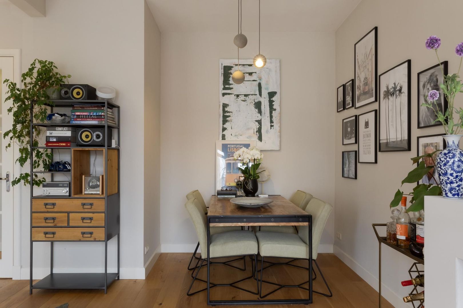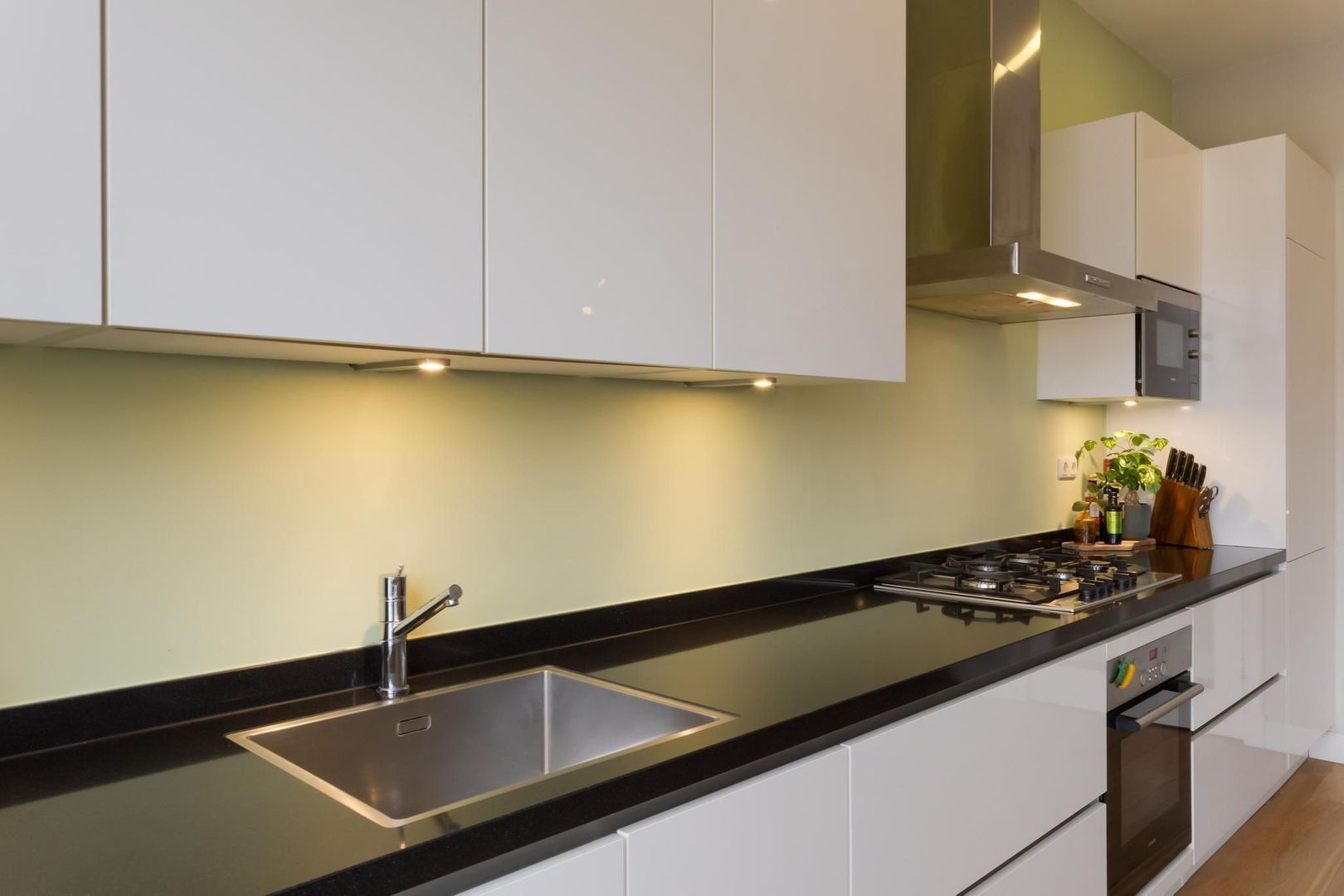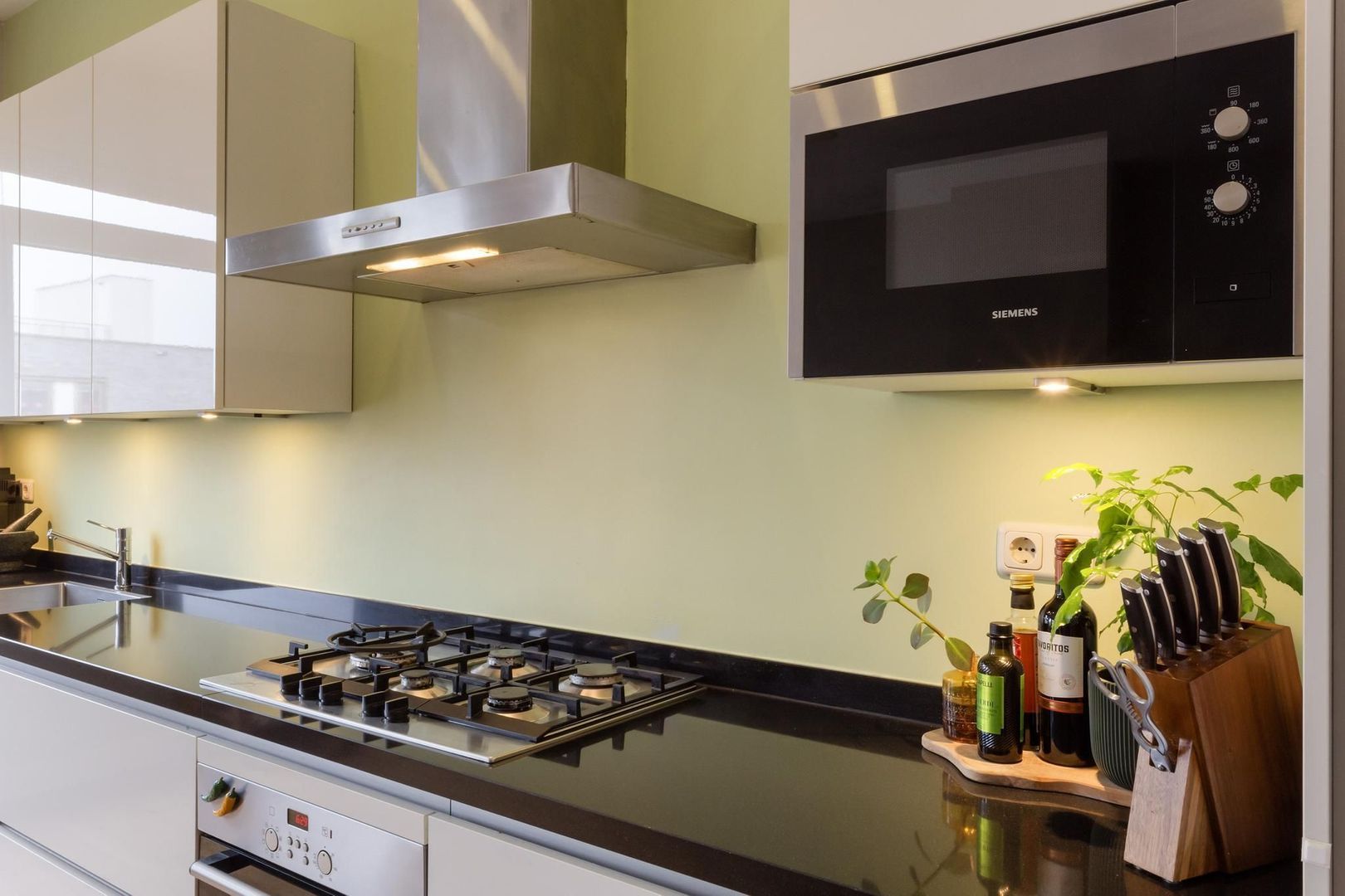 Woningentree via open portiek op de 1e etage; hal met meterkast en binnentrap naar de overloop op de 2e etage; overloop met vaste kast; separaat toilet (wandcloset) en fontein; aparte kast ca. 1.73x0.9 met wasmachine aansluiting en cv-opstelling en opbergruimte; fraaie openslaande deuren naar de riante woonkamer ca. 5.86x5.53 met een sfeervolle schouw en een moderne open keuken welke o.a. is voorzien van met gaskookplaat, afzuigkap, oven, koelkast, vriezer en vaatwasser; 1e slaapkamer aan de voorzijde ca. 2.00x4.41 2e slaapkamer aan de achterzijde ca. 2.06x2.90, 3e slaapkamer aan de achterzijde ca. 4.35x3.30; moderne badkamer ca. 1.19x2.03 met inloopdouche en dubbele wastafelmeubel; vanuit de overloop toegang tot het ruime terras ca.3.00x2.25.