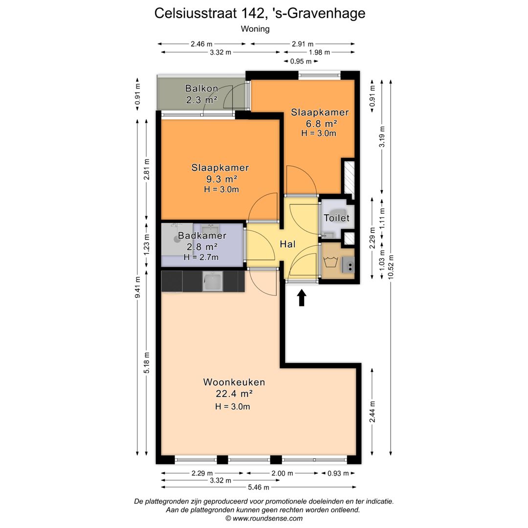 Entree appartement; hal; vaste kast met opstelplaats Cv-ketel; woon-/eetkamer ca. 5.18x5.46 met bijgetrokken voor-zij royale raampartij met uitzicht op de sfeervolle celsiusstraat; open keuken voorzien van een inductiekookplaat , afzuigkap, combi-oven, koelkast, vriezer en vaatwasser; luxe badkamer ca. 2.29x1.23 voorzien van inloopdouche, toilet en wastafelmeubel; eerste slaapkamer aan de achterzijde ca. 3.19x1.98; hoofdslaapkamer ca.2.81x3.32 beide met toegang tot het ruime terras ca. 2.46x0.9