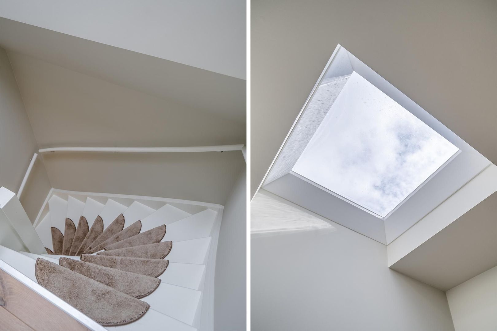 Trap vanaf de overloop naar de overloop naar de kapverdieping; vaste kast ca. 1.13x1.04 met de wasmachine aansluiting en de cv-opstelling; 3e slaapkamer aan de voorzijde ca. 4.20x5.61 met dakkapel; 4e slaapkamer aan de achterzijde ca. 5.616x3.58/2.92 met dakkapel