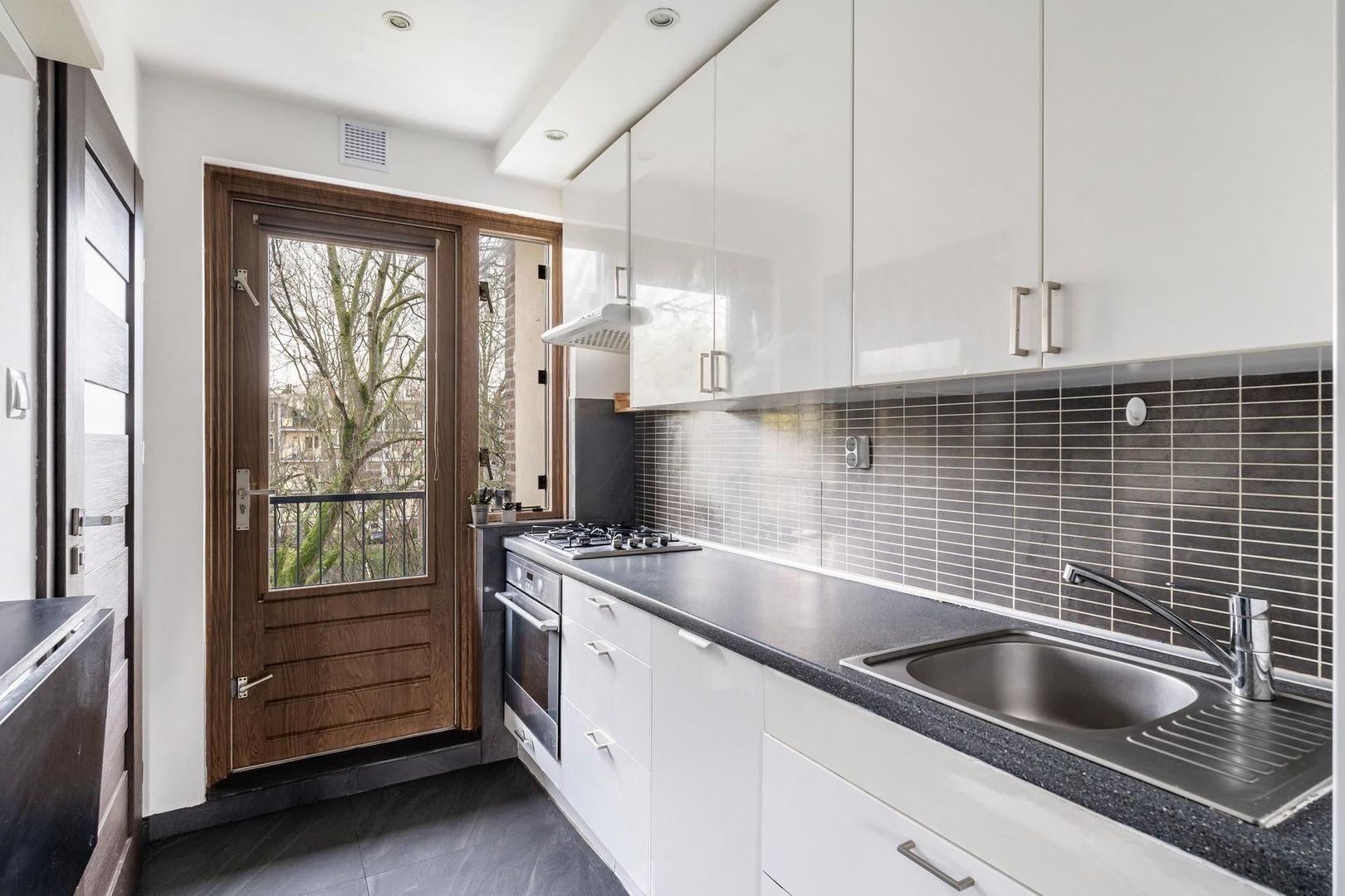 Afgesloten centrale entree met trappenhuis naar de berging en woningentree op de 2e etage; hal; riante woonkamer met toegang tot het balkon aan de voorzijde; nette keuken met gaskookplaat, afzuigkap, oven, koel-vriescombinatie, vaatwasser en toegang tot het balkon achterzijde; 1e slaapkamer aan de voorzijde met toegang tot het balkon; 2e slaapkamer aan de achterzijde; moderne badkamer met ligbad, douche en wastafelmeubel;