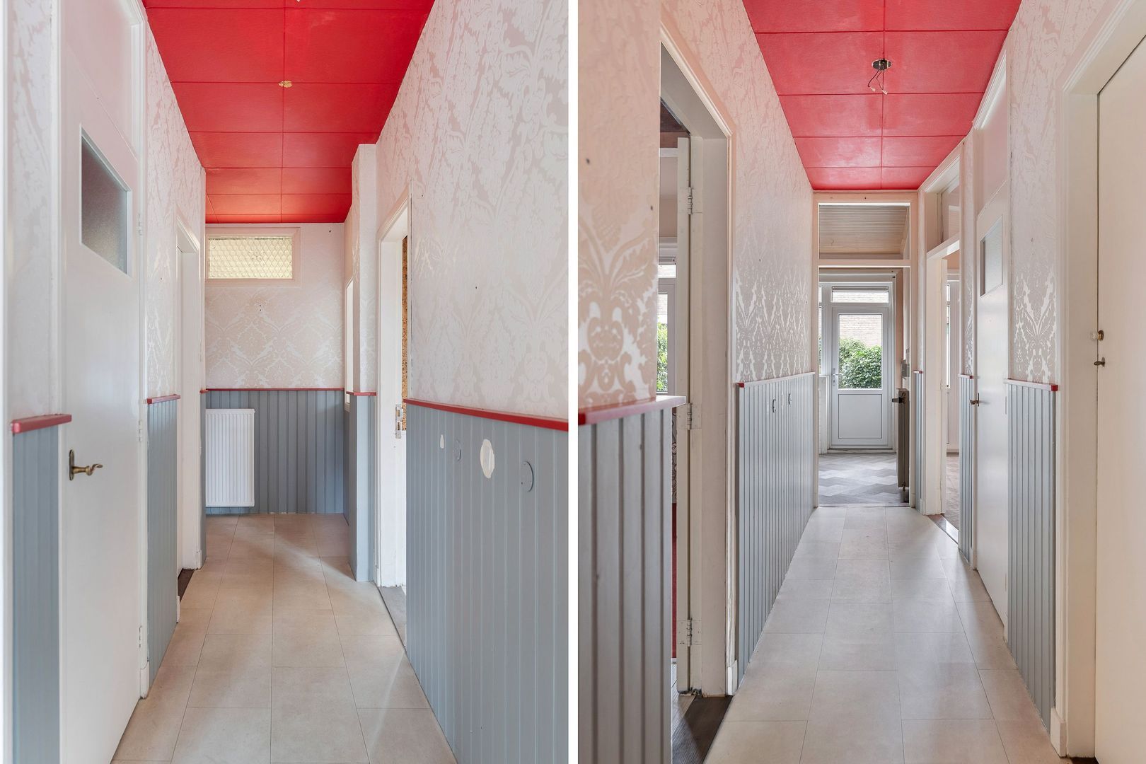 Woningentree; tochtportaal; hal met meterkast; grote kast met de wasmachine aansluiting; net toilet; royale woonkamer met bijgetrokken voorzijkamer, grote vaste kast en openslaande deuren naar de achtertuin; eenvoudige keuken met toegang tot de achtertuin; slaapkamer aan de achterzijde met openslaande deuren naar de achtertuin en toegang tot de eenvoudige badkamer; riante achtertuin met een vrijstaande stenen berging;