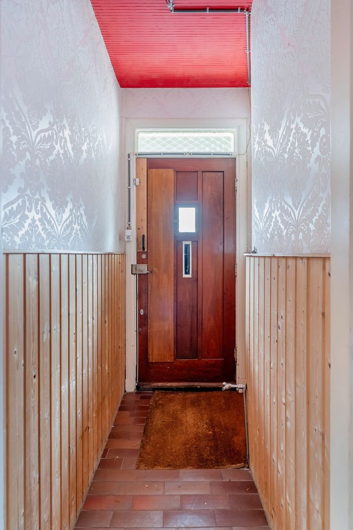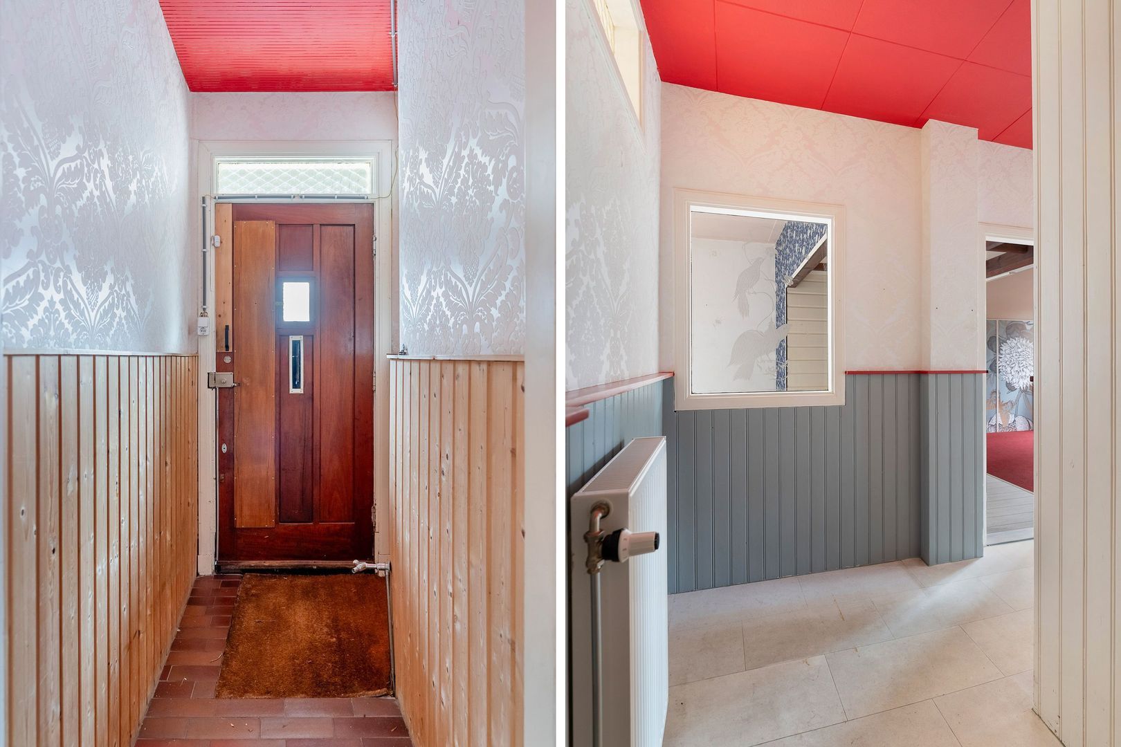 - Voorzijde voorzien van houten kozijnen met enkel glas