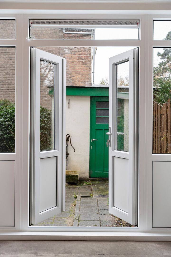 - Achterzijde voorzien van kunststof kozijnen met dubbel glas