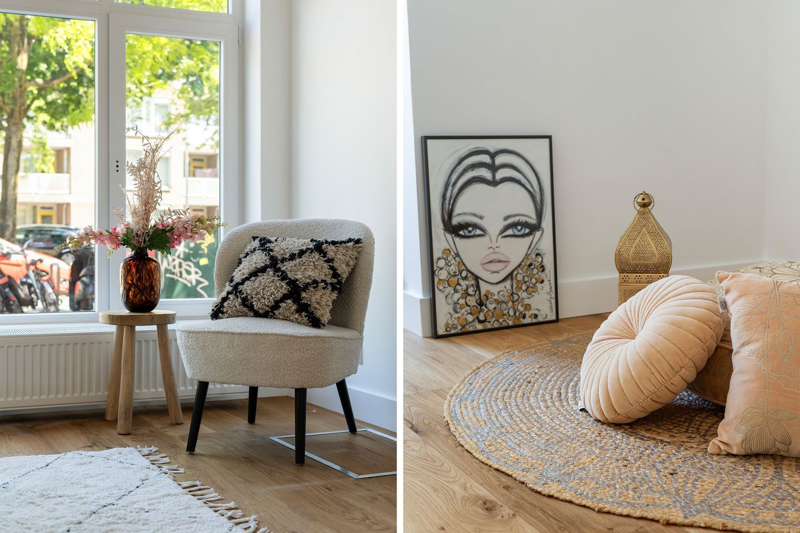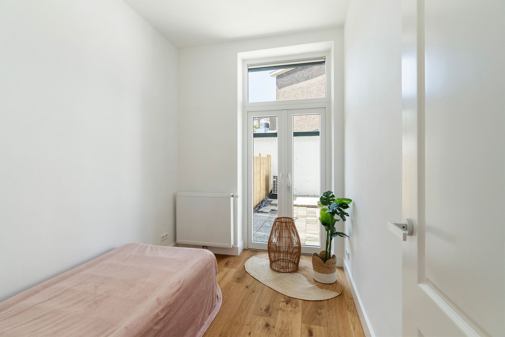 Woningentree; royale woonkamer met veel lichtinval; moderne keuken met een fraai werkblad, inductie kookplaat, afzuigkap, koelkast, vriezer, vaatwasser en toegang tot de achtertuin; 1e slaapkamer aan de voorzijde; ruime 2e slaapkamer aan de achterzijde met openslaande deuren naar de achtertuin; 3e slaapkamer aan de achterzijde met openslaande deuren naar de achtertuin; moderne badkamer met een inloopdouche, wastafelmeubel en toilet (wandcloset); vaste kast met de cv-opstelling en aansluiting van de wasmachine aansluiting;