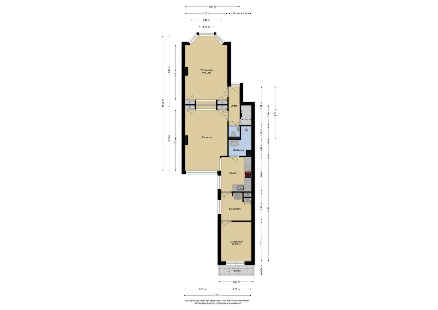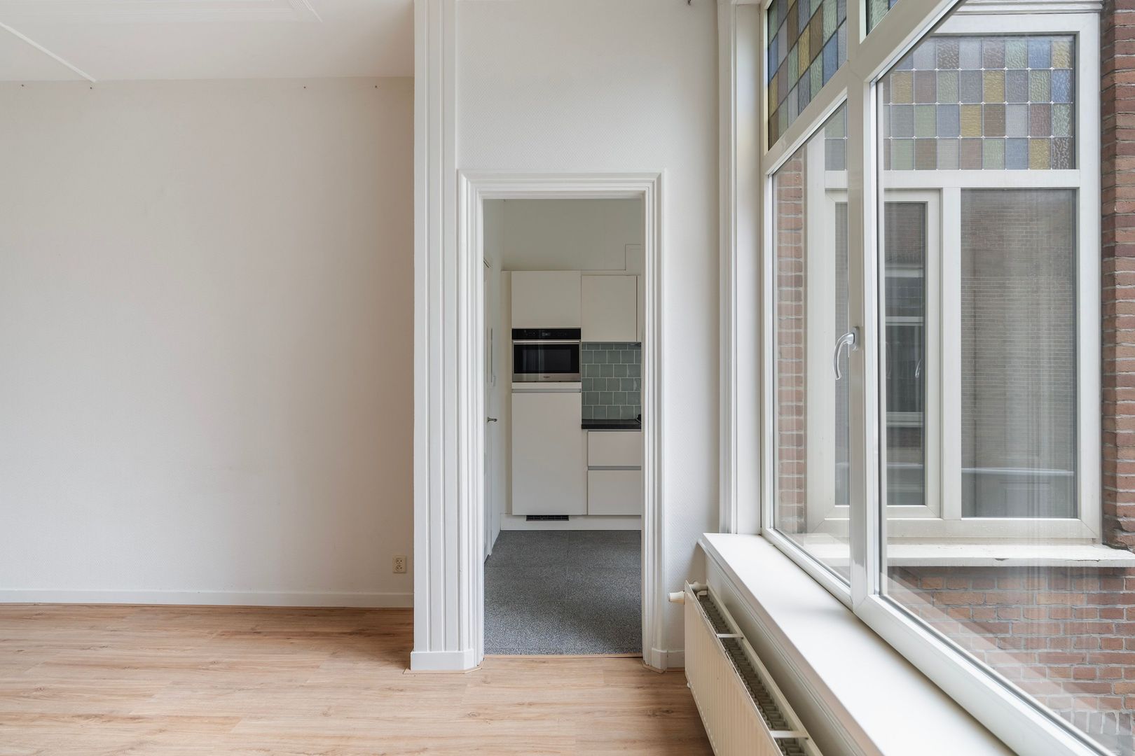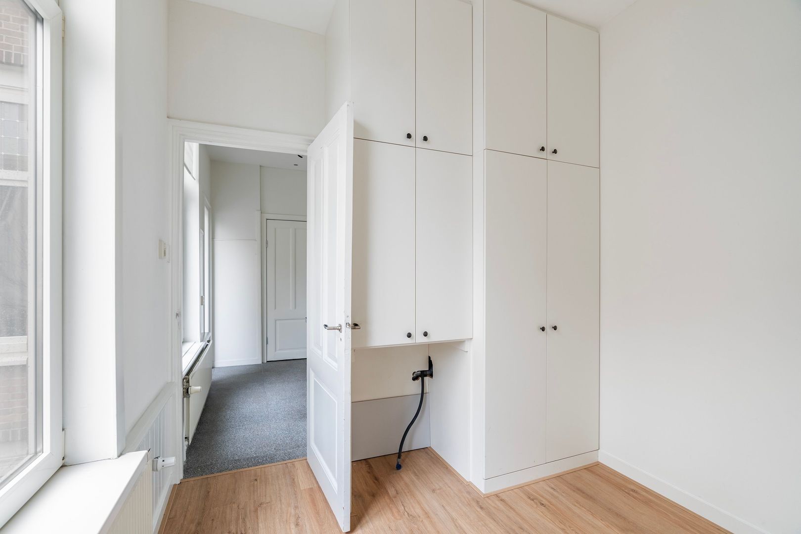 Entree via bordes op de 1e etage, gang met bergruimte en toilet; woonkamer ensuite totaal ca. 11.96x3.76/3.06 verdeeld in lichte voorkamer ca. 6/05x3.76 inclusief een sfeervolle erker, suite kasten, schouw, geornamenteerd plafond en schuifseparatie naar de achterkamer ca. 5.40x3.76/3.06 met suite kasten, schouw, geornamenteerd plafond. Via de achterkamer toegang tot de in 2022 vernieuwde keuken ca. 3.71x2.71 met keukenblok in L-vorm opstelling en ingebouwde kookplaat, afzuigkap, combi-oven, koel-vries combinatie en vaatwasser. Via keuken toegang tot de moderne badkamer met inloopdouche en wastafelmeubel. Via keuken toegang tot achterhuis met 2 in elkaar doorlopende slaapkamers. Slaapkamer I ca. 2.51x2.73 met vaste kast met opstelplaats cv-ketel en toegang tot de achterslaapkamer II ca. 3.49x2.71 met toegang tot het balkon op het zuidoosten.