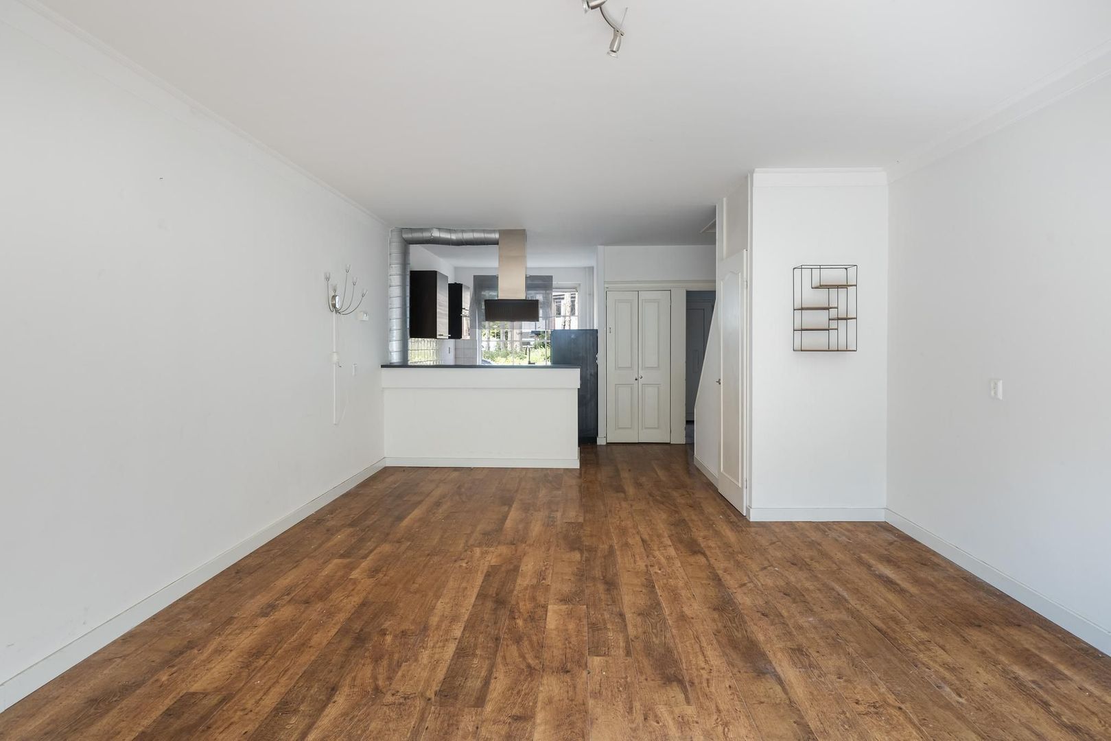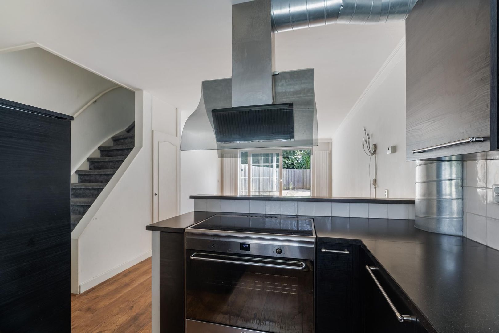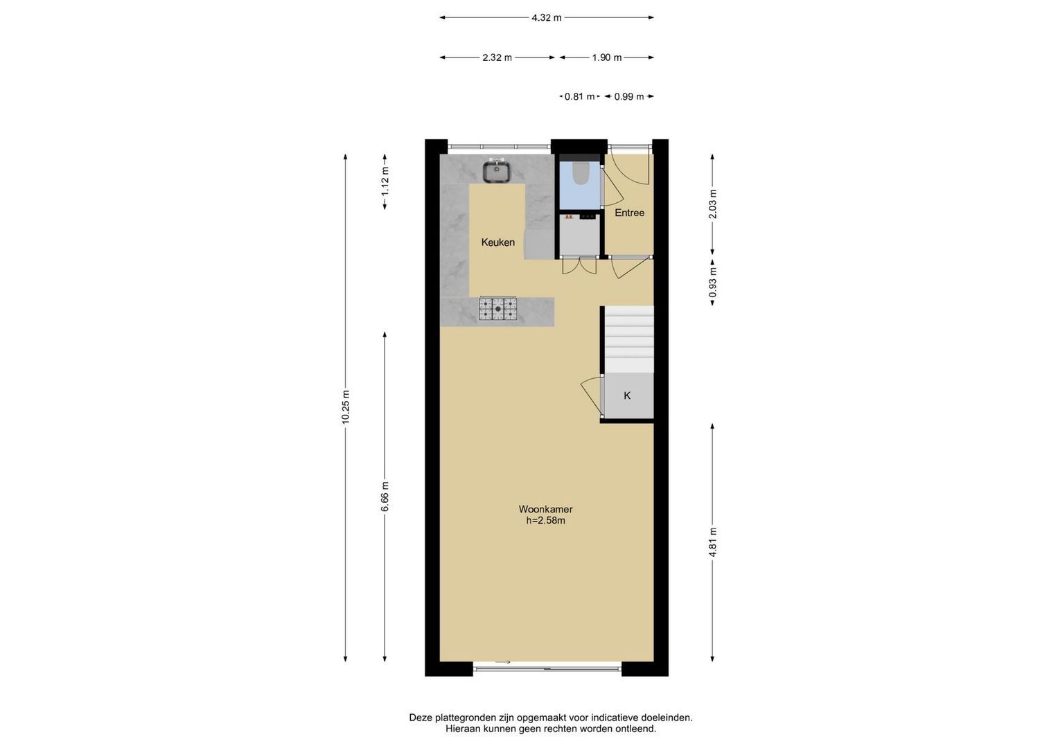 Begane grond: Entree; tochtportaal; modern toilet; woonkamer ca. 10.25x4.32/2.32 met schuifpui naar de achtertuin en een moderne open keuken in U opstelling voorzien van een 4-pits inductie kookplaat met oven, afzuigkap, koelkast, vriezer, vaatwasser en magnetron; Achtertuin is ruim 12 meter diep en voorzien van een schuur en achterom;