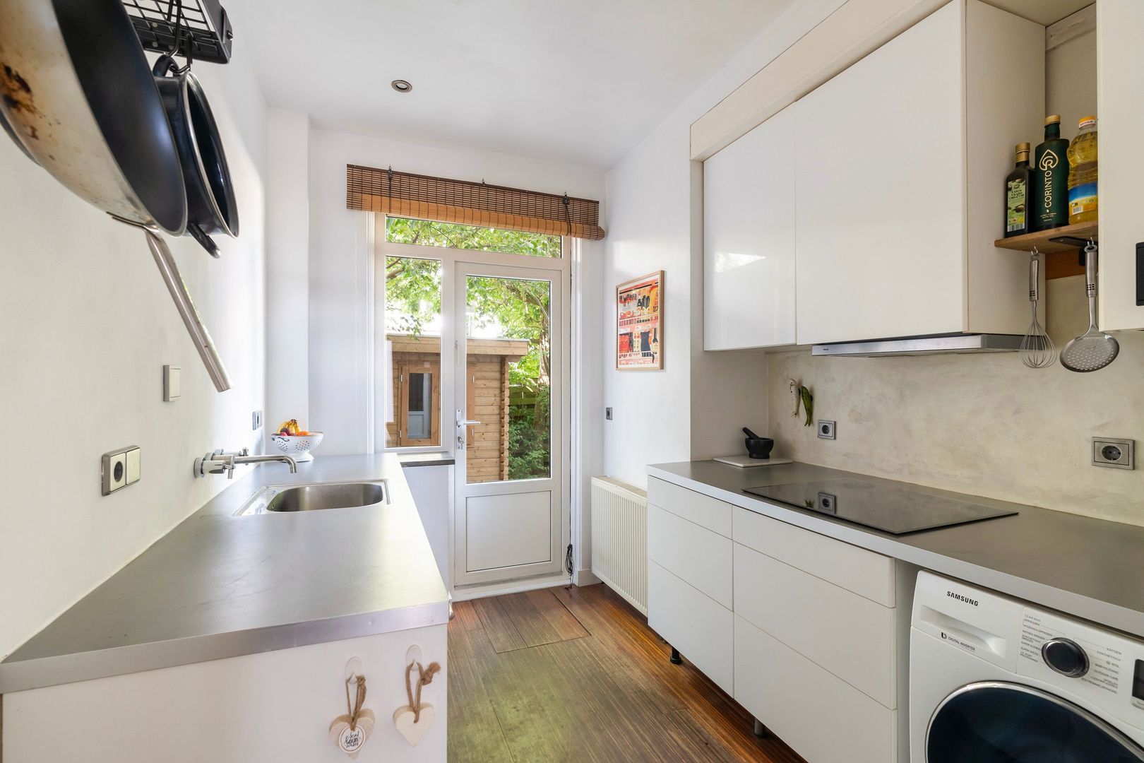 Portiekwoning gelegen op de begane grond; voortuin; entree woning; hal met meterkast; woon- eetkamer met openslaande deuren naar de achtertuin; separaat toilet; badkamer met douche en wastafel; aparte keuken met inbouwapparatuur, zoals 4-pits inductiekookplaat, afzuigkap en koel-vries combinatie; slaapkamer aan de voorzijde (3.62 x 2.10); slaapkamer II aan de achterzijde (4.26 x 2.50); achtertuin vanuit woonkamer, slaapkamer en keuken bereikbaar en voorzien van keurig net tuinhuisje.