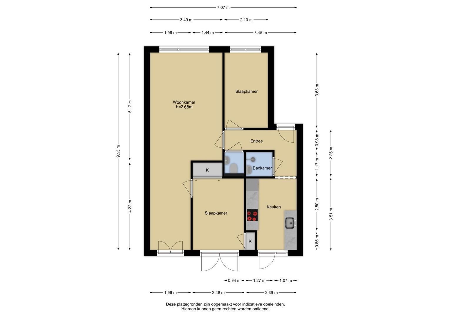 Deze informatie is door ons met de nodige zorgvuldigheid samengesteld. Onzerzijds wordt echter geen enkele aansprakelijkheid aanvaard voor enige onvolledigheid, onjuistheid of anderszins, dan wel de gevolgen daarvan. Alle opgegeven maten en oppervlakten zijn indicatief.