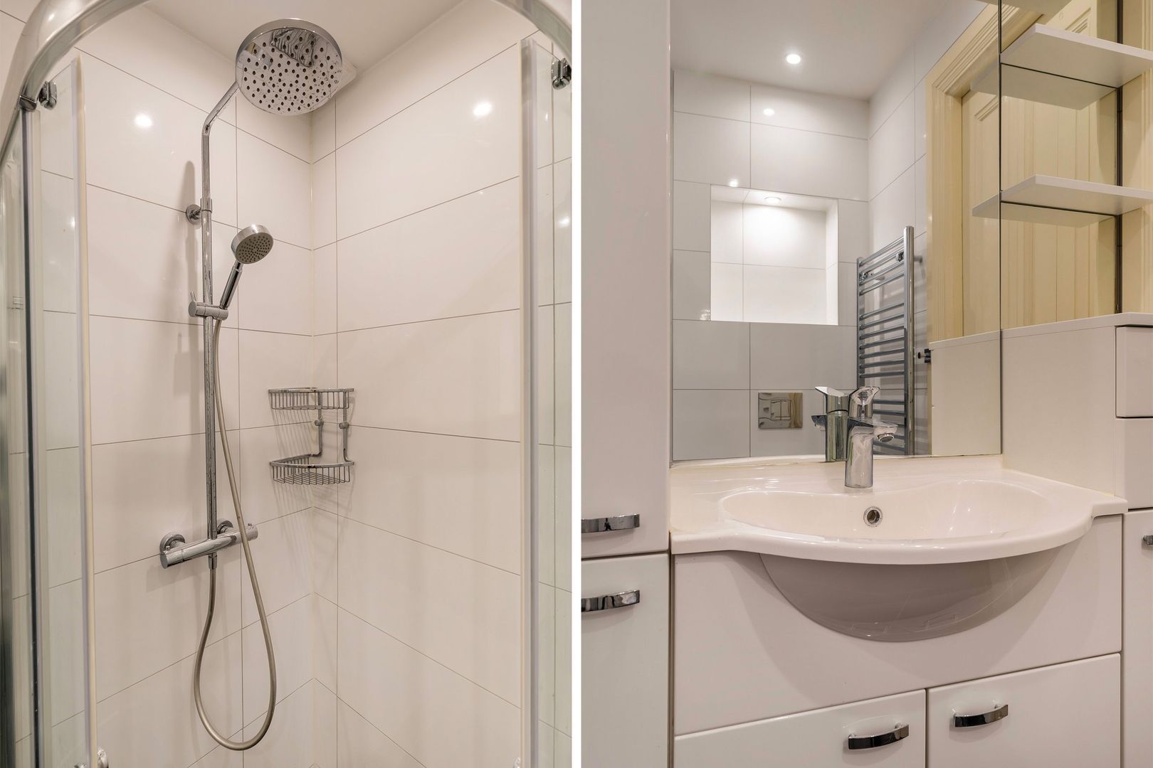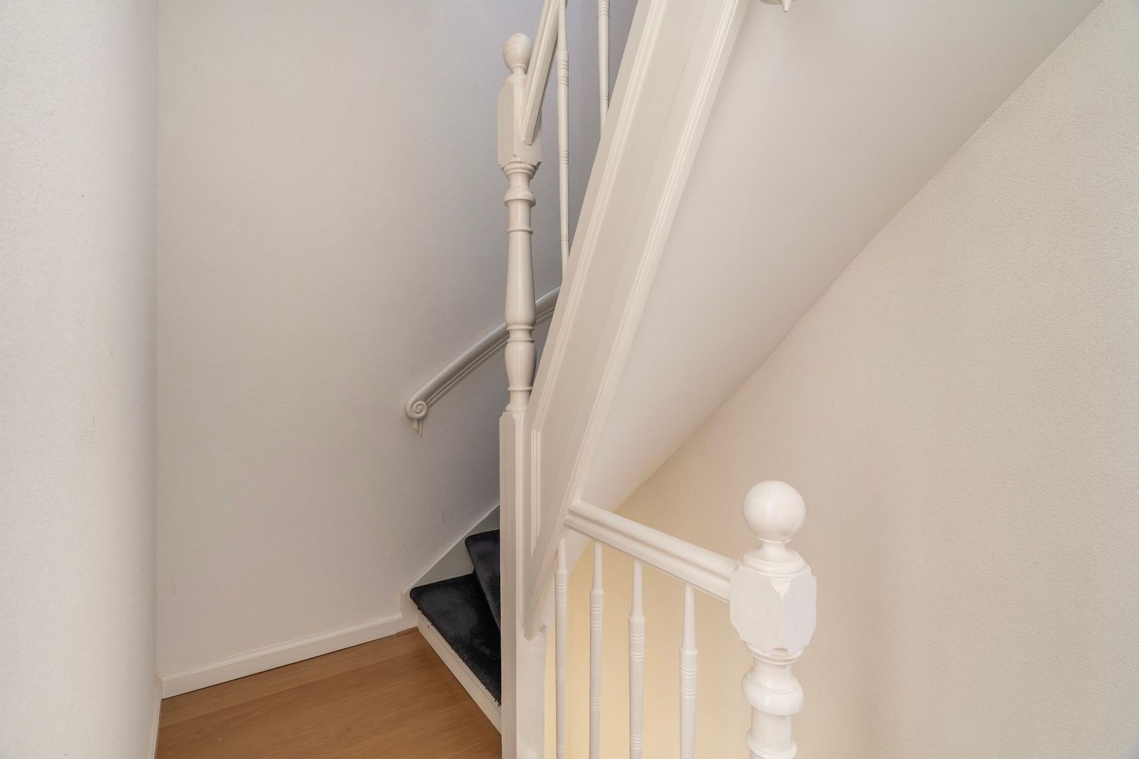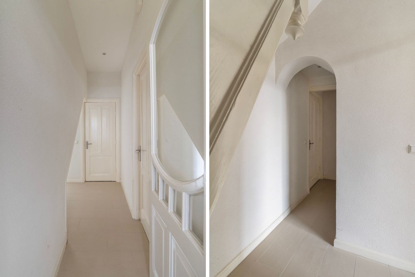 Entree woning; tochtportaal; gang; riante doorgebroken woonkamer met L-vormige moderne open keuken met nieuwe inbouw apparatuur; 5 pits gaskookplaat, nieuwe oven, afzuigkap, magnetron, koelkast, nieuwe vriezer en een vaatwasser. Vanuit de achterkamer een schuifpui naar de achtertuin; achtertuin met achterom gelegen op het noorden. Geheel betegelde badkamer met douche, toilet, wastafelmeubel en wasmachineaansluiting; slaapkamer aan de voorzijde; via de gang trap naar de 1e etage: overloop, 2e slaapkamer aan de voorzijde met een wastafel. Via de overloop trap naar bovenverdieping; overloop met daklicht en vaste kast met opstelplaats Cv-ketel; 3e slaapkamer aan de voorzijde.