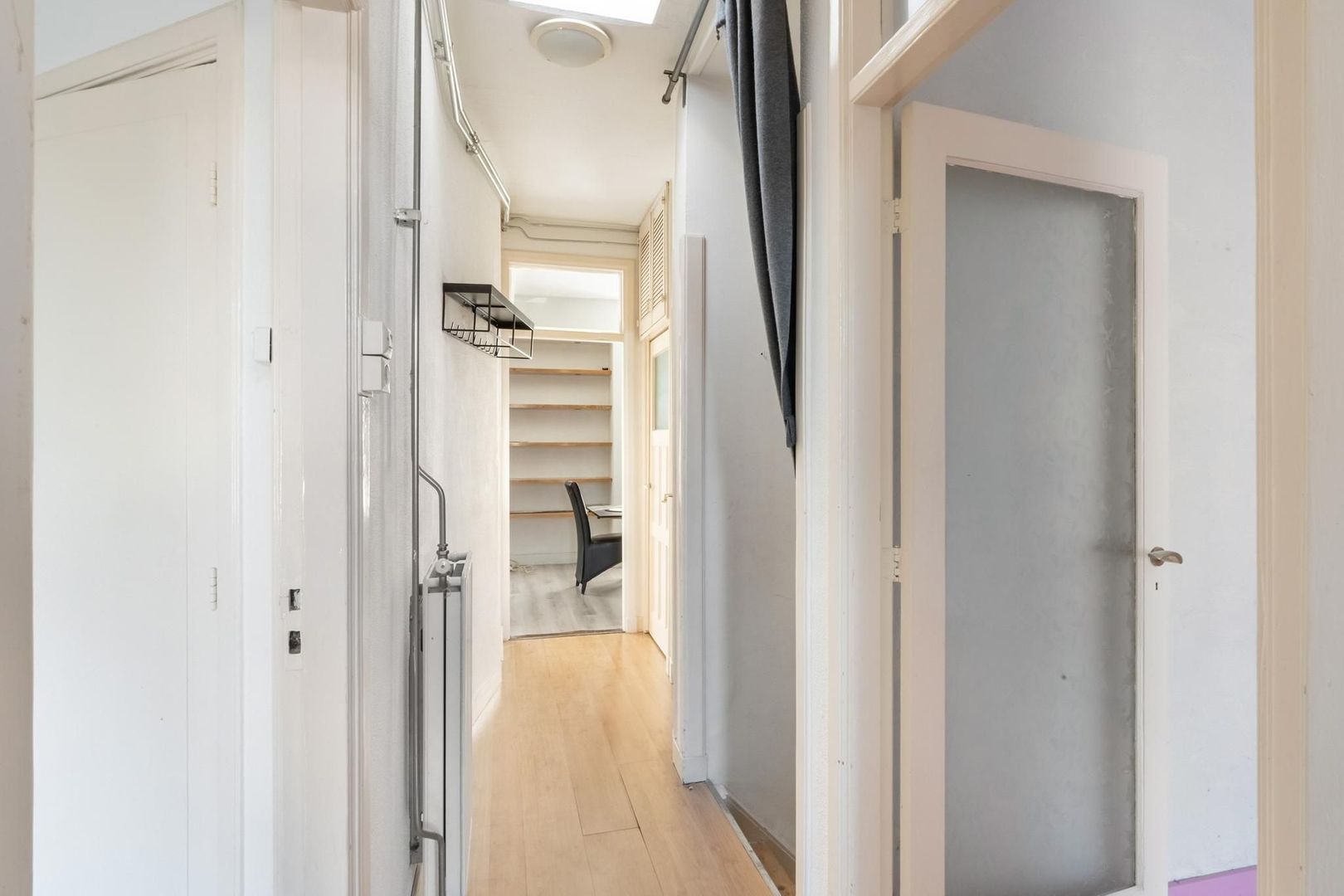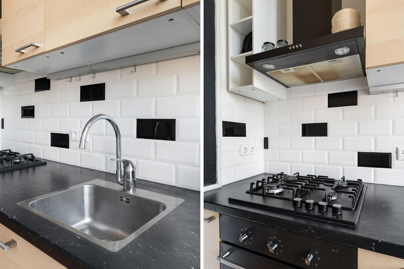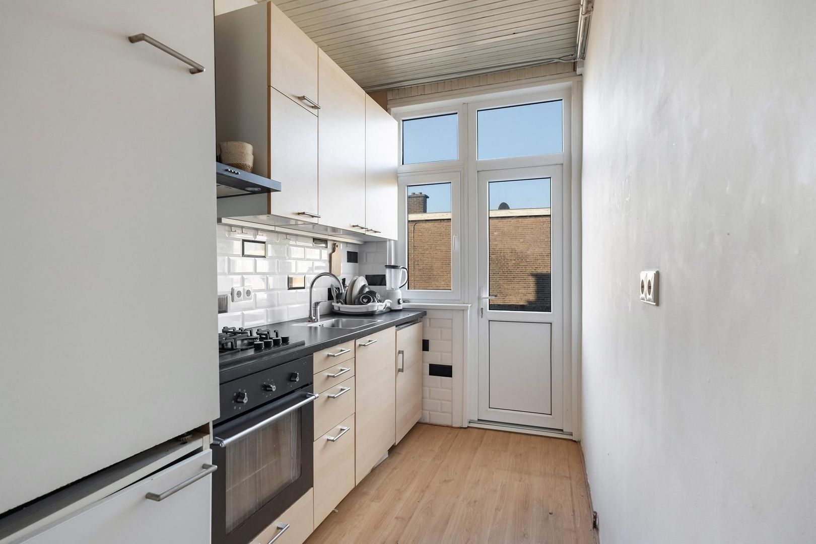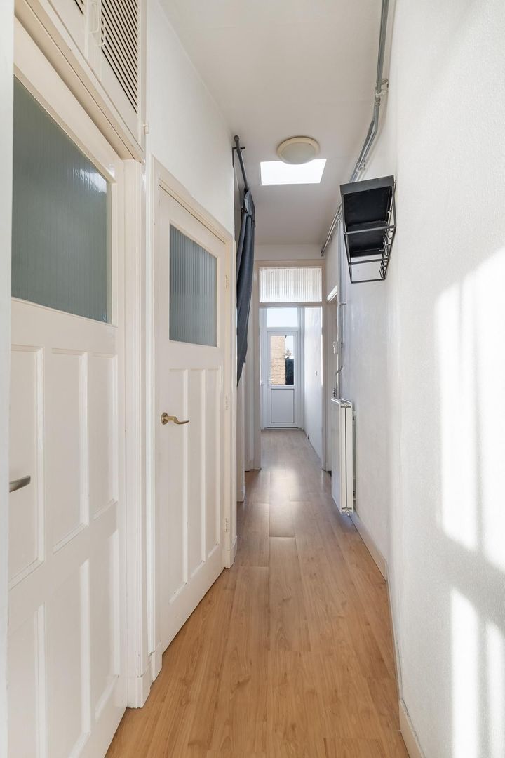 Woningentree via open portiek; gang met een diepe bergkast; woonkamer 6.00x3.48; nette keuken ca. 2.99x2.35 met een 5-pits gasfonuis met oven, afzuigkap, koel-vriescombinatie en toegang tot het balkon; 1e slaapkamer aan de voorzijde ca. 2.64x2.48; 2e slaapkamer aan de achterzijde ca. 4.44x3.34; riante nette badkamer ca. 4.00x1.97 met douche, ligbad, wastafel en wasmachine aansluiting; net separaat toilet;