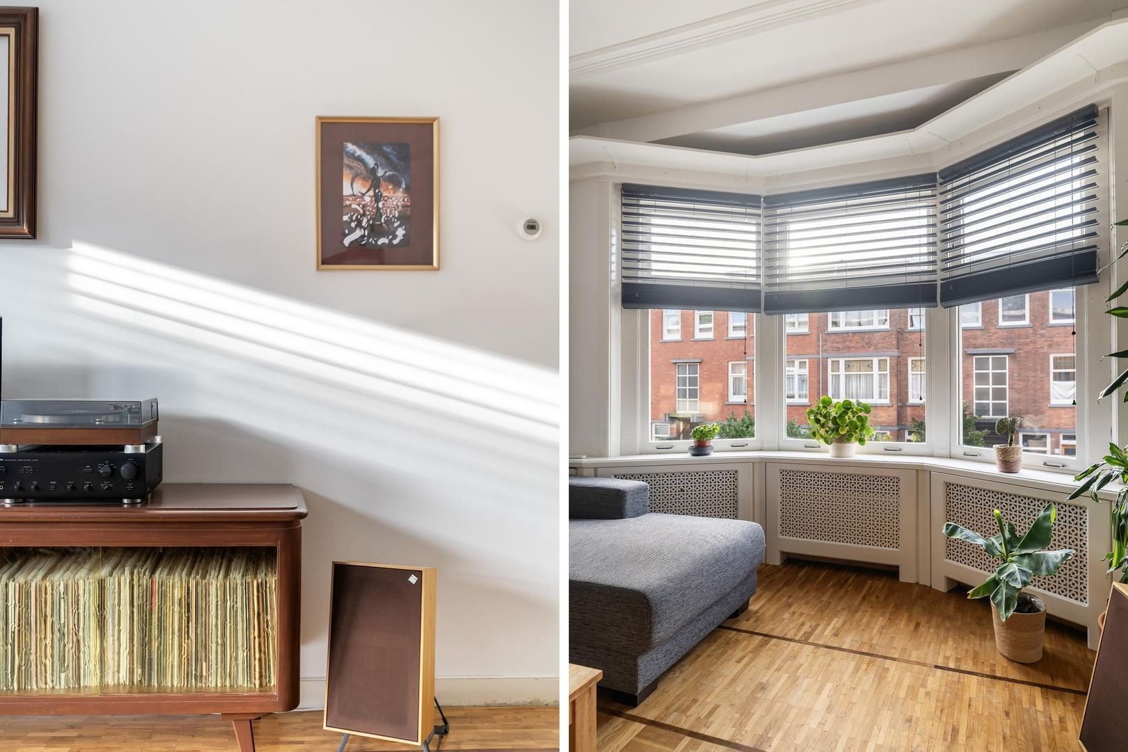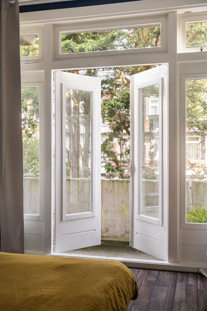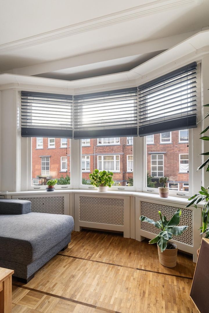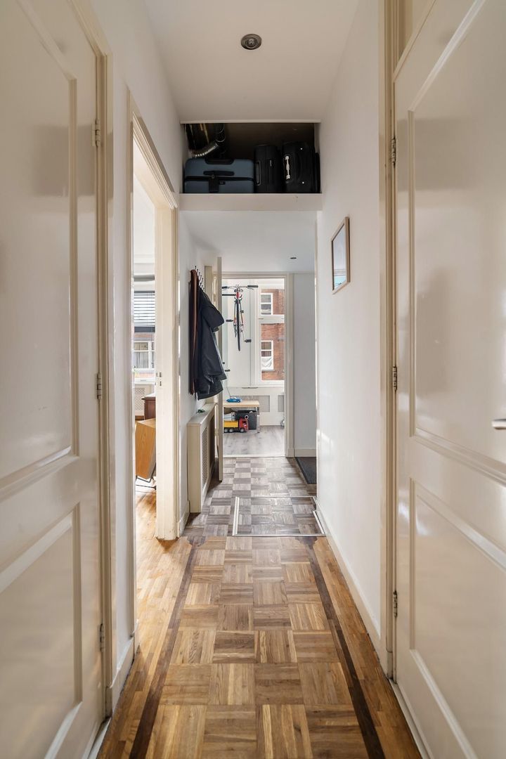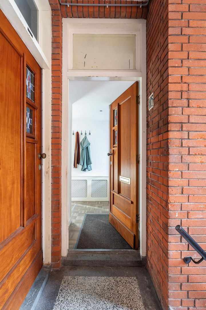 Open portiek met trap naar de 1e etage: entree woning: hal; gang is voorzien van meerdere opbergruimtes; verzorgd toilet; lichte woonkamer met sfeervolle erker. Tussengelegen ruimte van ca. 8 m² is vrij te besteden als inloopkast of kantoorruimte; nette keuken met gaskookplaat, afzuigkap, oven, koelkast, opstelplaats Cv-ketel en toegang tot het achterbalkon; via de tussenruimte toegang tot de 1e ruime slaapkamer aan de achterzijde met openslaande deuren naar het achterbalkon; de 2e slaapkamer is eveneens aan de achterzijde gesitueerd met openslaande deuren naar het achterbalkon. Een derde slaapkamer treft u aan de voorzijde; badkamer met ligbad met wastafel; aparte ruimte in gang bestemd voor opstelplaats wasmachine en droger.