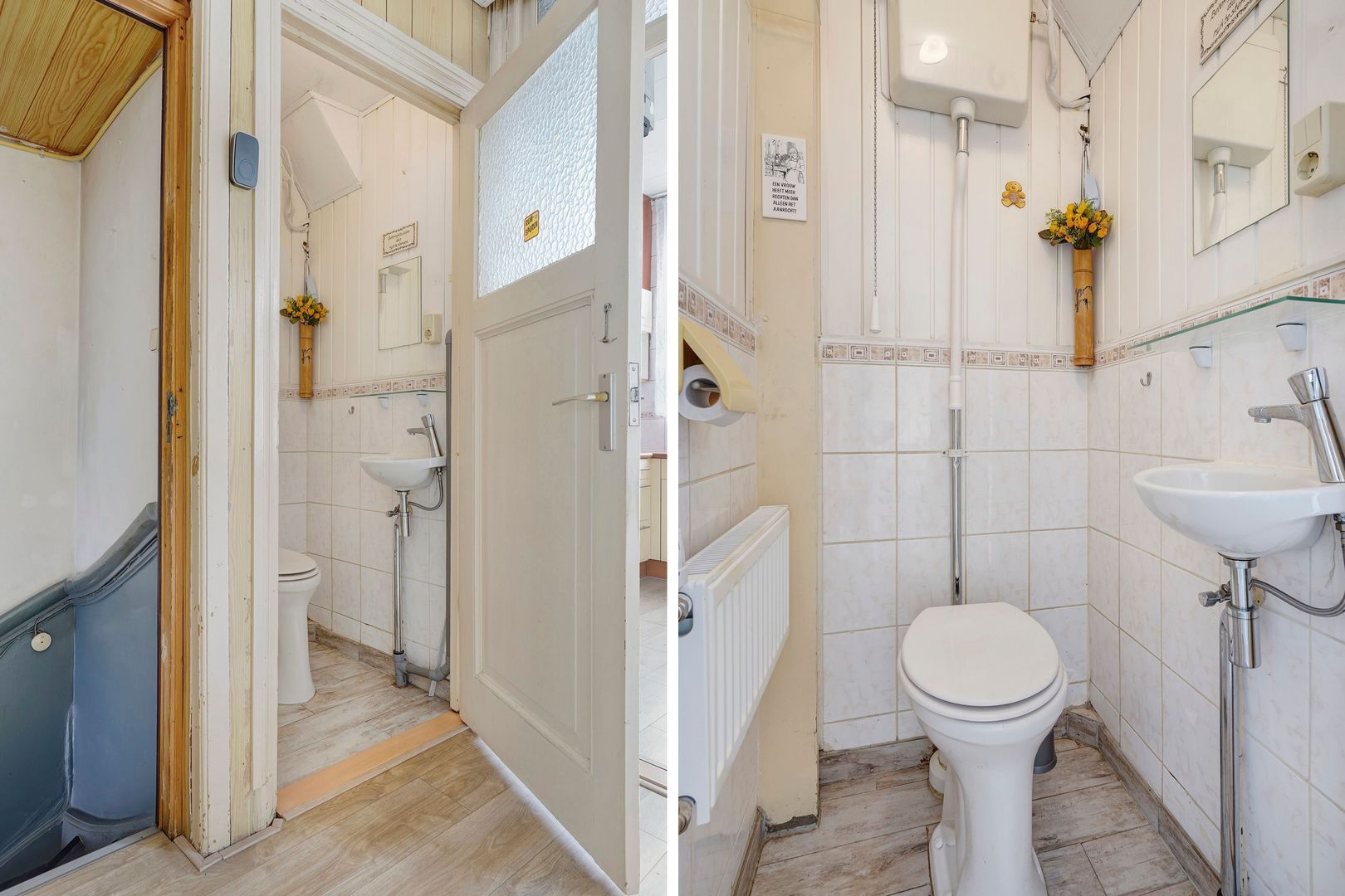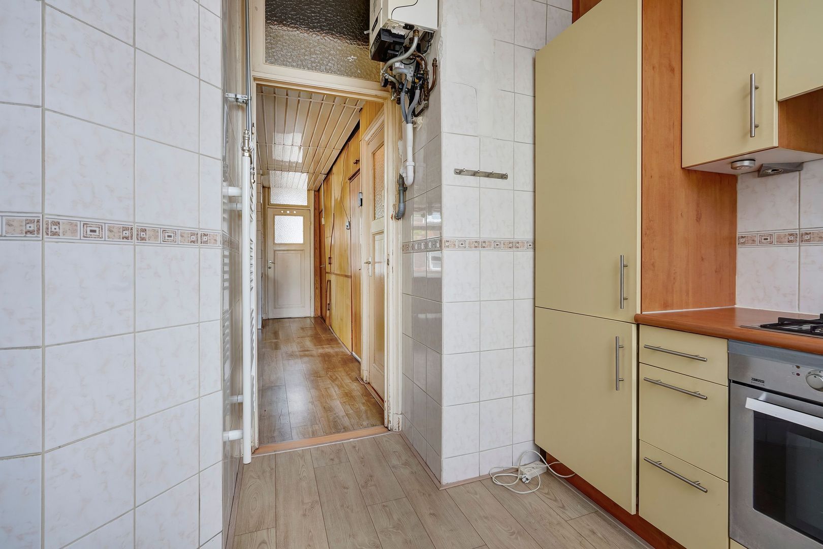 Woningentree op de begane grond; hal met meterkast; overloop; toilet met fonteintje; ruime lichte woonkamer; keuken in hoekopstelling welke o.a. is voorzien van een gaskookplaat, afzuigkap, oven, koel-vriescombinatie en vaatwasser; 1e slaapkamer aan de voorzijde;