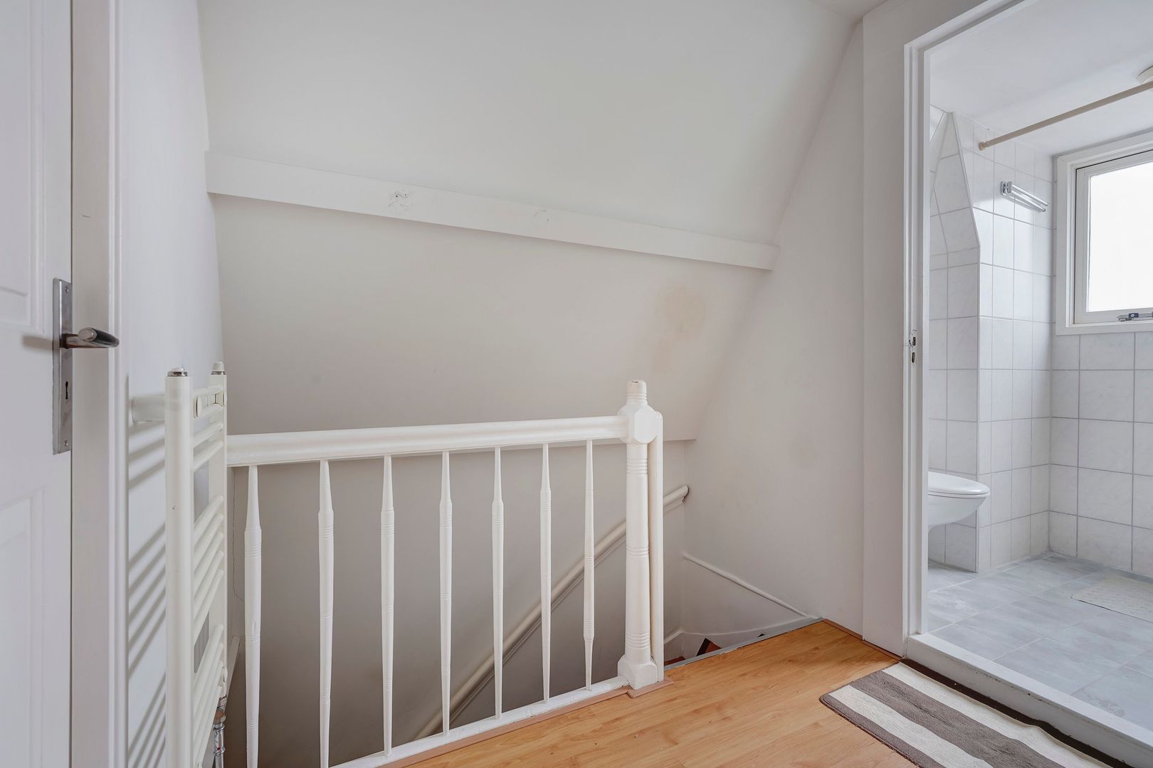 Trap vanaf de overloop naar de overloop op de 2e etage; 2e slaapkamer aan de voorzijde; riante 3e slaapkamer met toegang tot het royale dakterras; eenvoudig is een 4e slaapkamer te realiseren d.m.v. een tussenmuur in de 3e slaapkamer; eenvoudige badkamer met douche, wastafel en toilet;
