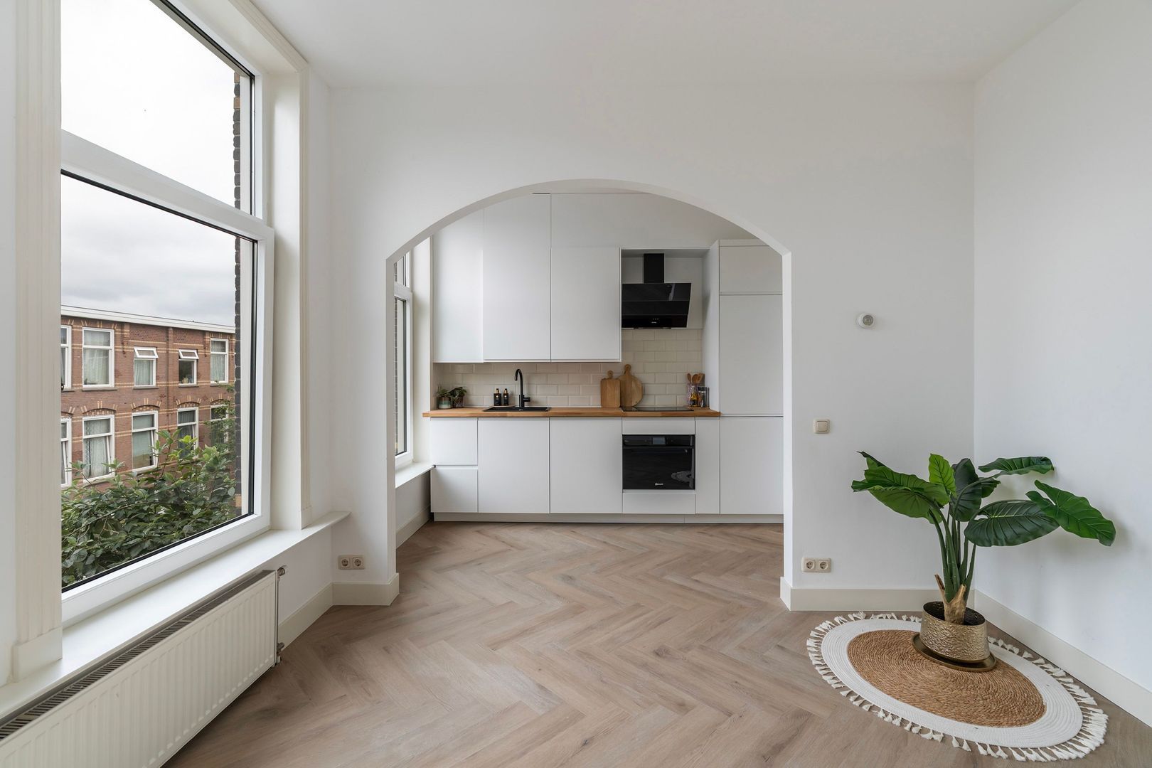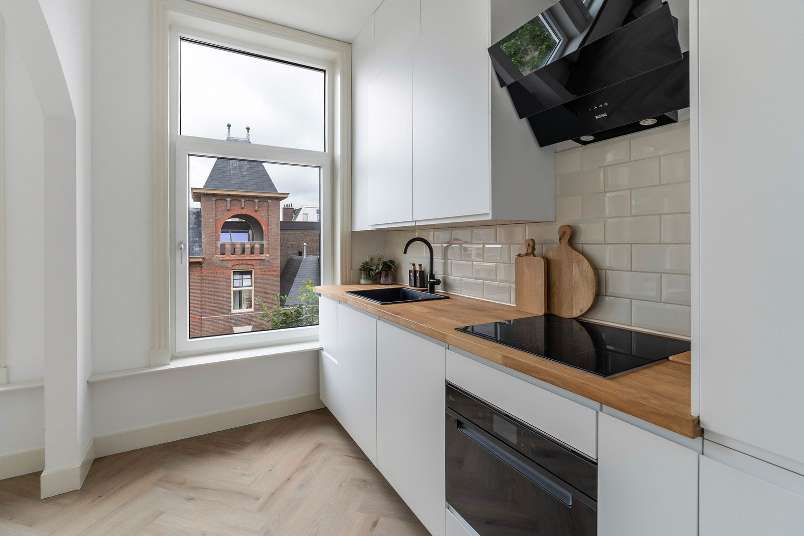 Valkenboskwartier. Keurige en sfeervolle recent inpandig gerenoveerde 3 kamer topetage met een zonnig terras op het Zuid-Westen. De woning is onder andere voorzien van een nieuwe keuken en badkamer. nieuw schilderwerk, pvc vloerafwerking in visgraatmotief, centrale verwarming, kunststof kozijnen met dubbel glas. De woning ligt recht tegenover het markante oude postkantoor wat ook recent volledig gerenoveerd is en getransformeerd in woningen.