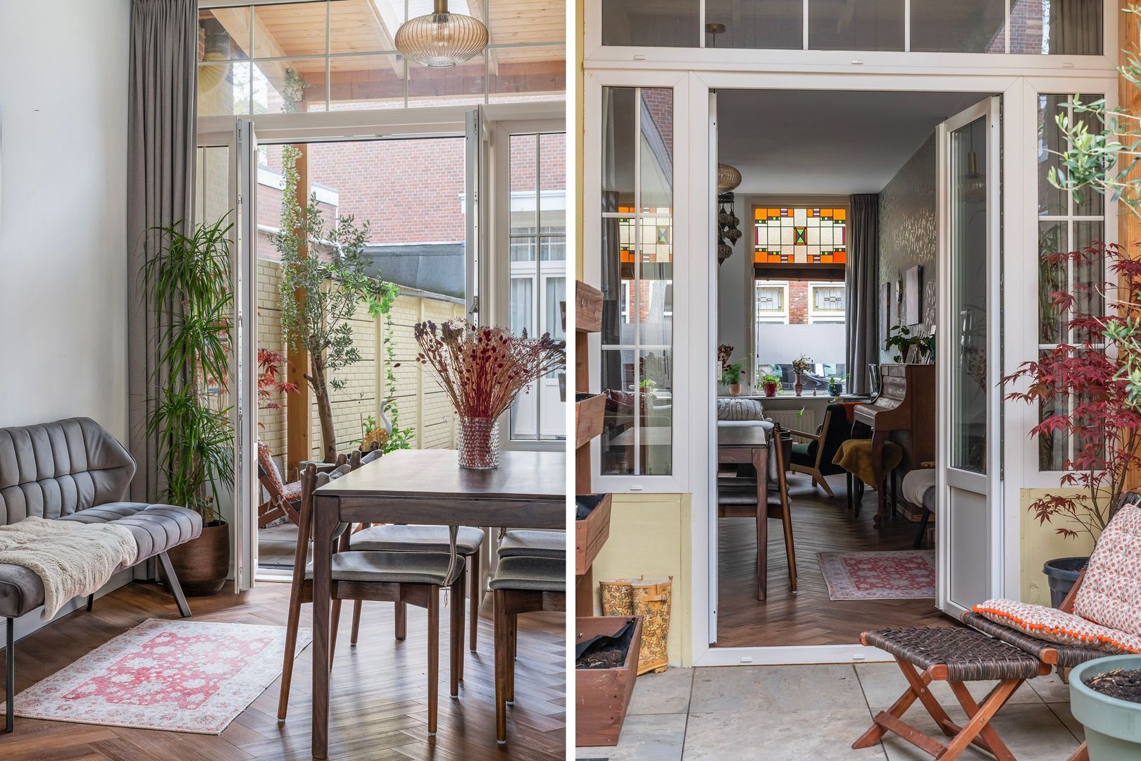 - Houten kozijnen met dubbel glas aan de voorzijde