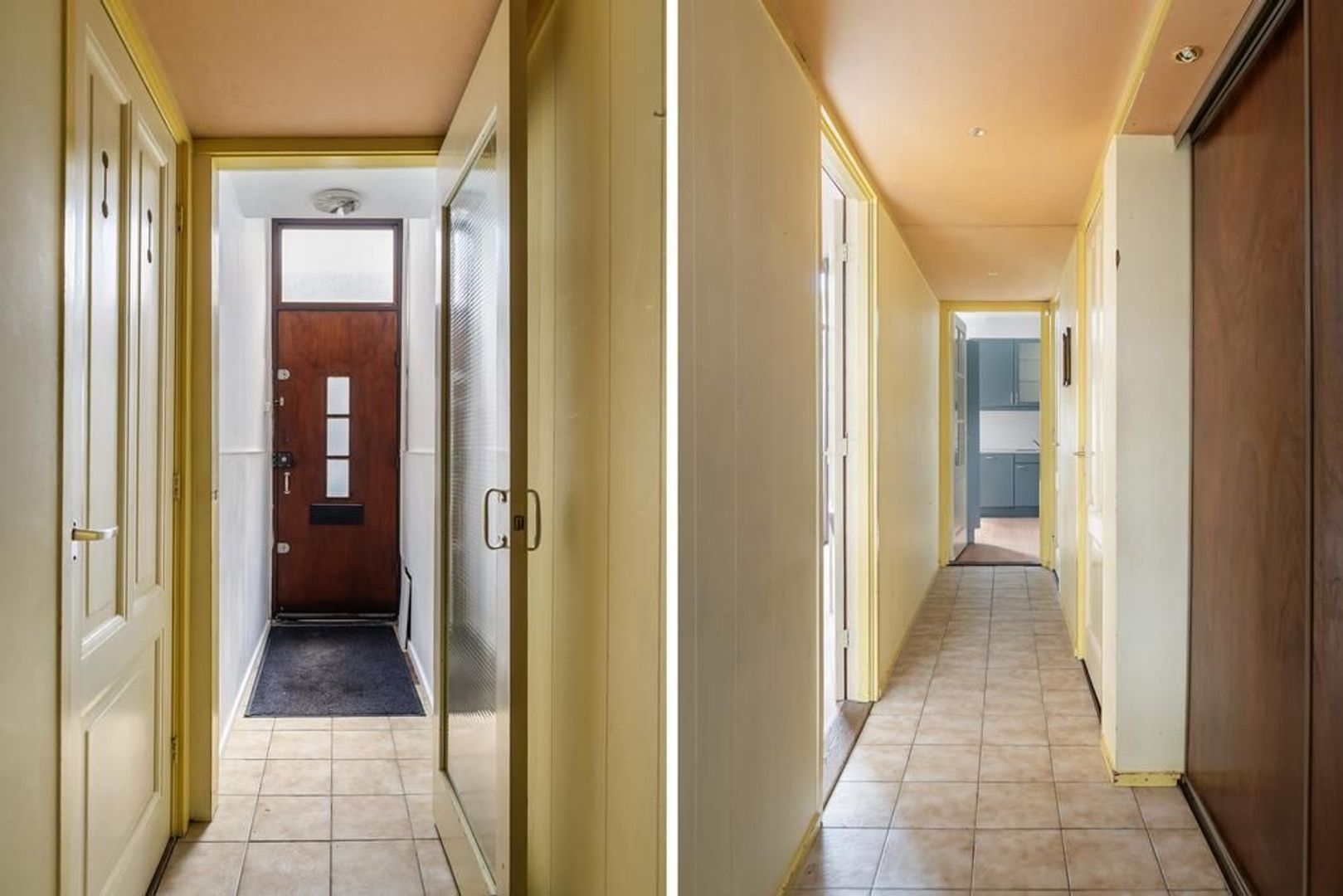 voortuin; entree woning; tochtportaal; gang met flinke bergruimte onder de trap en een garderobe kast; separaat toilet. Royale doorgebroken woon-/eetkamer (ca. 37m²) met openslaande deuren naar zowel de voor- als achtertuin; eenvoudige badkamer met douche en vaste wastafel; dichte keuken voorzien van div. apparatuur en opstelplaats wasmachine; 2 slaapkamers in de achterbouw; zonnige achtertuin in L-vorm met houten schuur.