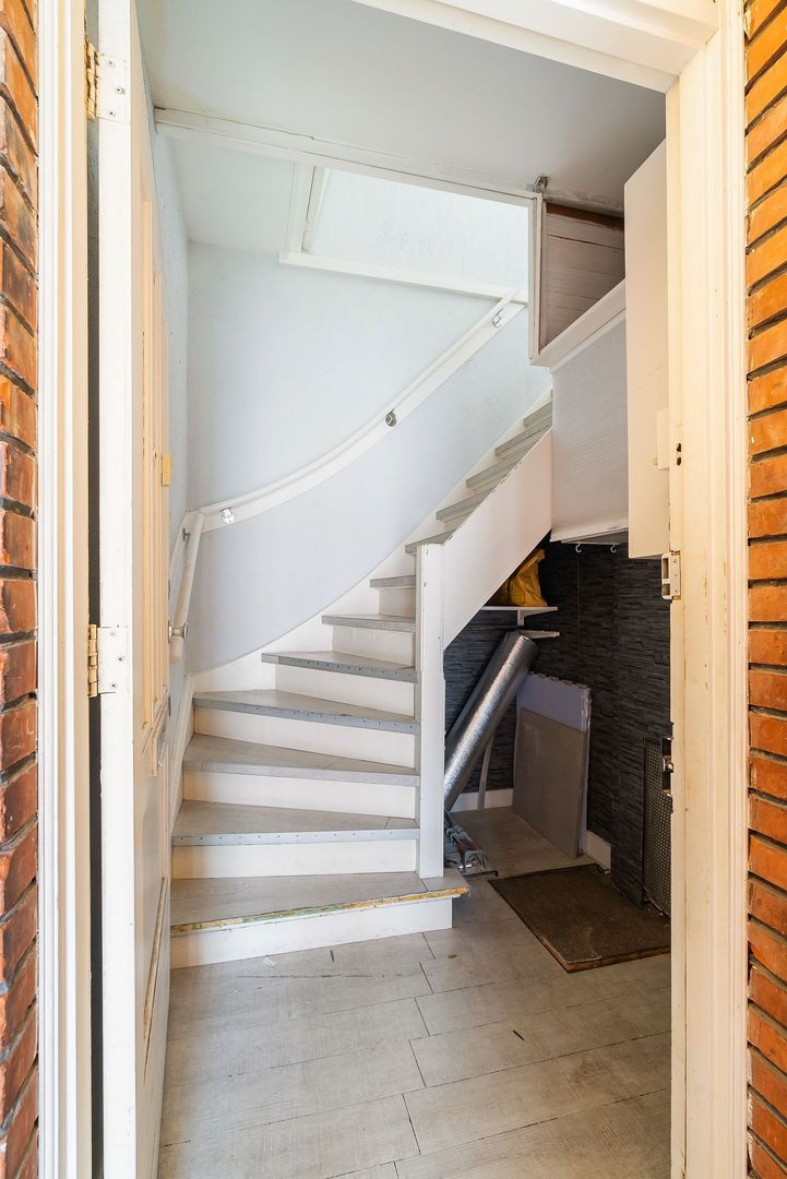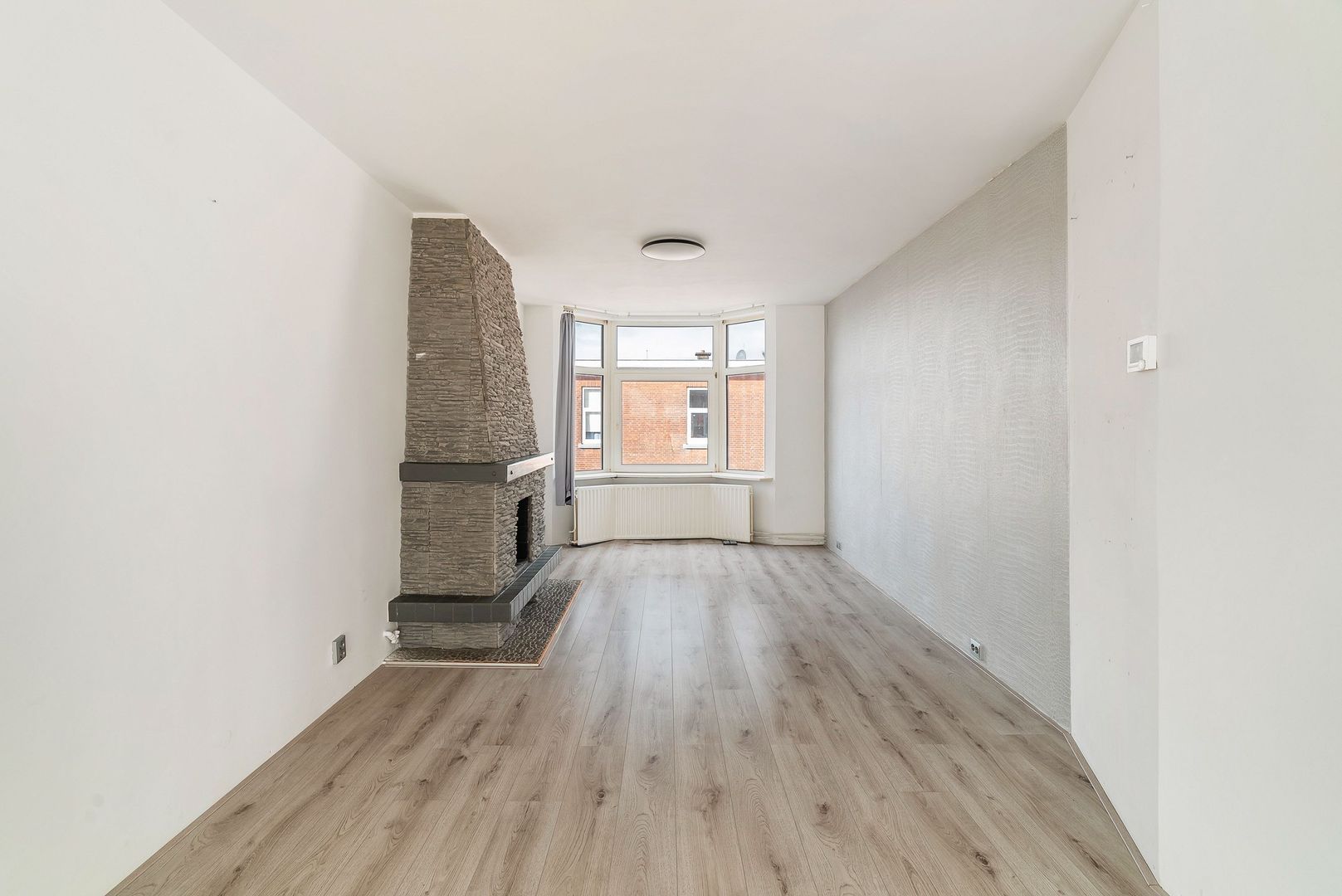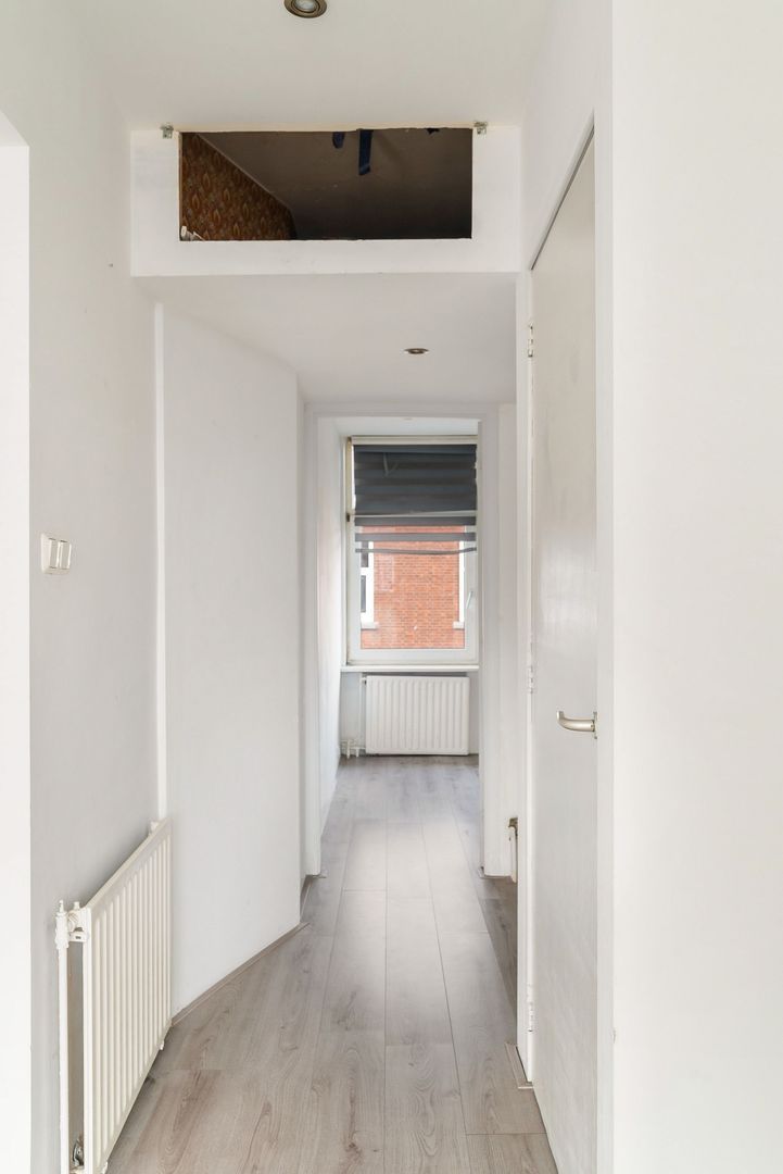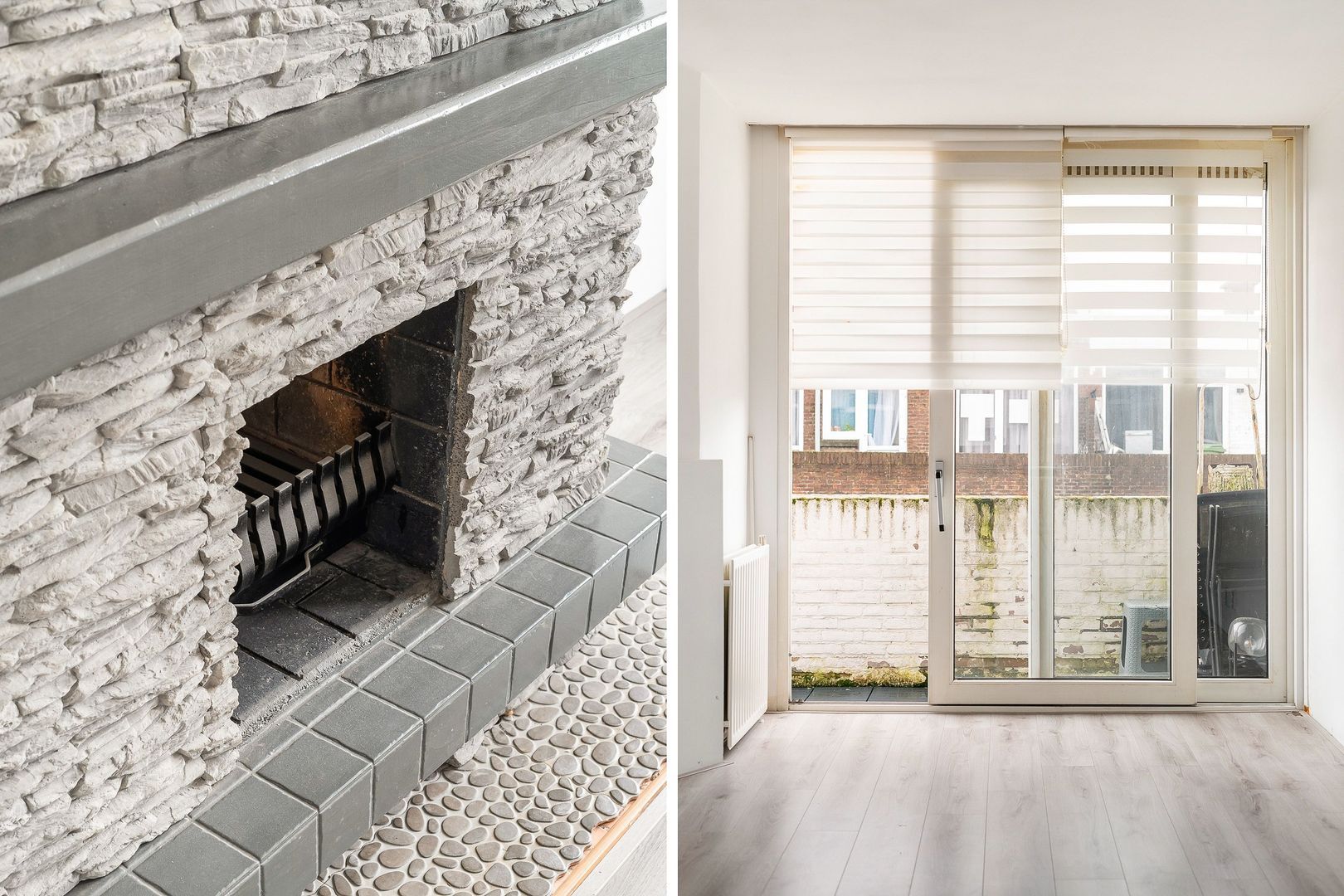 Entree, hal met meterkast en binnentrap naar de overloop op de 2e etage; doorgebroken woonkamer met sfeervolle erker, open haard en schuifpui naar het balkon; Halfopen keuken met deur naar het balkon; slaapkamer aan de voorzijde; slaapkamer aan de achterzijde; moderne badkamer met een inloopdouche, wastafelmeubel en wasmachine aansluiting; separaat toilet; balkon aan de achterzijde op het zuid-oosten.