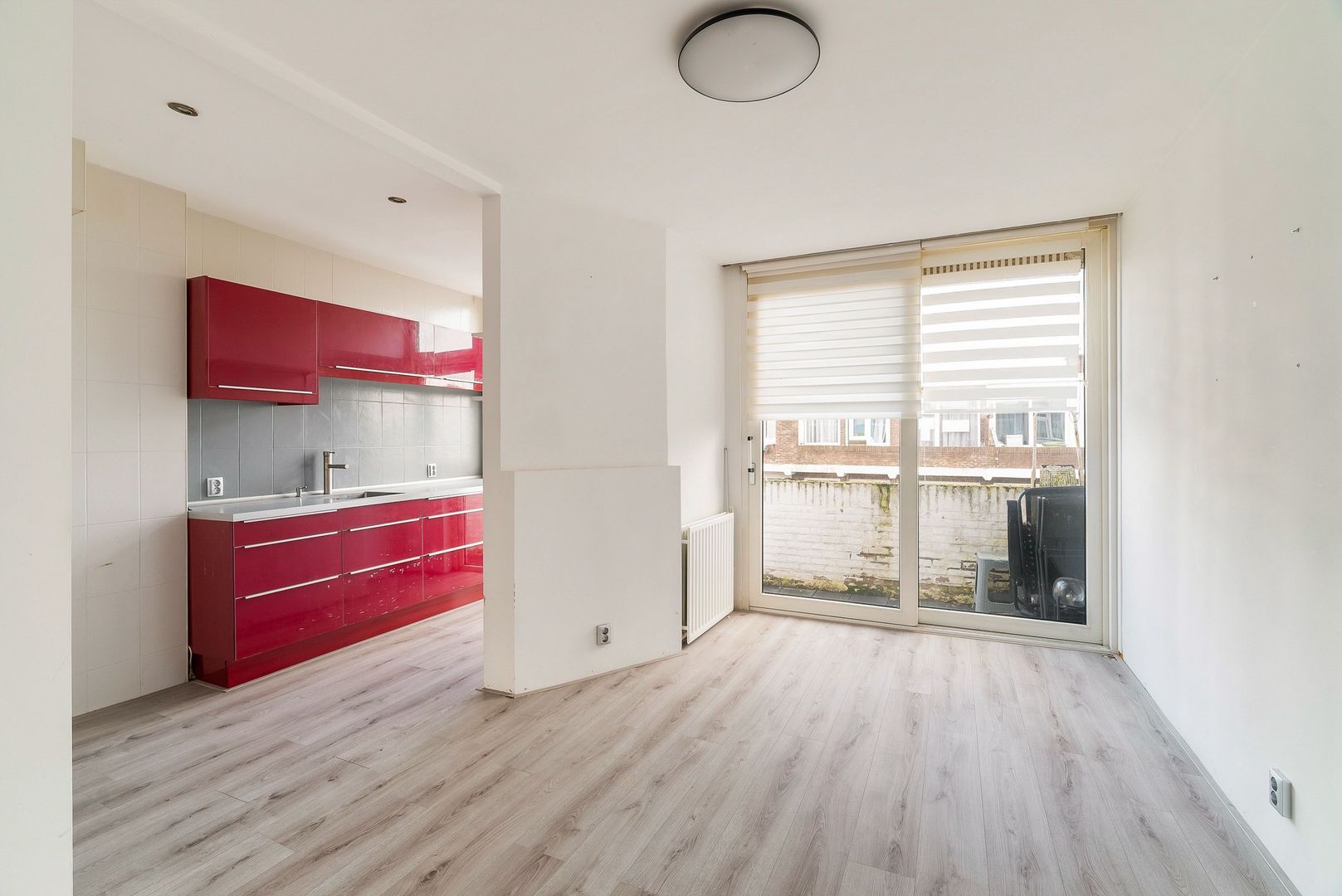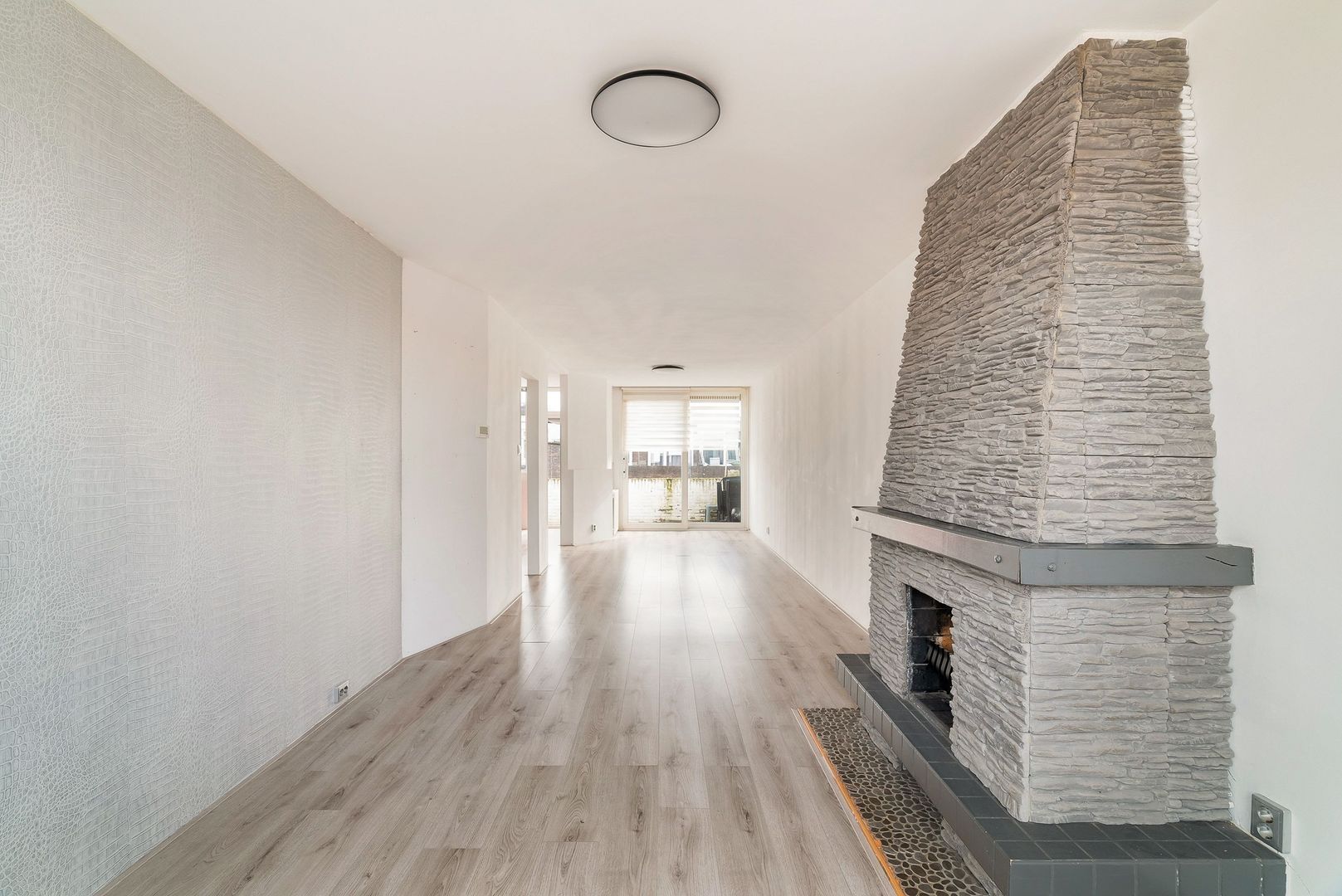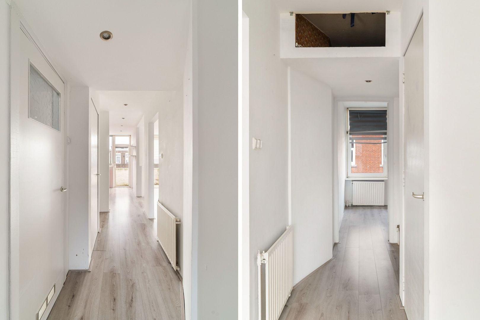 Entree, hal met meterkast en binnentrap naar de overloop op de 2e etage; doorgebroken woonkamer met sfeervolle erker, open haard en schuifpui naar het balkon; Halfopen keuken met deur naar het balkon; slaapkamer aan de voorzijde; slaapkamer aan de achterzijde; moderne badkamer met een inloopdouche, wastafelmeubel en wasmachine aansluiting; separaat toilet; balkon aan de achterzijde op het zuid-oosten.