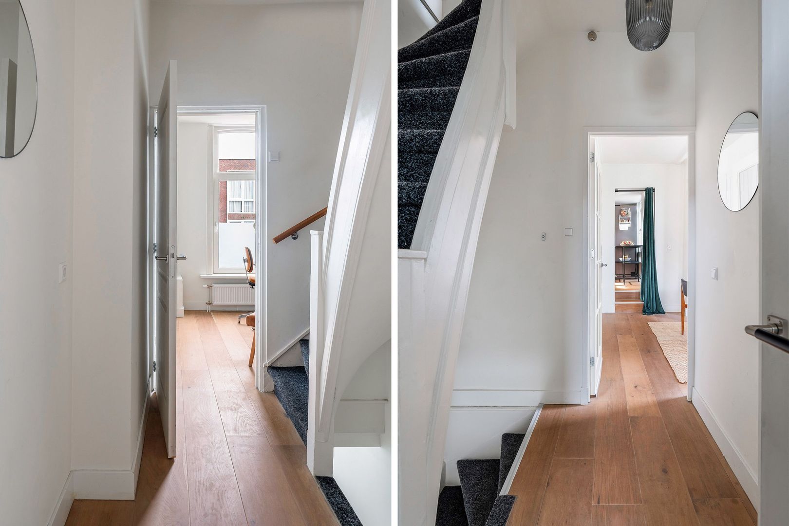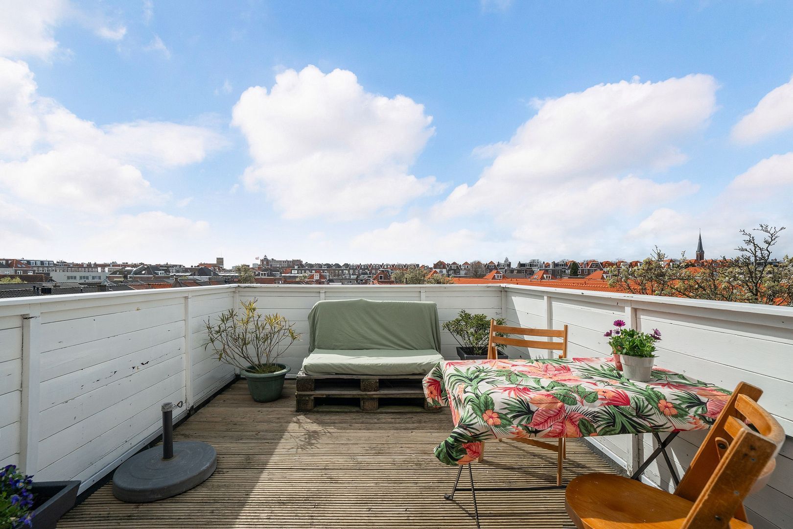Keurig en sfeervol dubbel bovenhuis (hoekwoning), verdeeld over de 1e en 2e verdieping, gelegen in het geliefde Regentessekwartier. Een heerlijk licht huis met een woonoppervlakte van ca. 83 m², een praktische bergvliering en een ruim zonnig terras dat privacy biedt met fraai vrij uitzicht over de karakteristieke “Blauwe Pannenbuurt”.