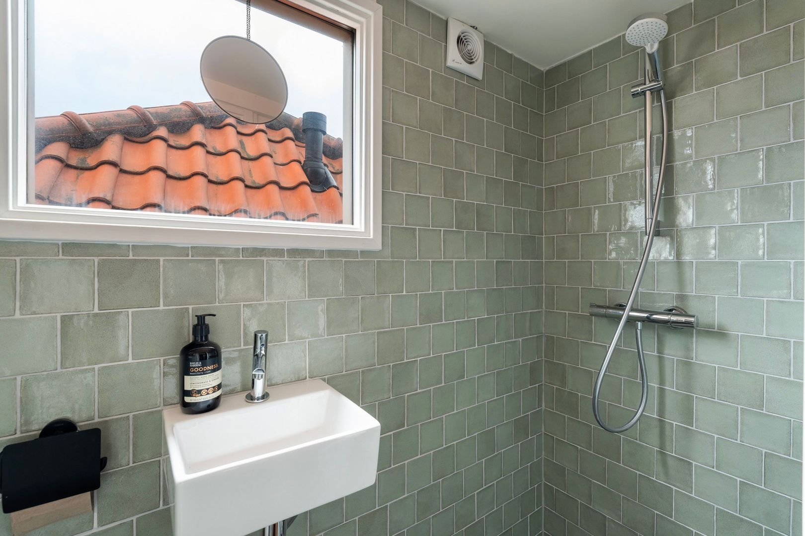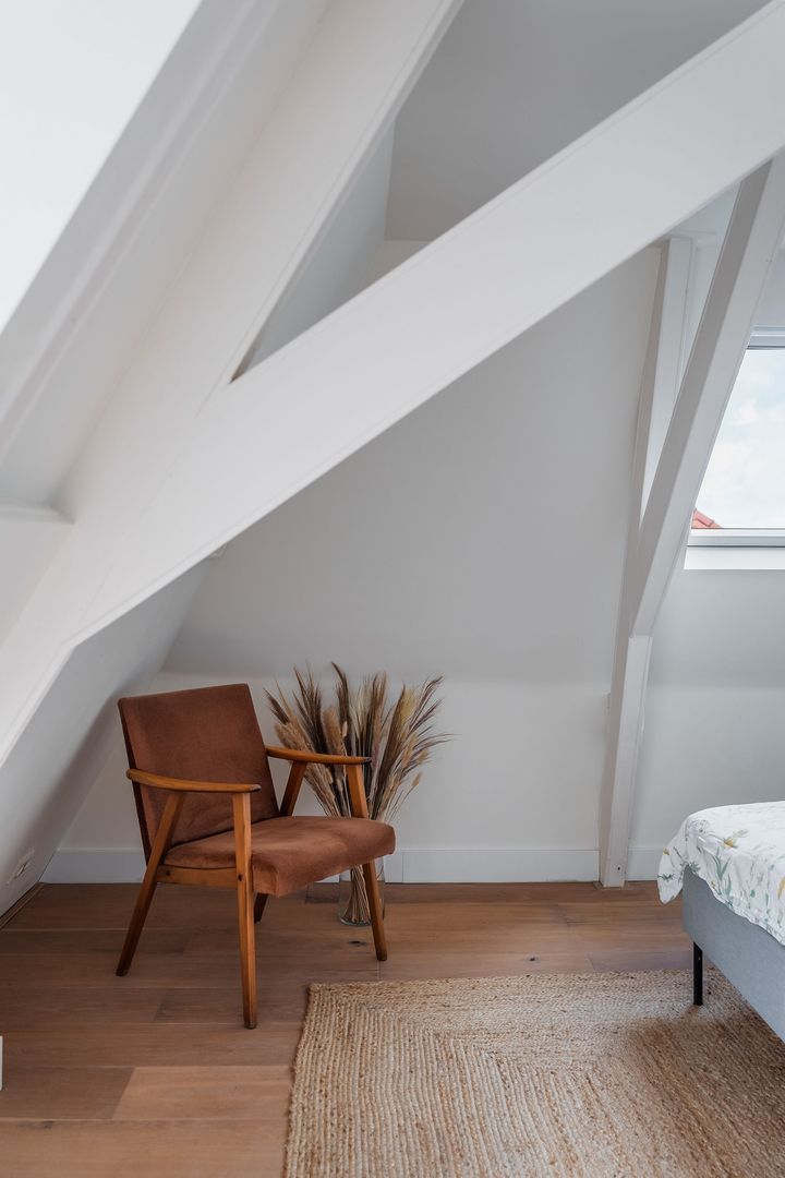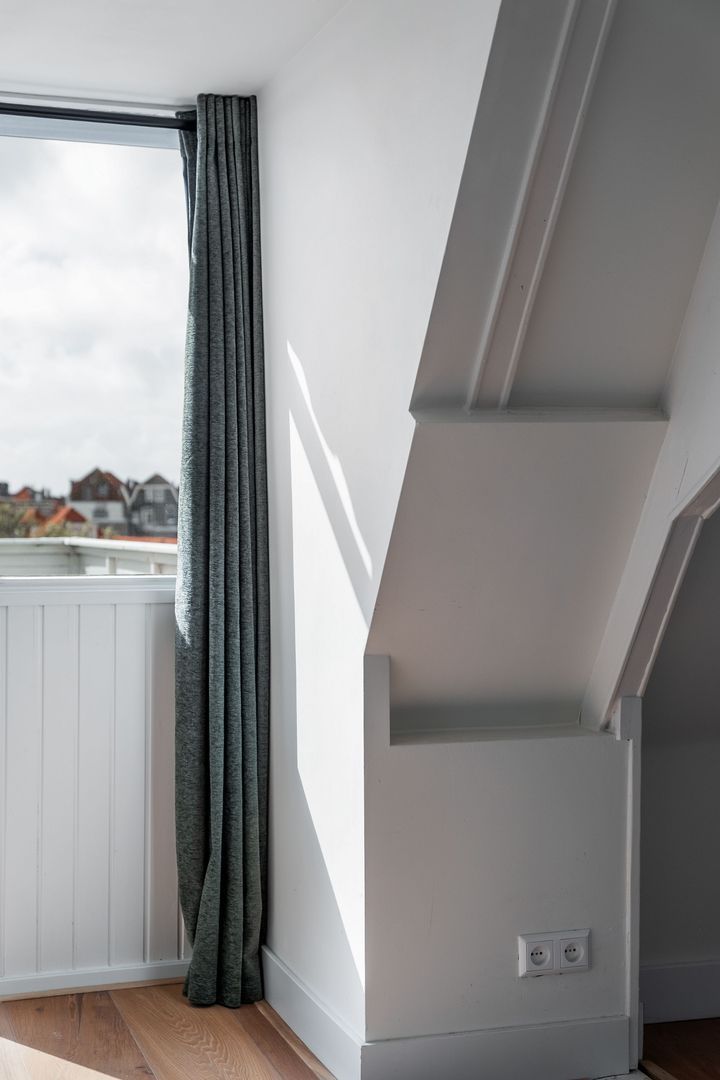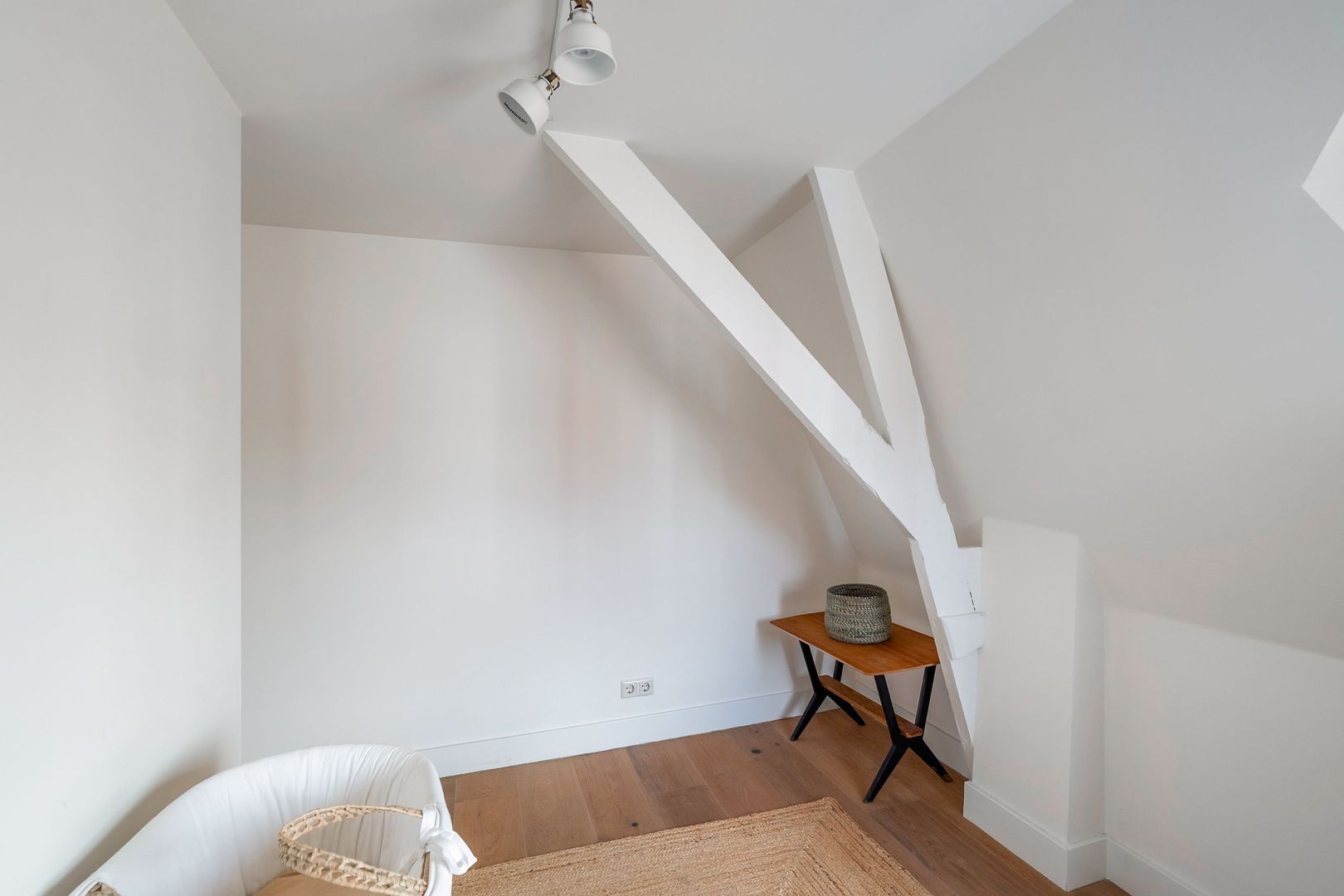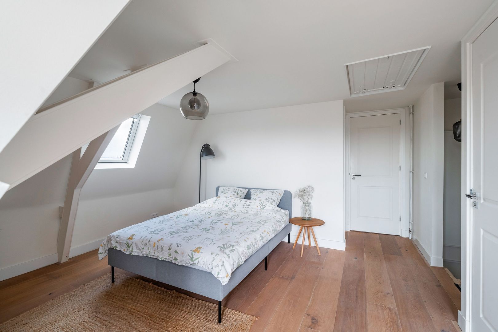 Overloop met toegang tot de tweede slaapkamer aan de achterzijde, voorzien van dakraam, vaste kast en toegang tot het zonnige terras; de derde slaapkamer ligt aan de voorzijde; tweede badkamer met wastafelmeubel, douche en wasmachineaansluiting; daarnaast is er een separaat tweede toilet.